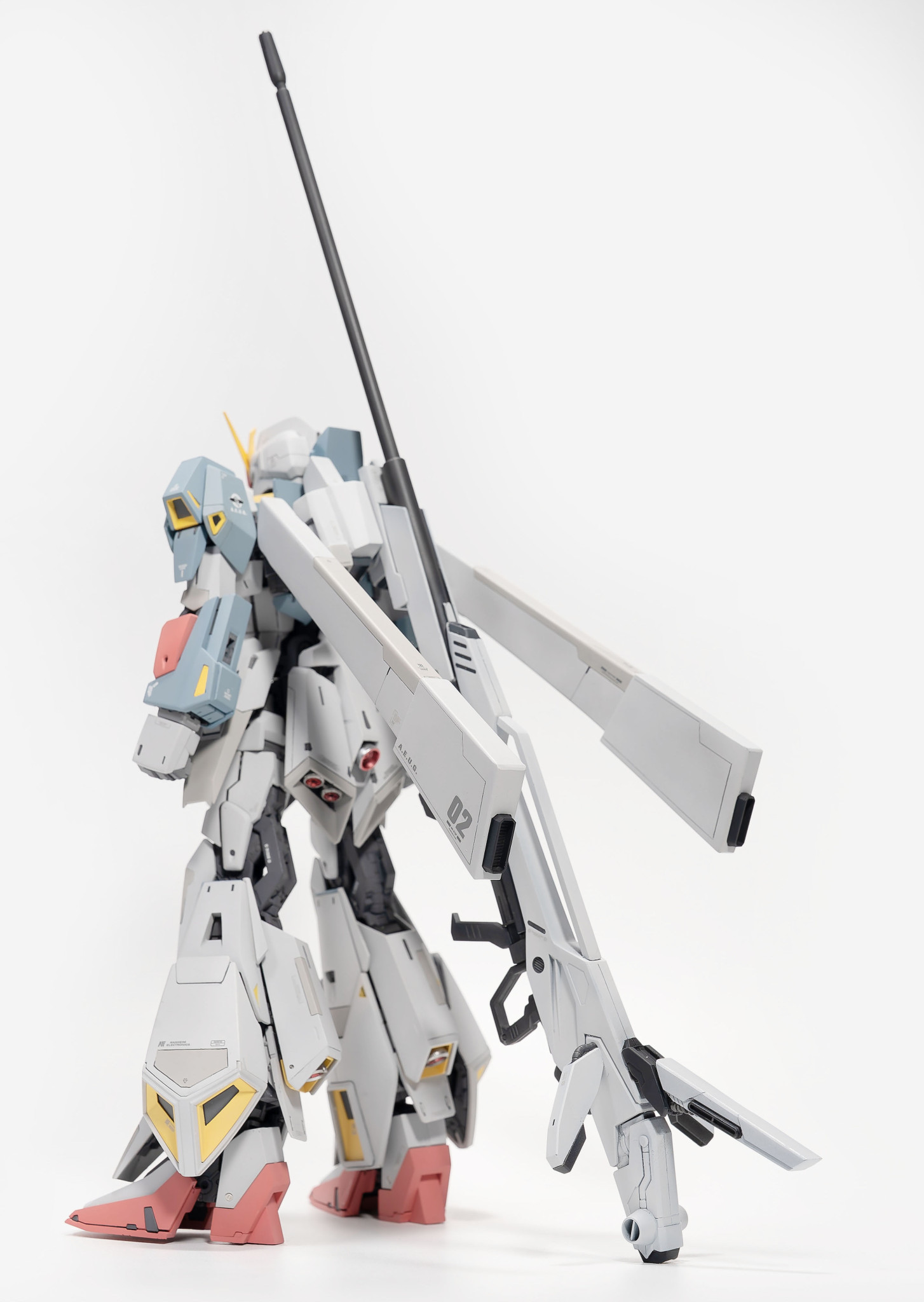 参考にしたのは劇場版Zガンダム。ラストのウイングバインダーを脱ぎ捨てたシーンから着想して、バインダーなしの「ネイキッド」というコンセプトでカスタムしました。