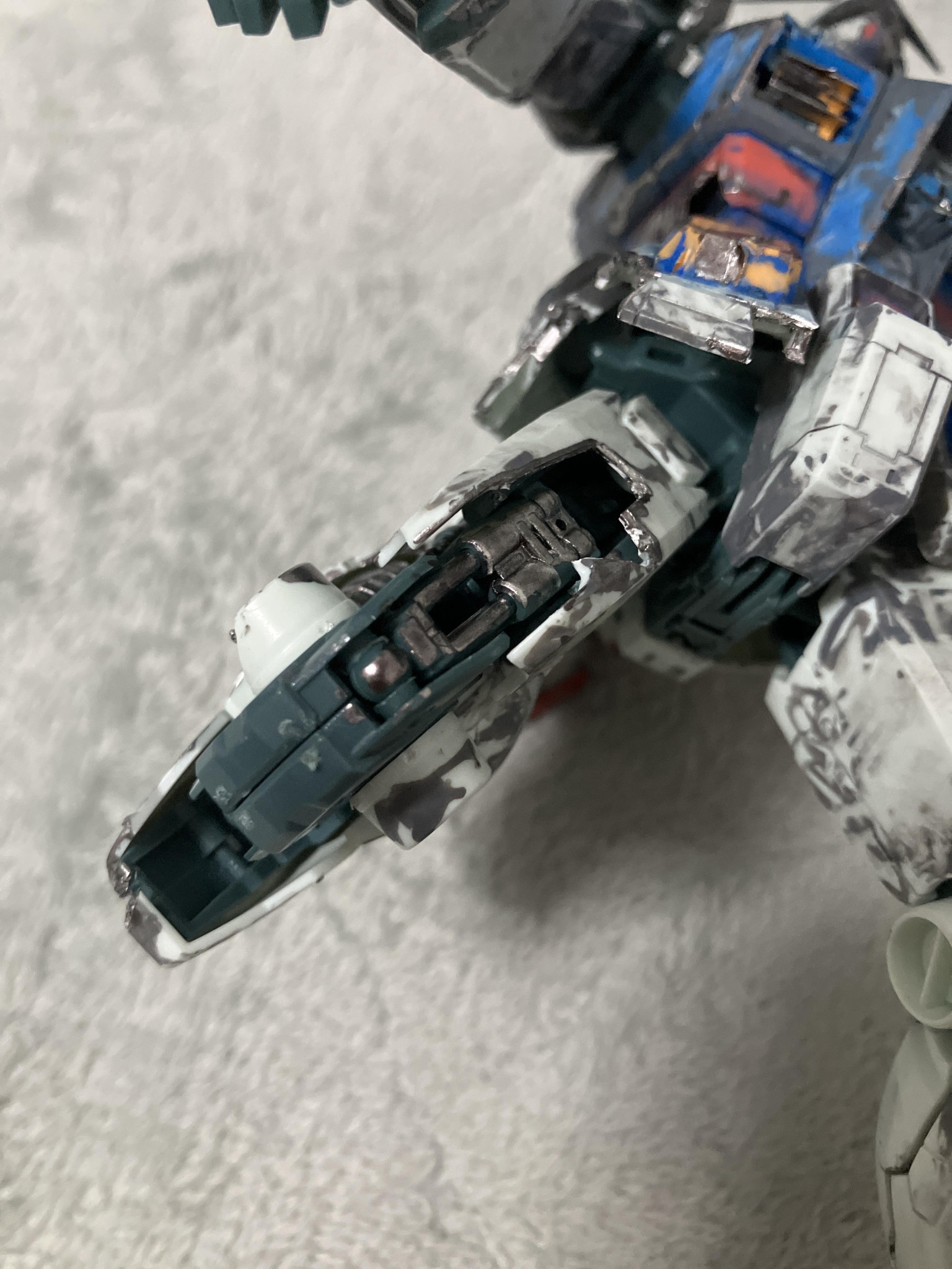 ある日俺はガンダムマーカーを使って塗装をしていたんだ、G-3カラーに塗装しようとしたがこれがうまくいかなくてだな、消しペンで消そうとしたらな、腕のパーツが割れちまっただ、そこで萎えてこうなったってわけさ、