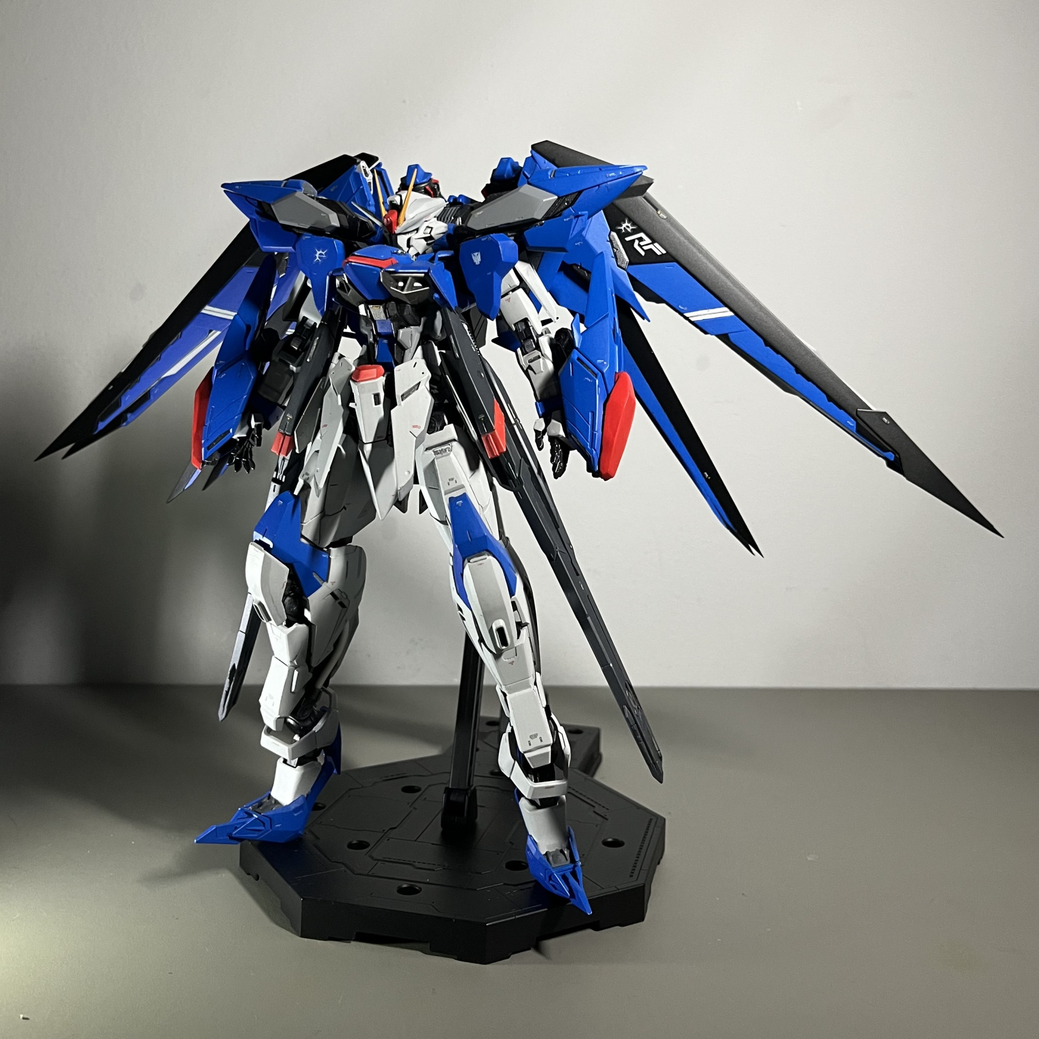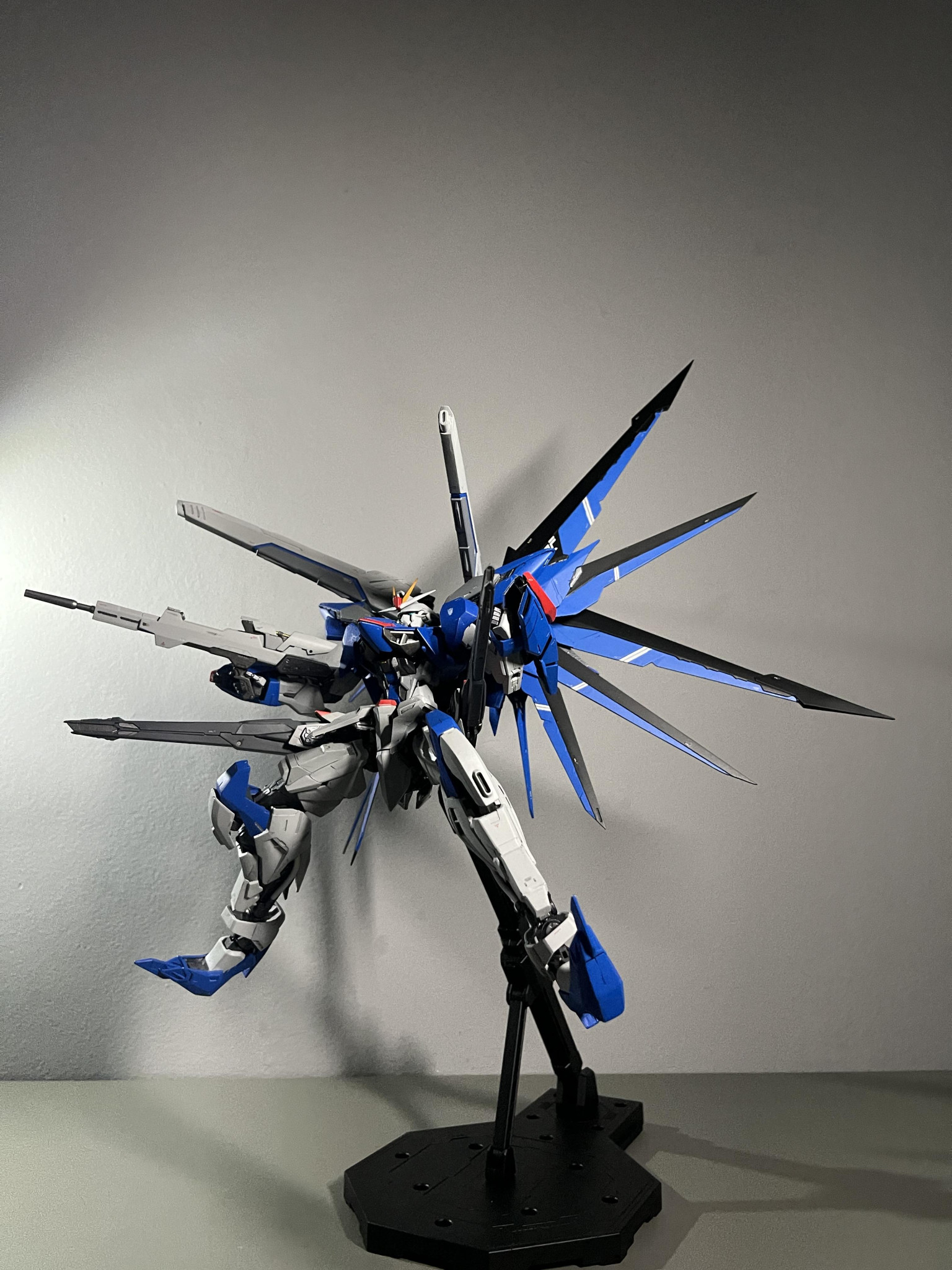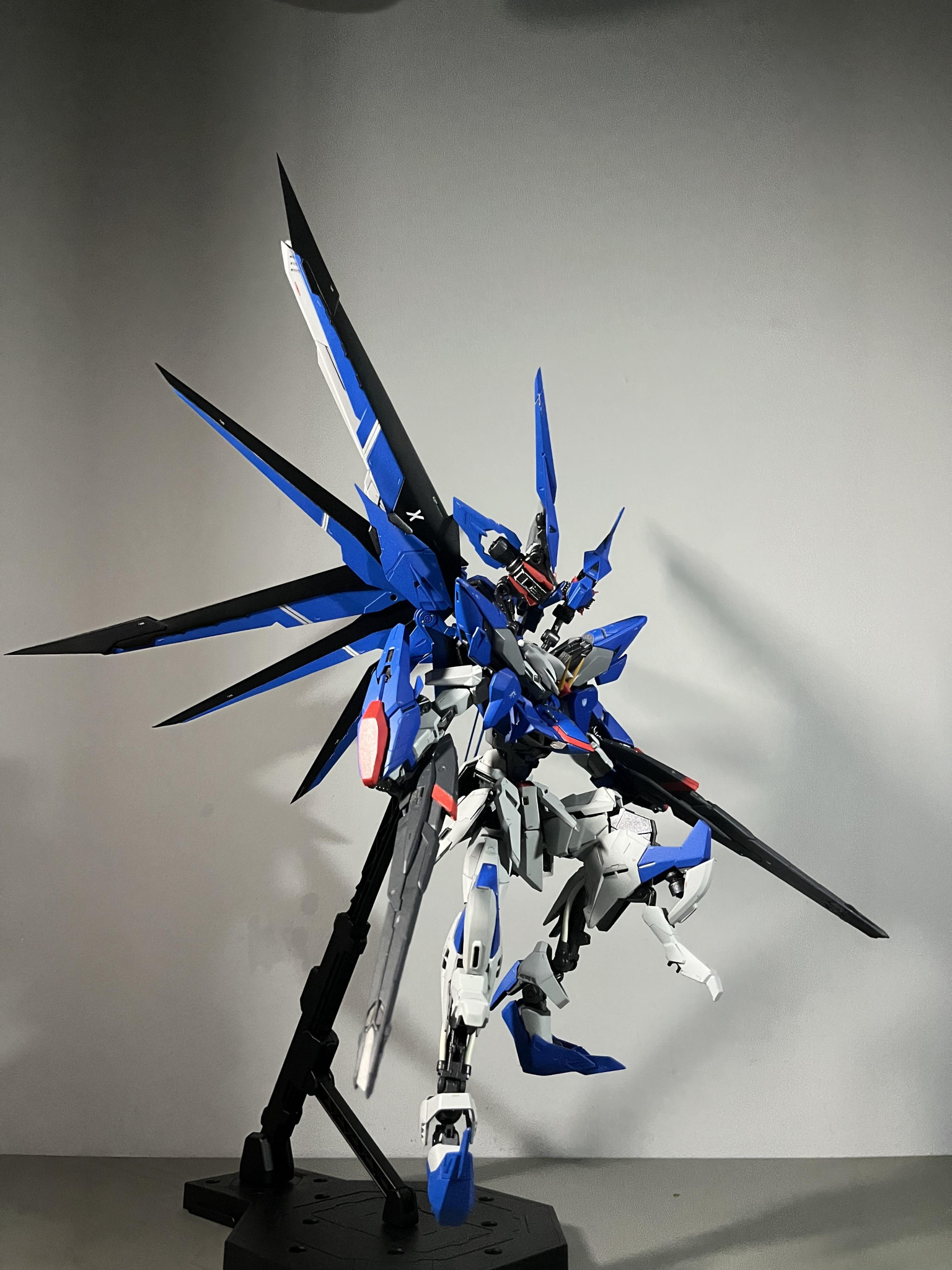 新旧MGフリーダムはじめバンダイ製キットでのミキシング+プラ板、パテ、その他マテリアル類での一部スクラッチです。
