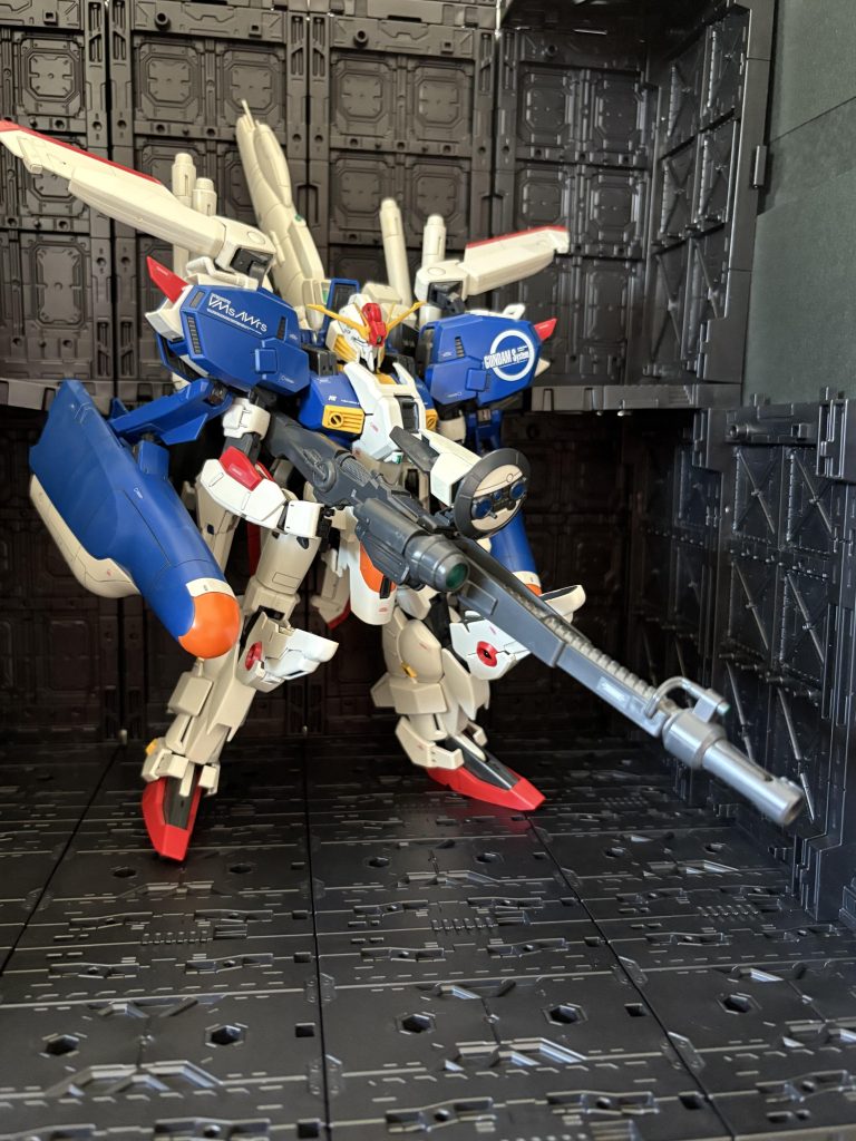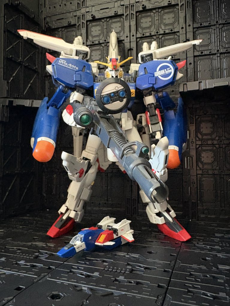 当時、この機体がMG化されるという事実を感慨深く受け止めていたことを思い出します(スタートからして、いろいろ大人の事情がありましたからね)。作るのも、変形させるのも、飾るのも、すべて大変なこのキット、ガンプラ史に残る逸品ですね。よいものを見せていただきました。