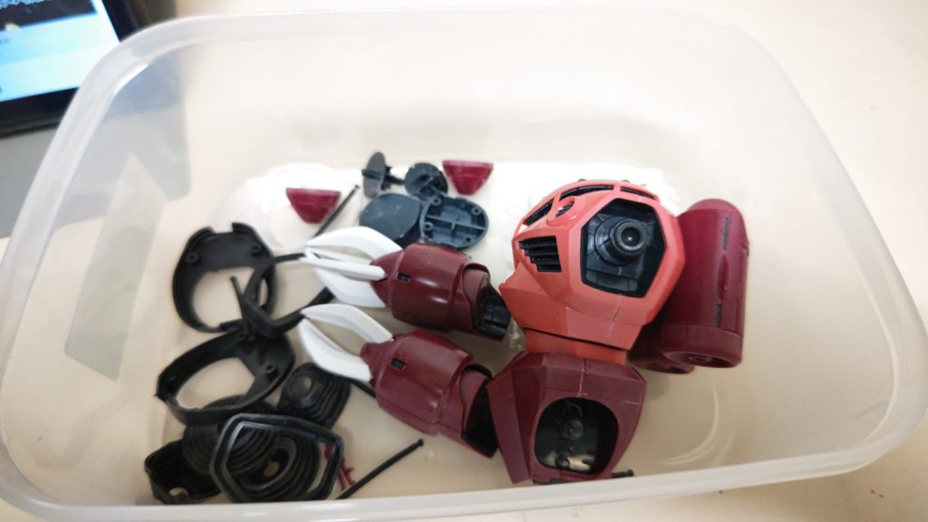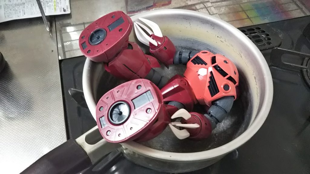 赤くなるまで茹でましたズゴックです。前回作ったのは発売間もなくてはだったので💦22年ぶりの組み立てに成増💦塗り方や色合いは違えど基本的な処理はかわらずただ組んでぬっただけです💦