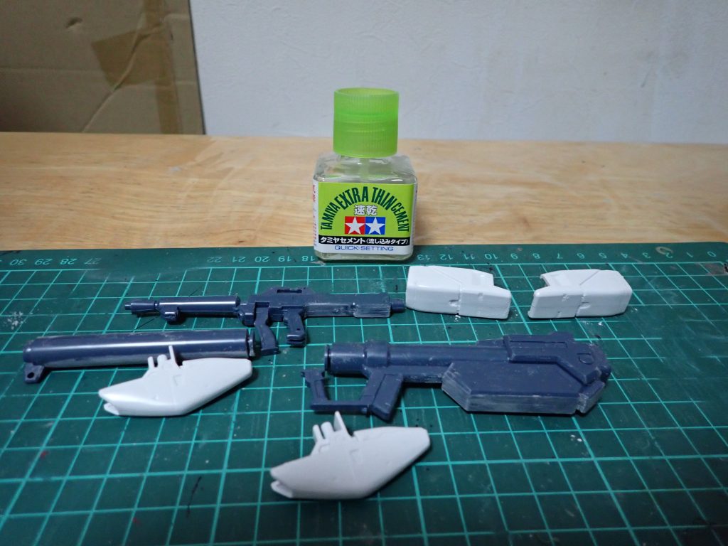 136 HGの陸戦型ジム制作しました。 武器類の合わせ目処理…