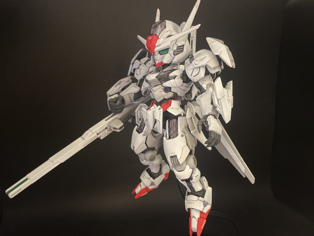 MGSDエアリアルが手に入ったので、やりたくてしかたなかったキャリバーン風を作ってみました!ミキシング…とまでは行かないかもですが、HGのロッドライフルを持たせました。貧乏性なので普段はミキシングなんてできないのですが…断腸の思いで組み込みました笑