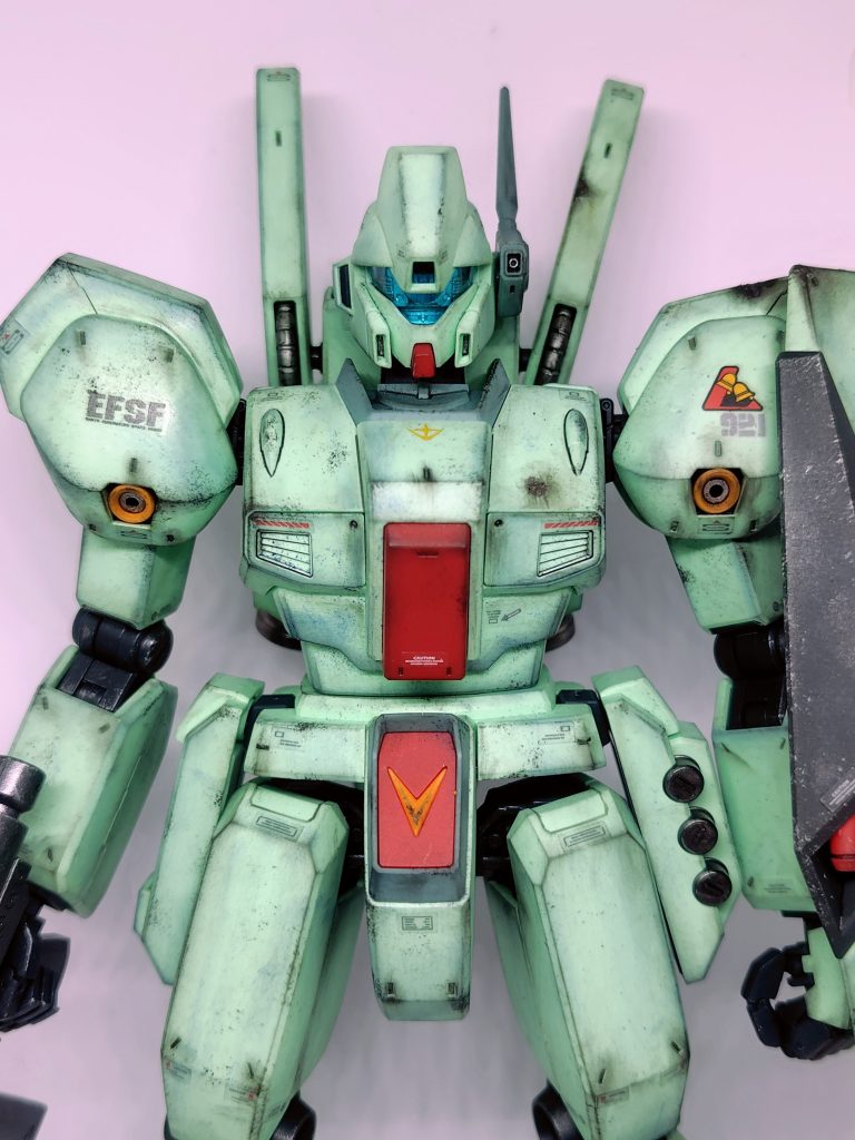 ツルンとした印象のジェガンがウェザリングやダメージ表現で見違えていますね😄