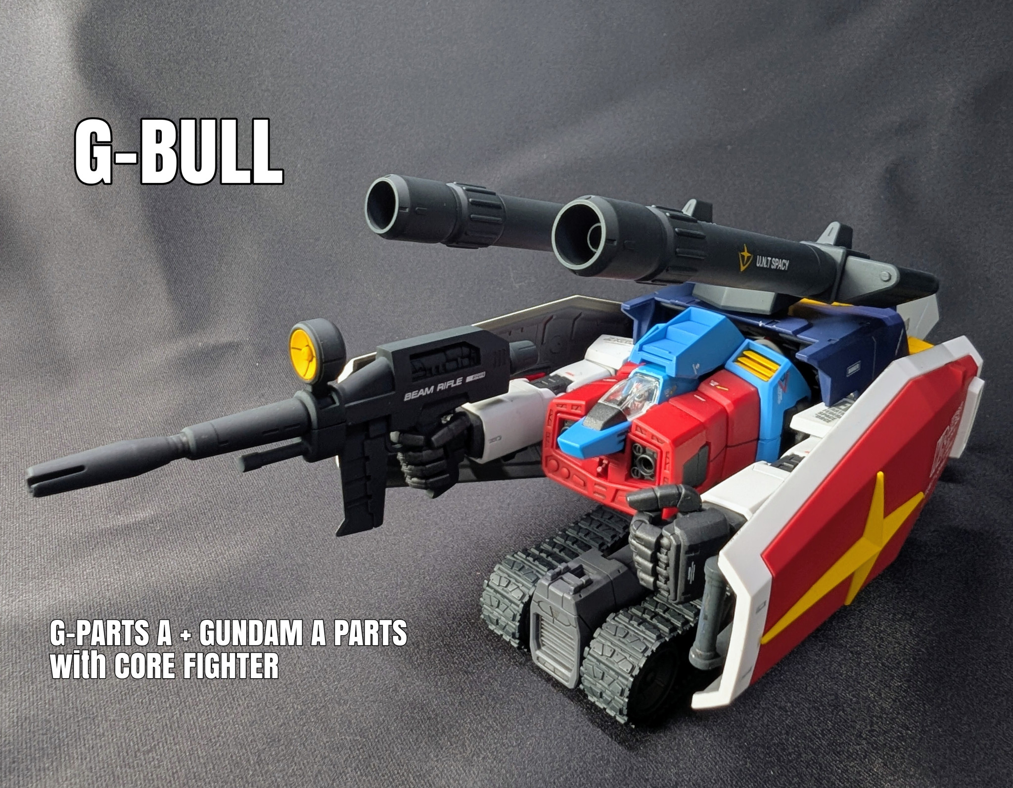 Gブル形態。コア・ファイターに追加パーツを取り付ければOK。私はこの形態が無骨で好きです。このキットの肝はキャタピラ部分の変形機構だと思います。各形態毎にジョイントを変えられる機構は一見の価値ありです。