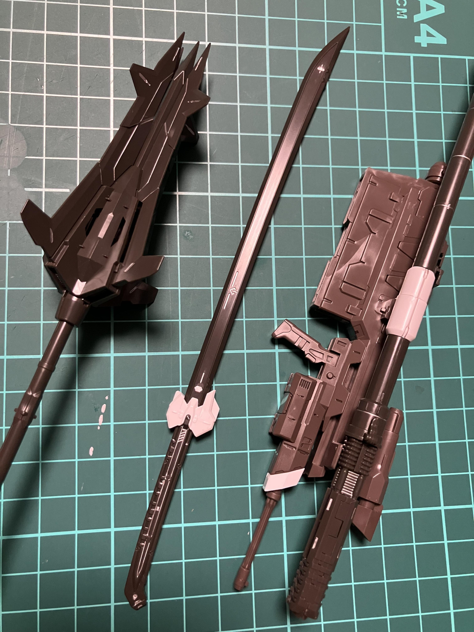 いつも通り素組みですが、少し手を加えた点として、ガンダムフレームはスミ入れをチタンシルバーでしました。