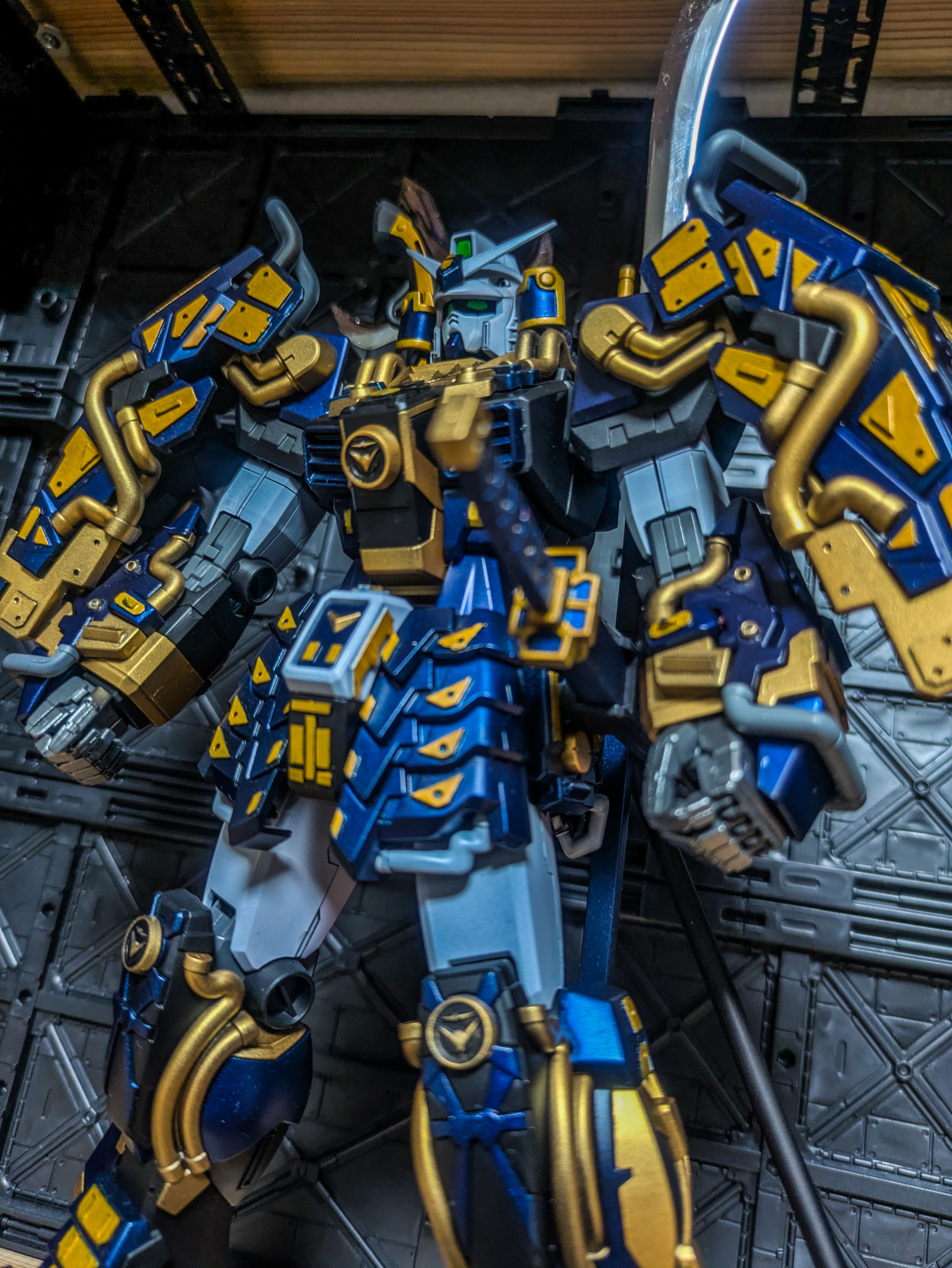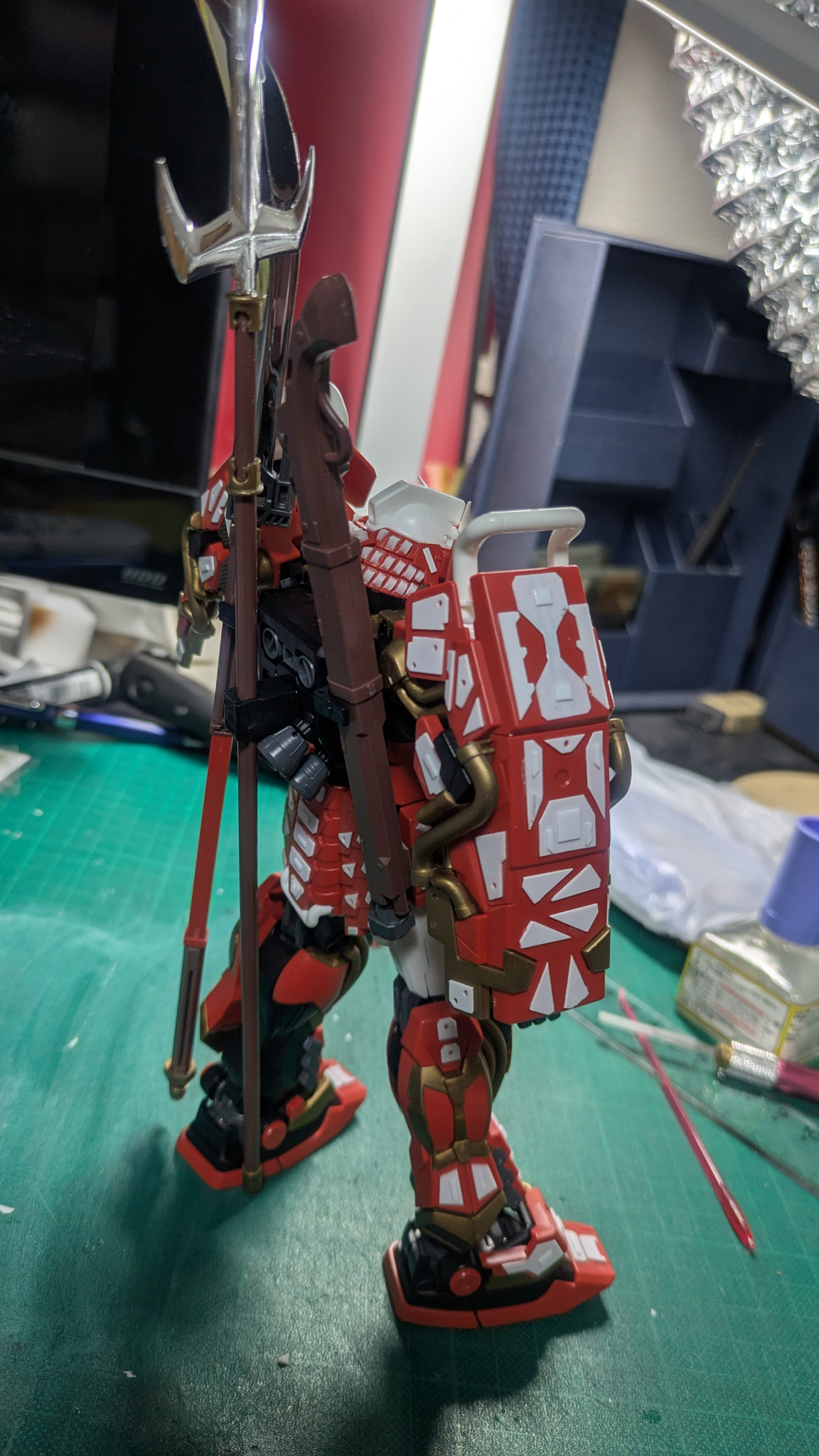 成形色は赤基調の鎧ですが、せっかくの名(迷)作 PS3真・ガンダム無双のオリジナル機体。よりオリジナリティを出すため、