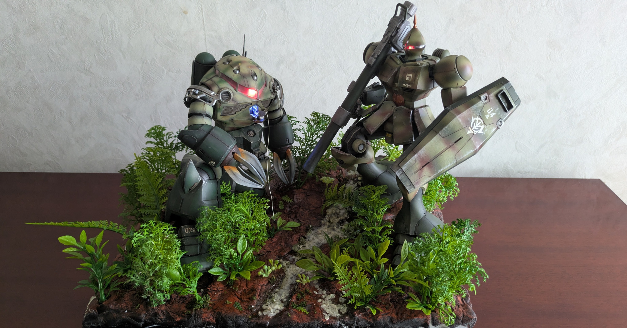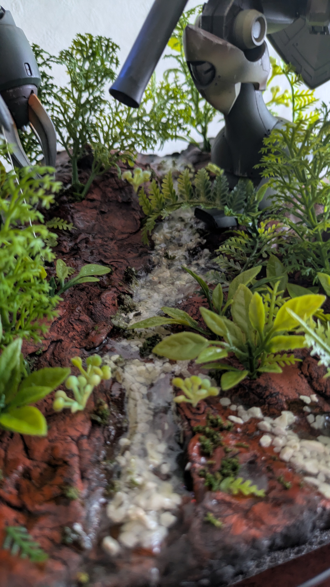 初めての本格的なジオラマで、このレジンで作った川が一番のお気に入りです