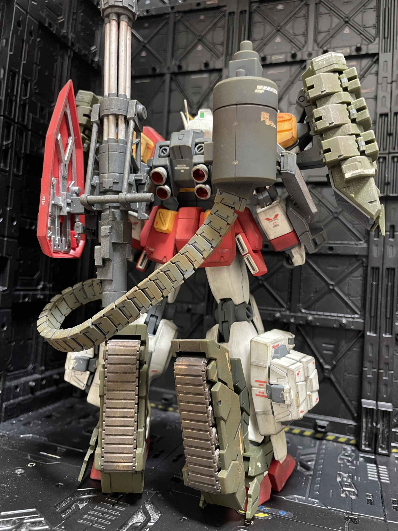 キャタピラ部分とガトリング砲身部分のウェザリングは、自分的にはうまくできたかな〜と思い、満足な出来です😆