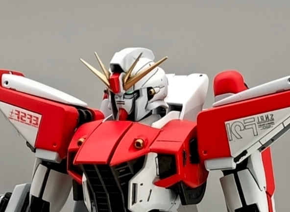 アニメや設定画に忠実な柔らかい2.0のフェイスから、EGνガンダムのフェイスを元にシャープに引き締まったリアル寄りのフェイスに改修しました。