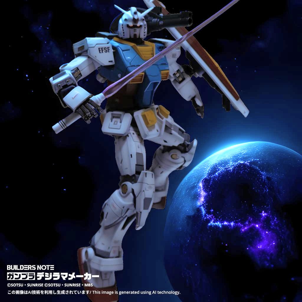 宙域を浮遊するガンダムの上半身が光に照らされてカッチョいいです!