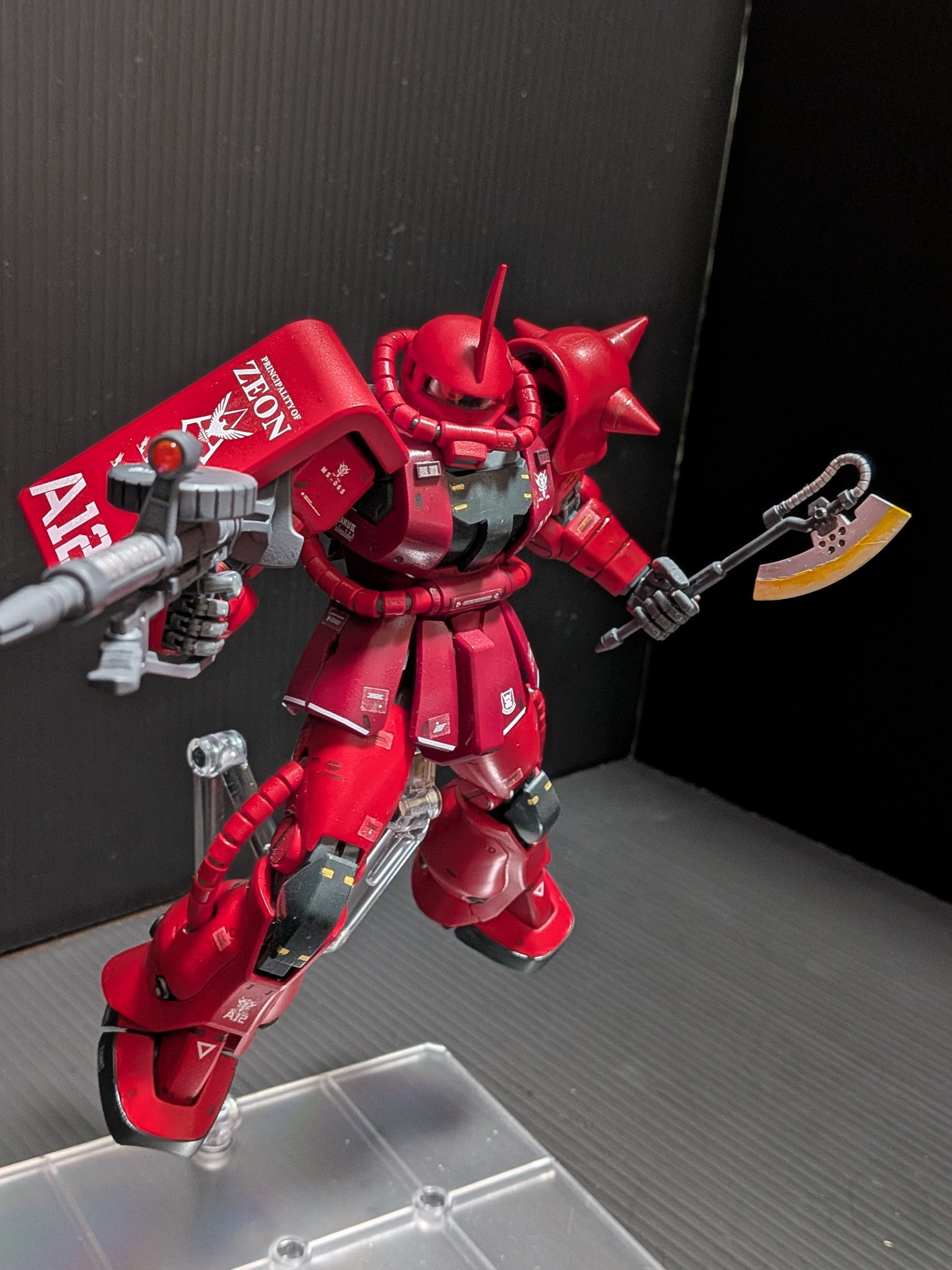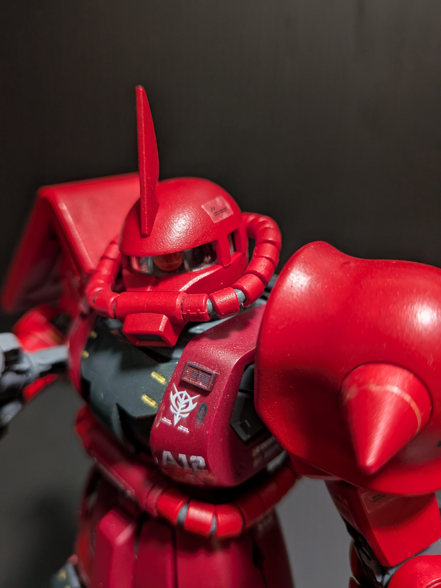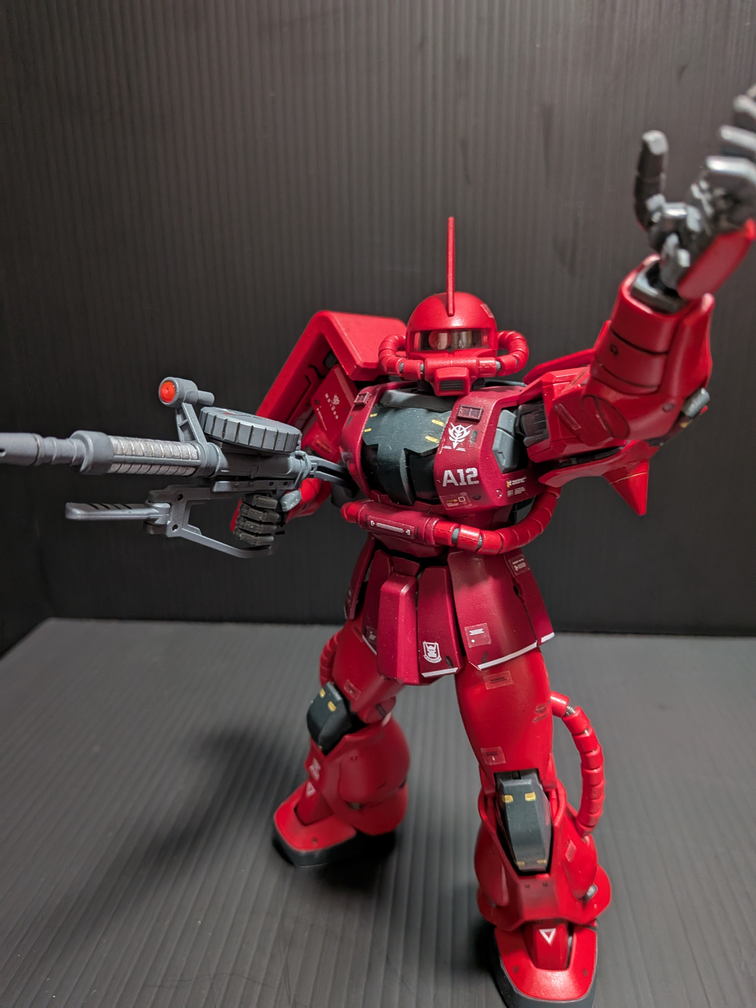 アニメ版の王道のシャアザクカラーもいいですが、オリジンを見て、この真っ赤な色もかっこいいなと思いチャレンジしました🙋