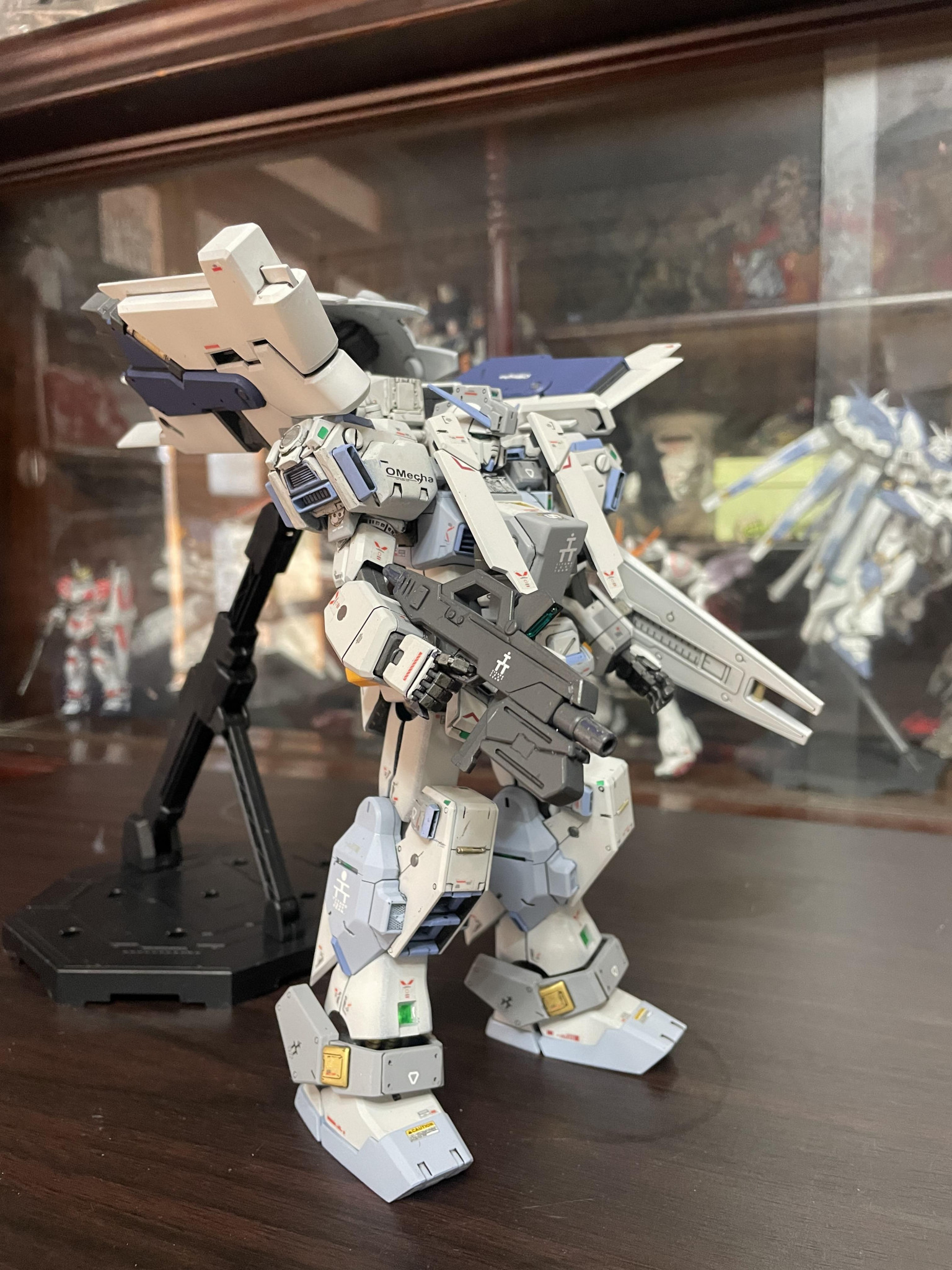 MGヘイズル改+フルドドでヘイズル・ラーにしました。肩アーマーを中心に細かいところをちょこちょこいじってます。アンクルアーマーは足首から脛に移設しています。