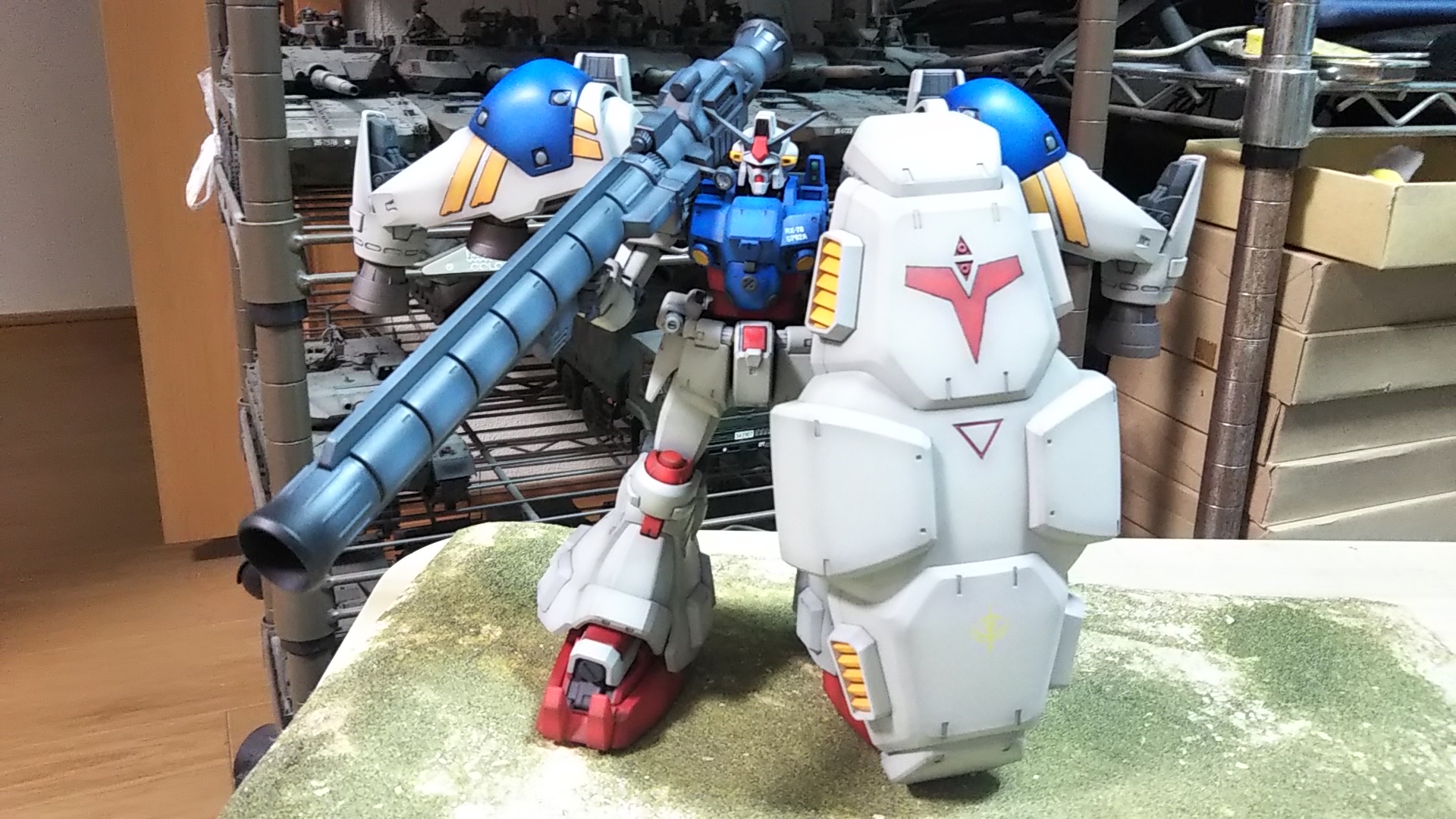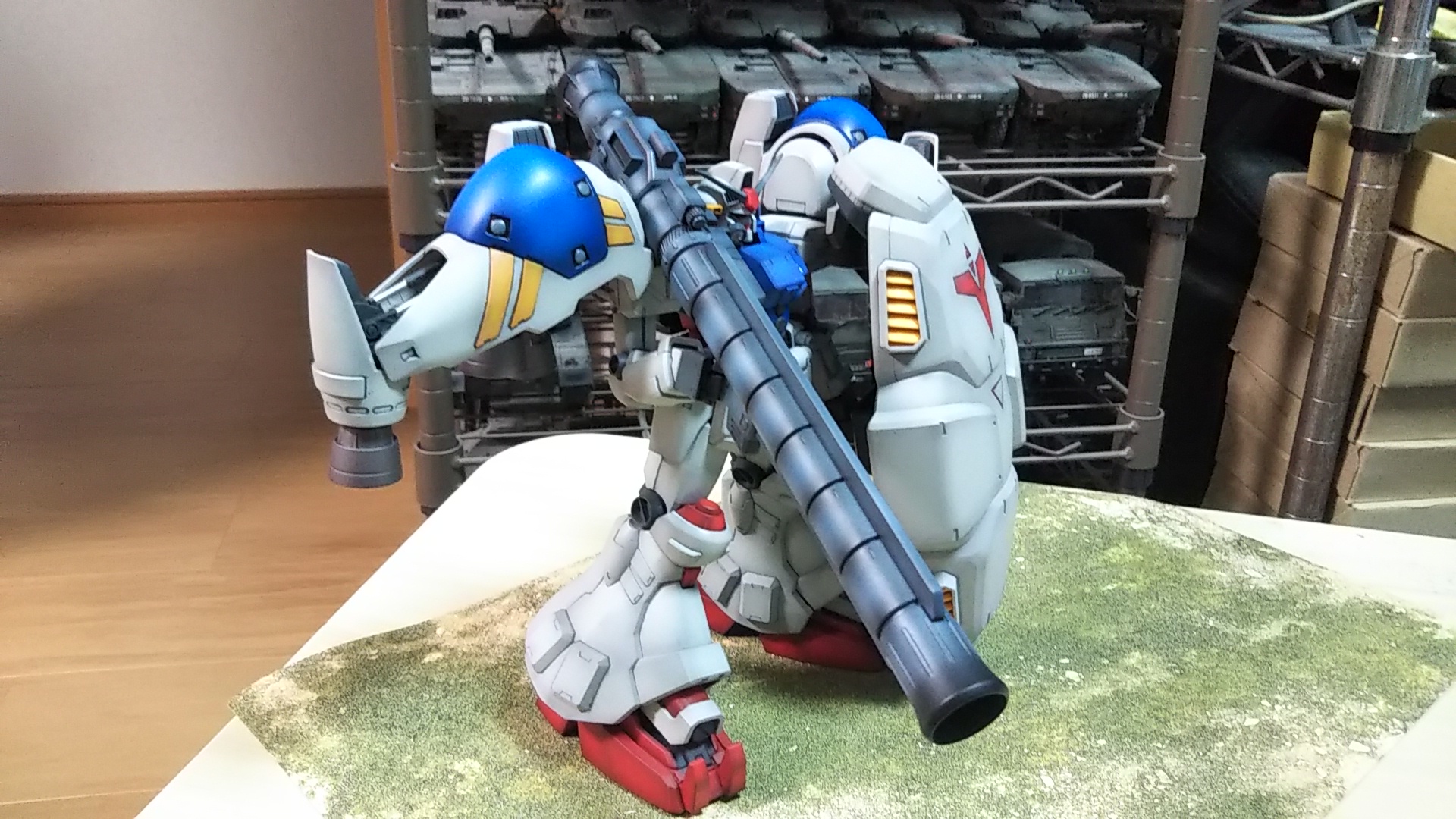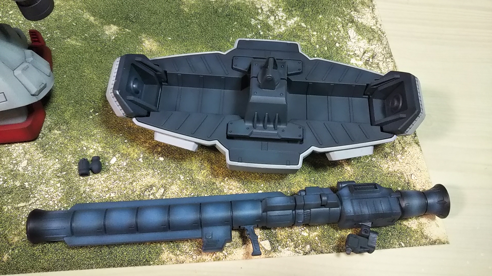 バズーカ、シールド裏の塗装素晴らしいです😊胸や肩の青部分、さり気なく、映ってる足裏、めちゃくちゃカッコイイです😊