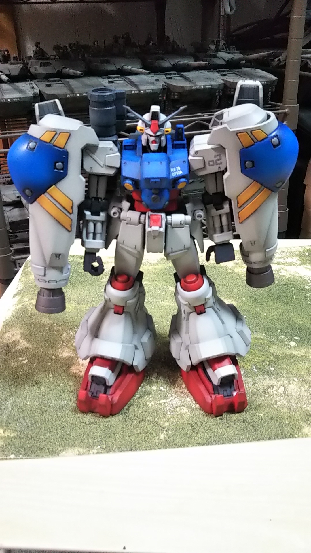 1998年発売のMGガンダムGP02Aサイサリスさんです💦おそらく初版を発売早々に調達して完成さたのですが、昨今のまいぶーむの流れでグラデーション再塗装しました💦作業に当たって、シャドーとハイライトが既存の塗装の下地を生かしております💦
