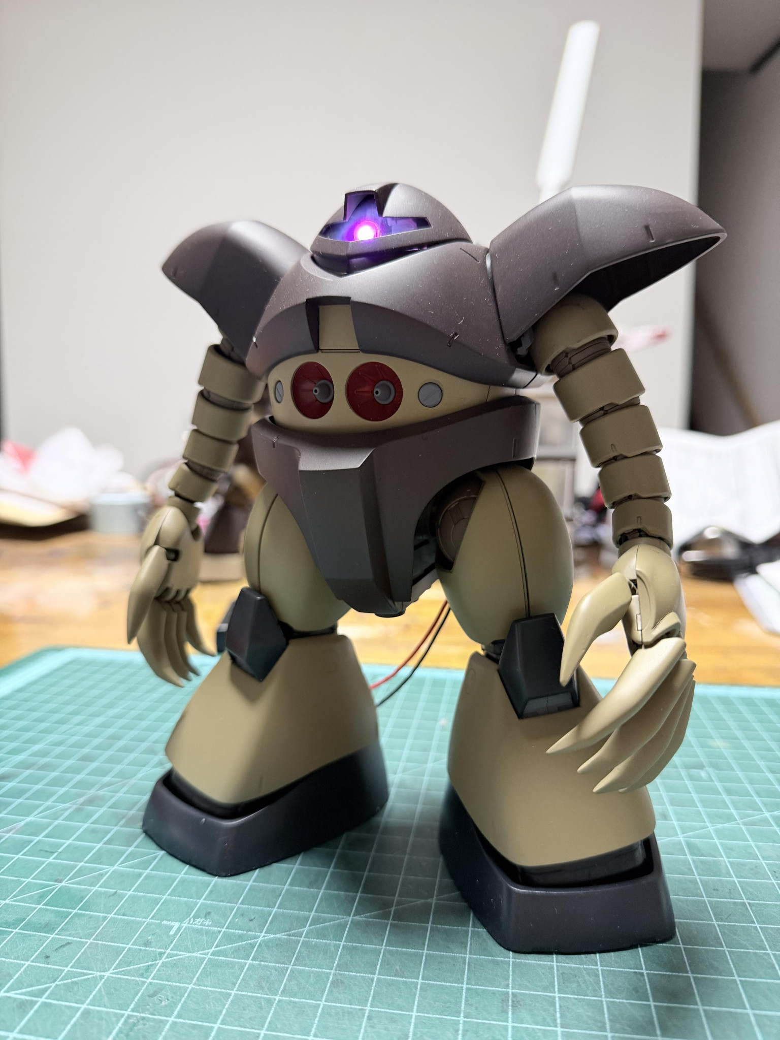 実際、塗装が終わりモノアイを光らせるためのLEDをプラモデルに仕込んだ時間はハンダ付けも含めて30分程度です。