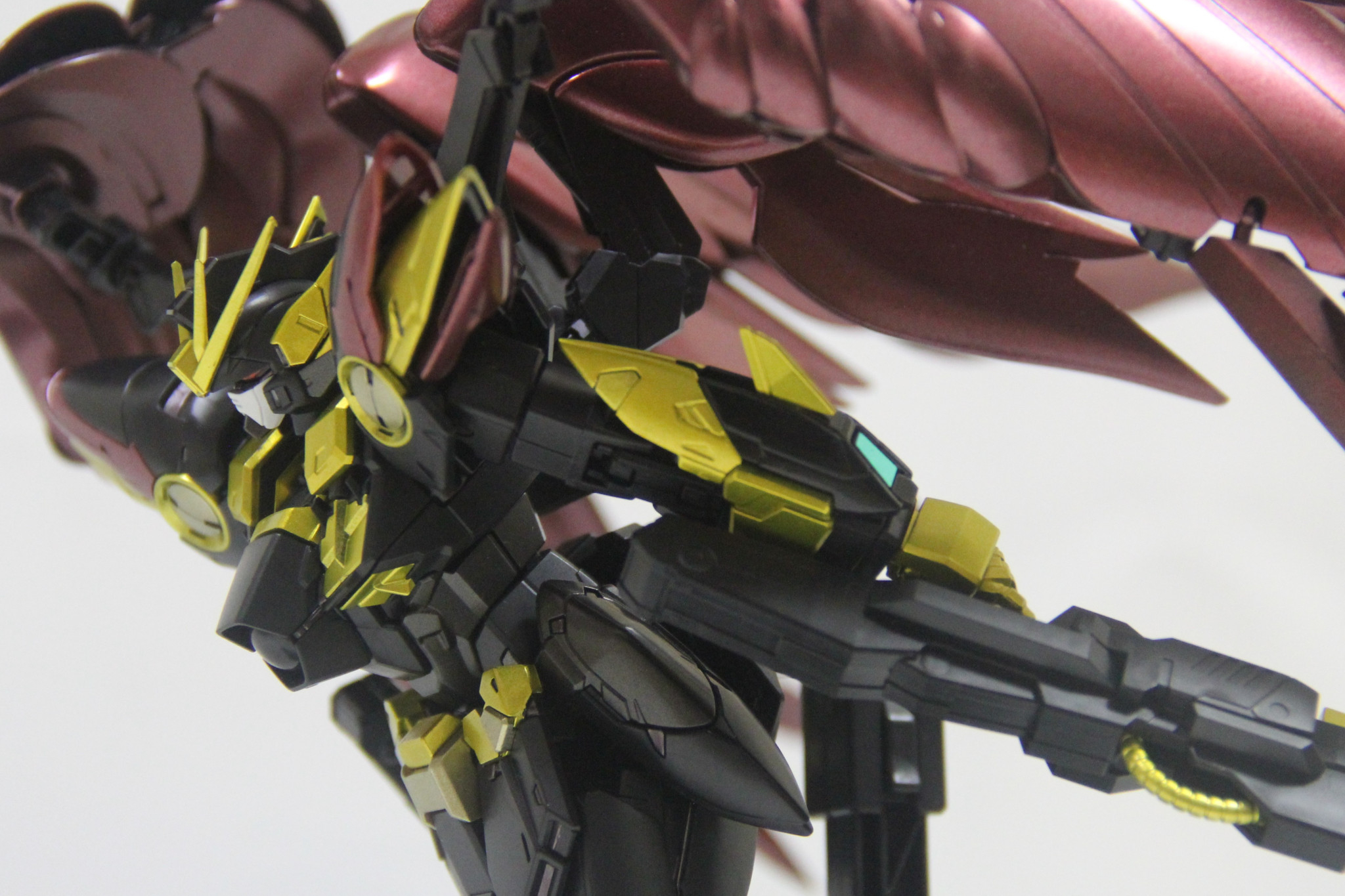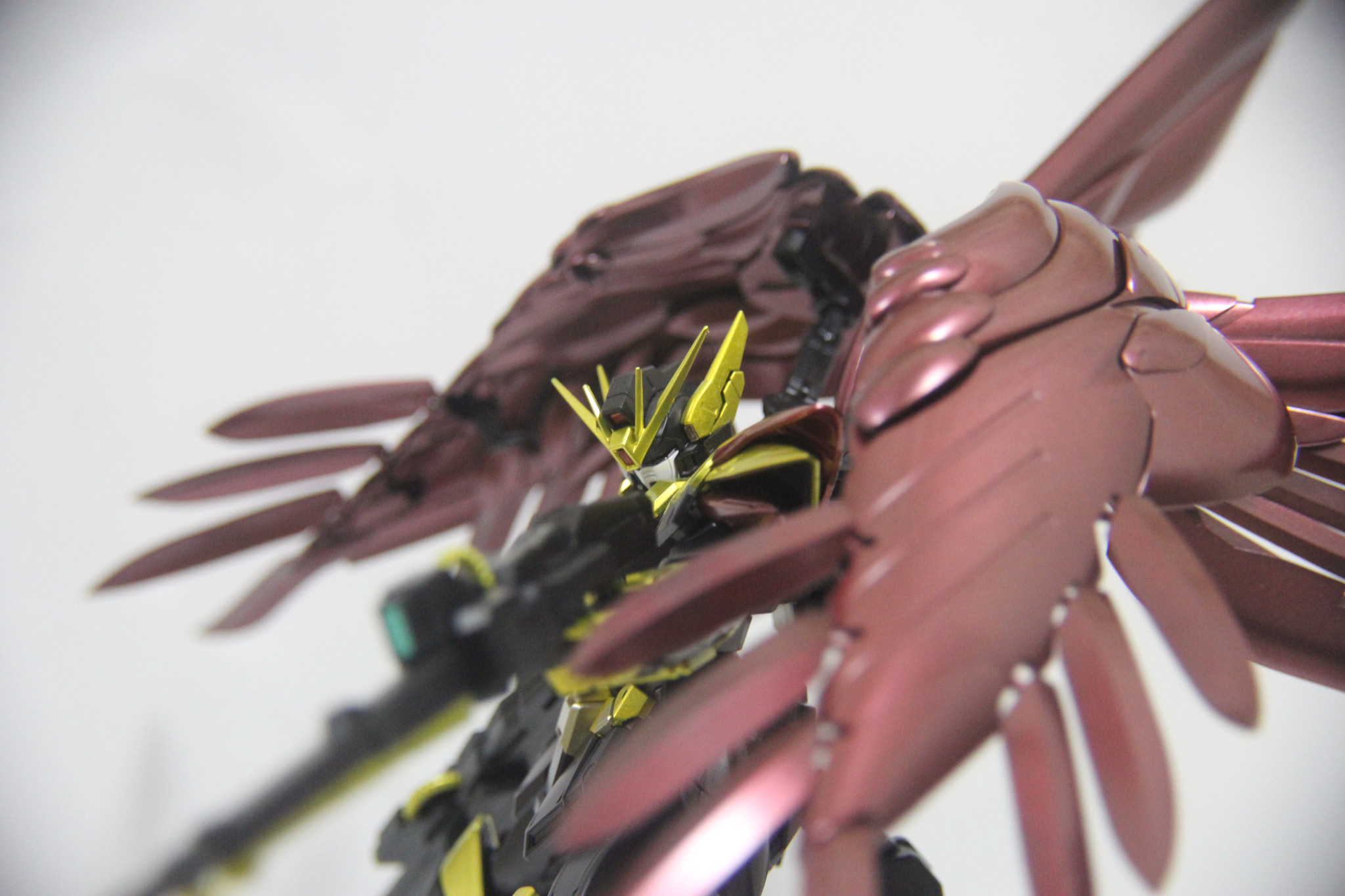 ノーマルのウイングゼロから雰囲気はガラッと変わっていますが,黒い部分はエコプラの黒で塗装箇所はゴールドとワインレッドくらいなので,ガシガシ動かして遊べます。