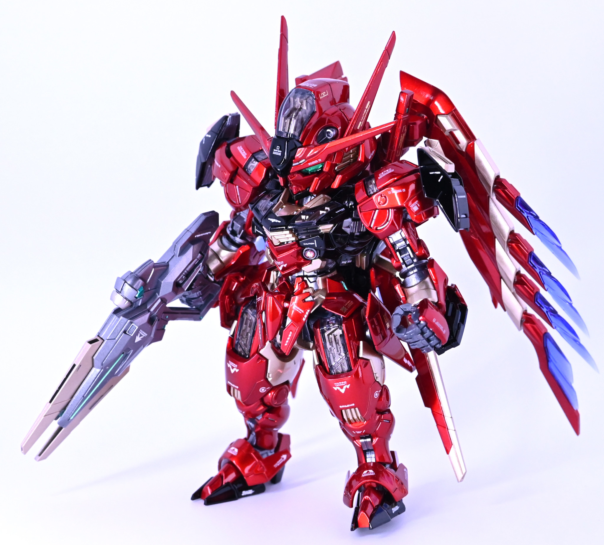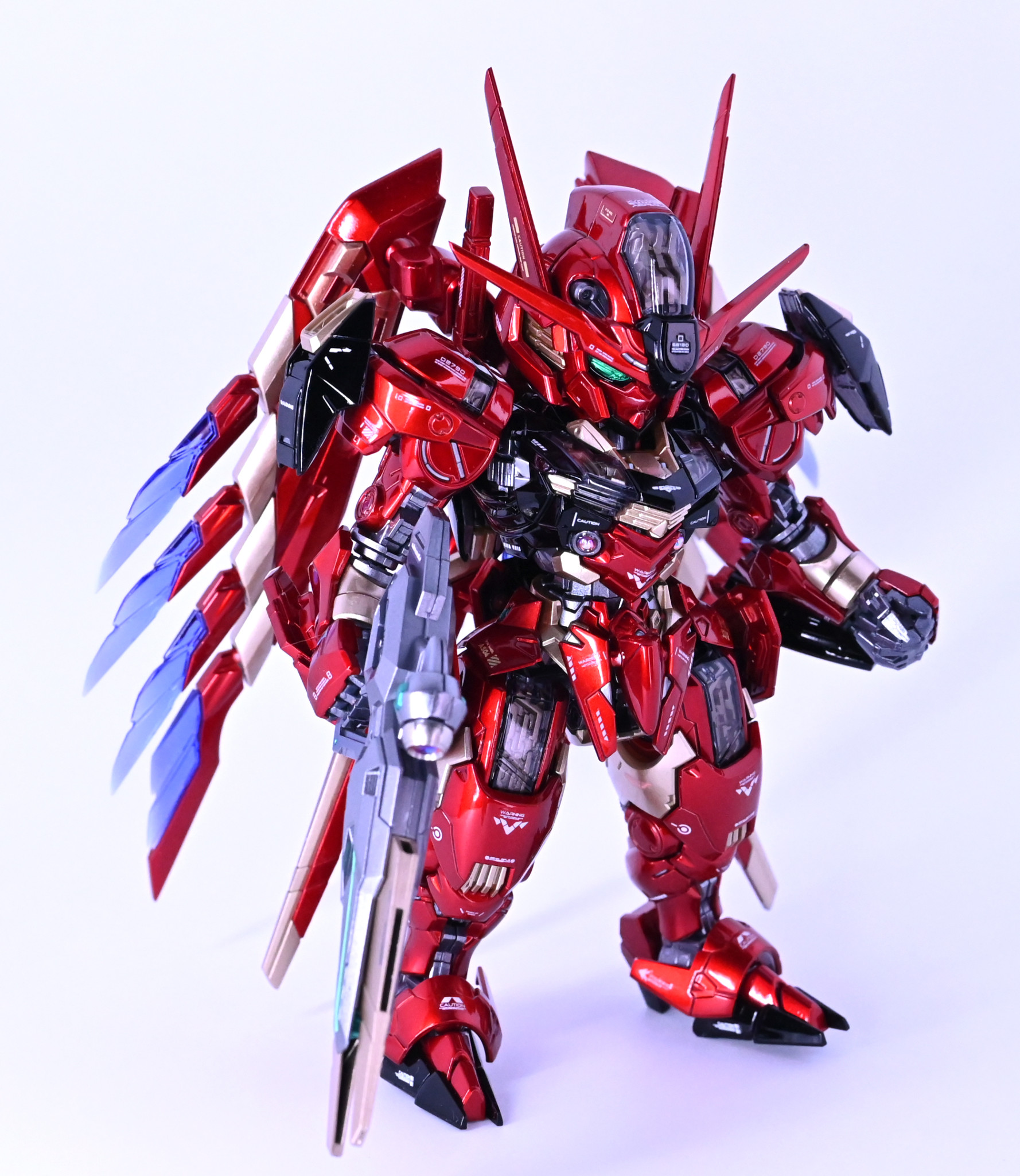 MGSD ガンダムエアリアルに天使の羽を装備し、キャンディレッドに塗装しました