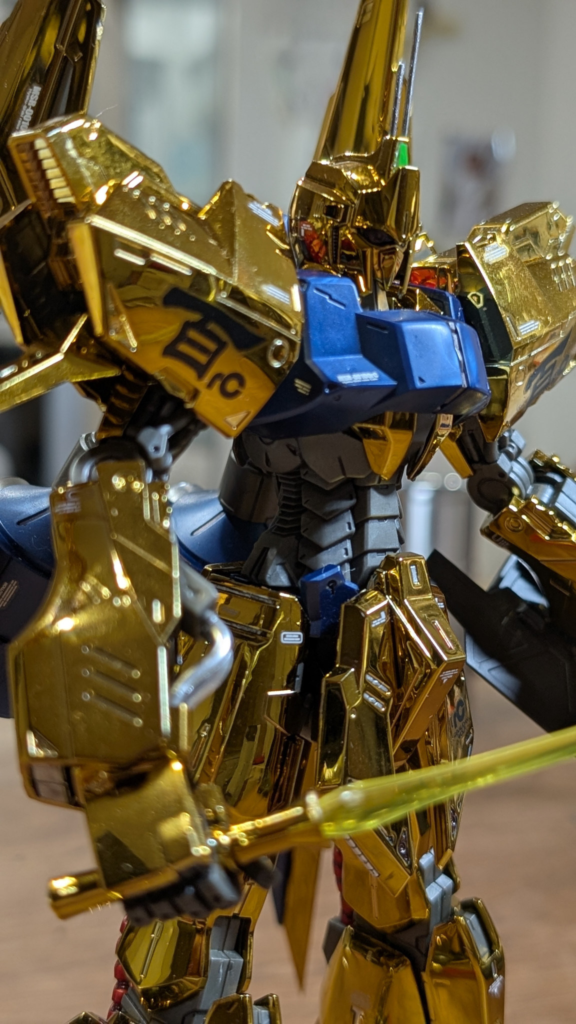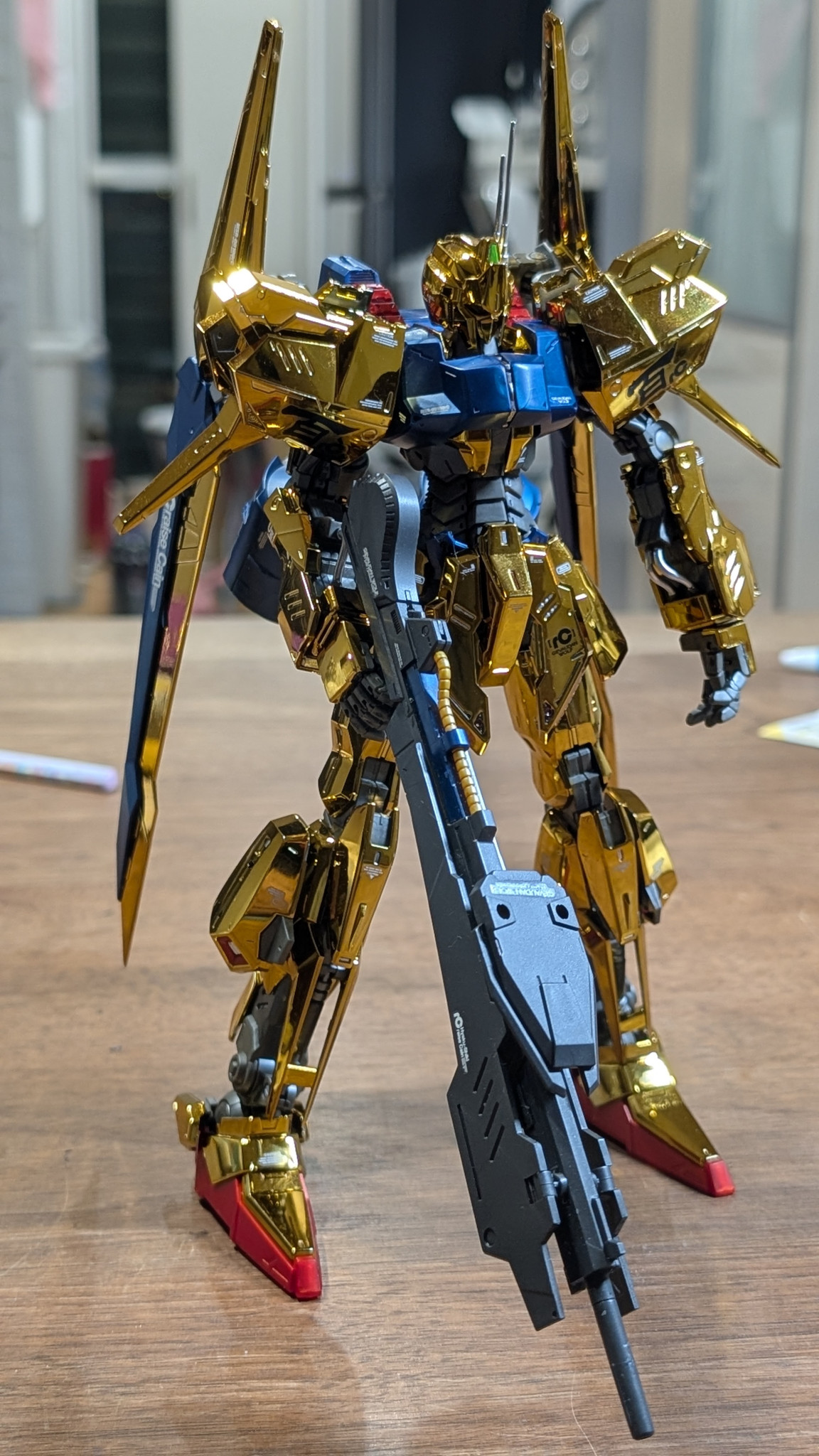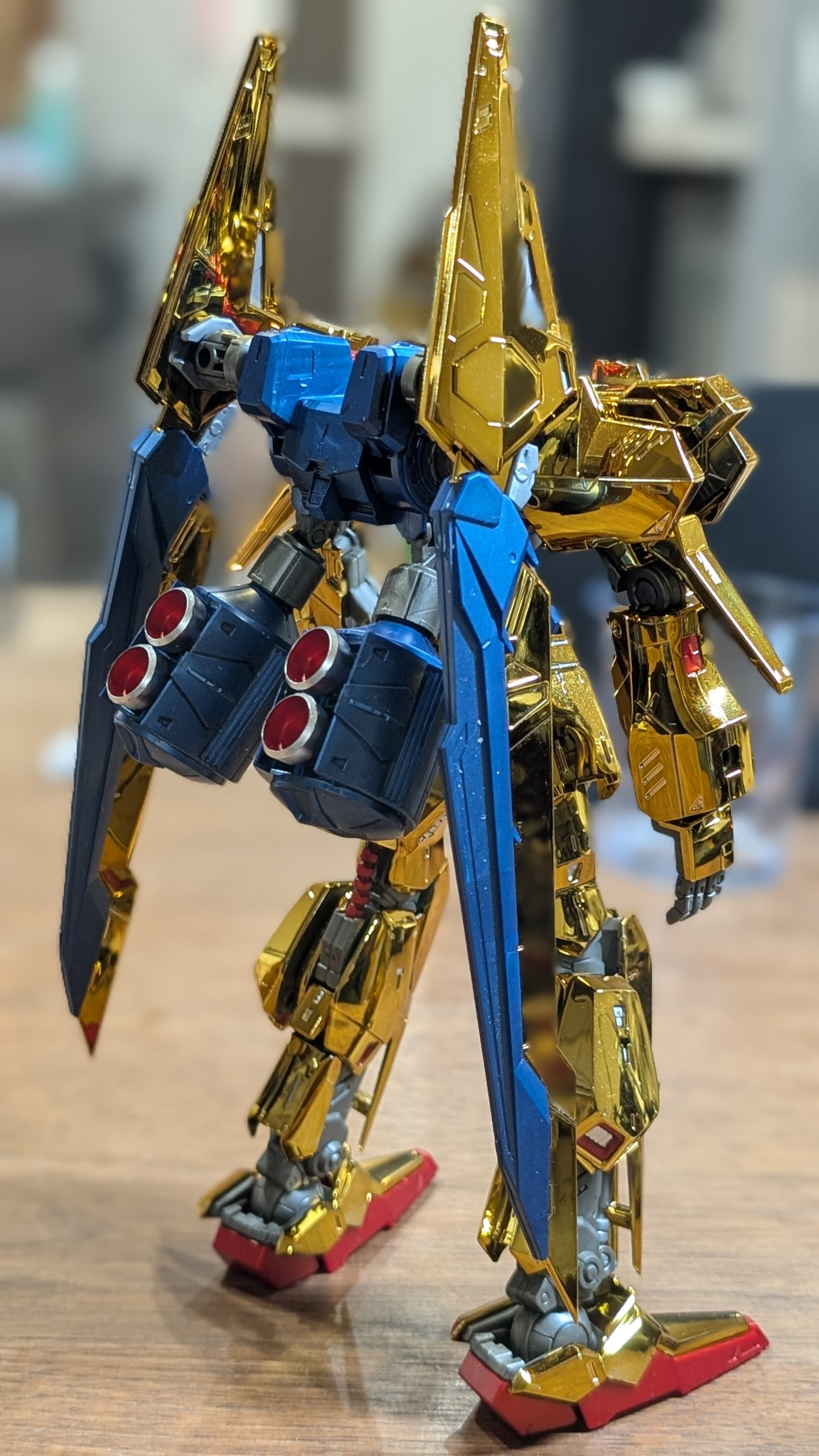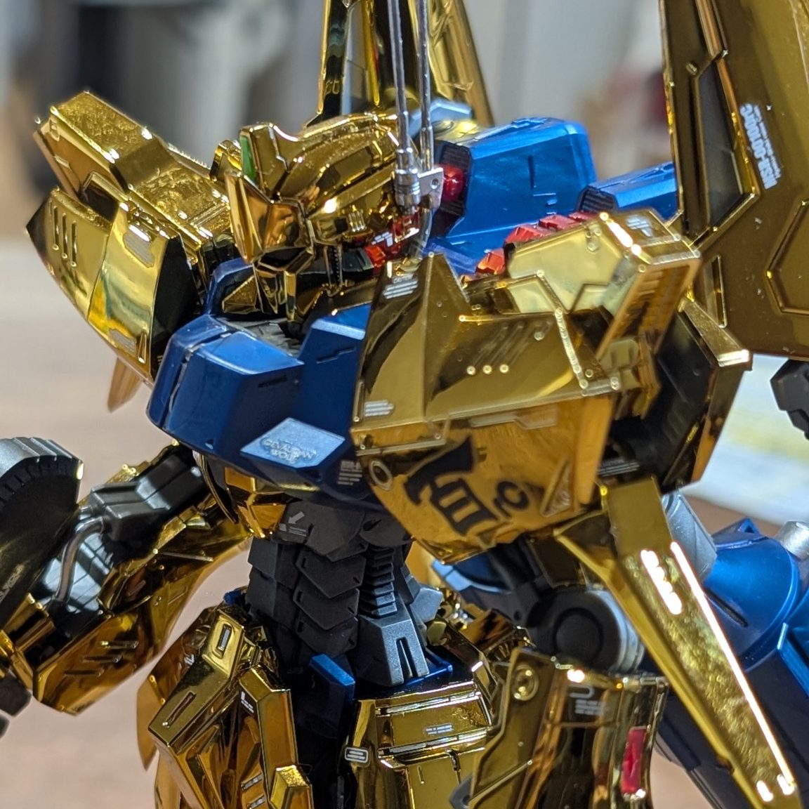 金メッキが初めてなので、ゲート処理やらトップコートなど迷うとこもありましたが、素組み・墨入れ無し・ランナー切り離し前にメッキパーツ以外は半光沢トップコートです。
