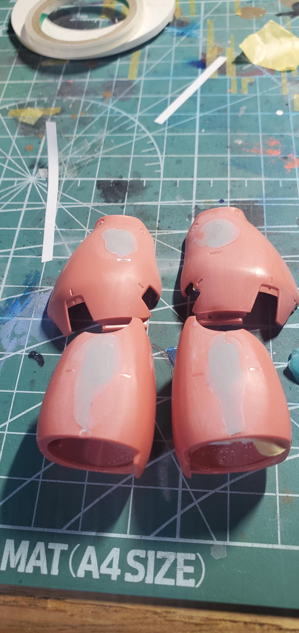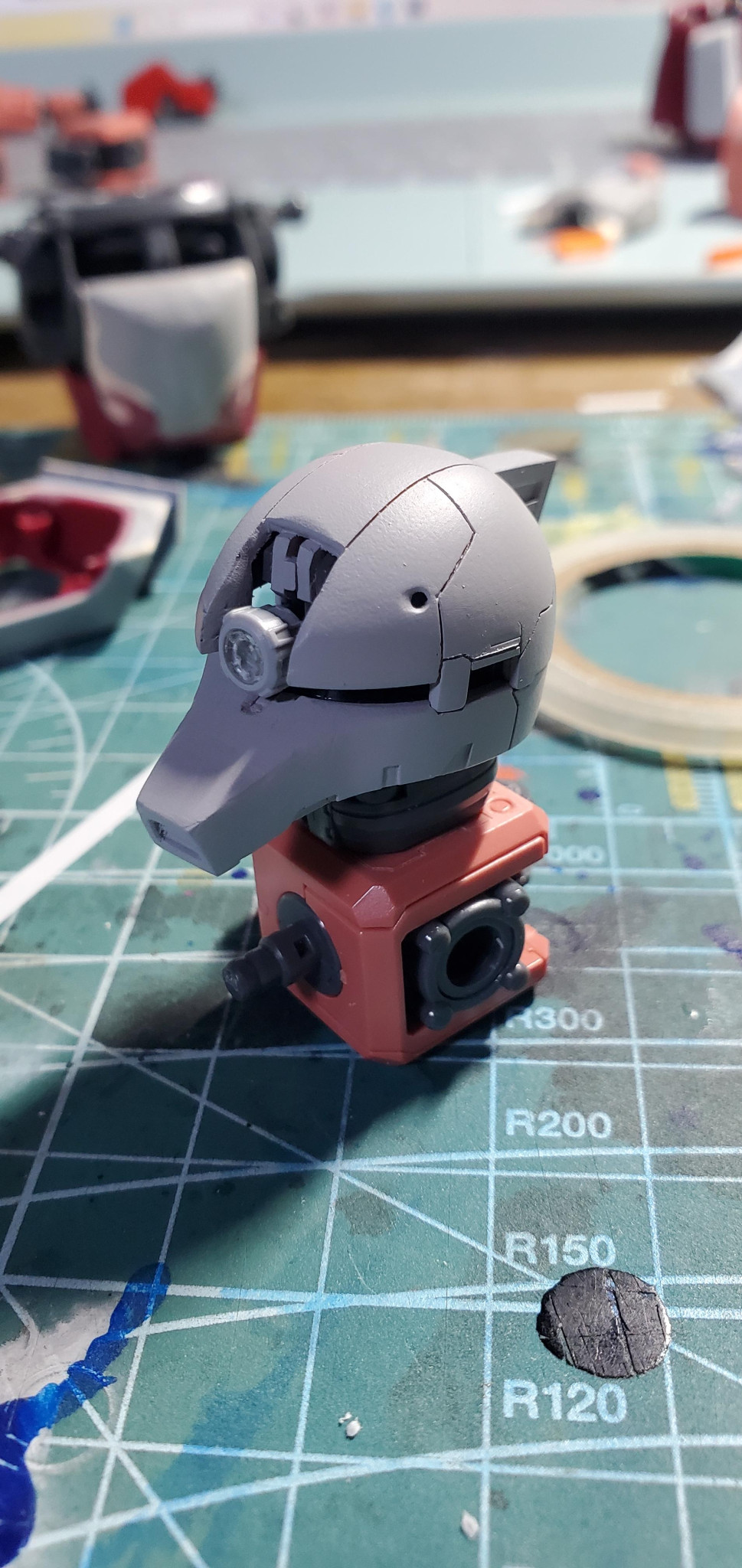 パテ、プラ板工作も苦労しました。ひさし部分をプラ板で狭め、ほほ、口部分をパテ埋めして整形