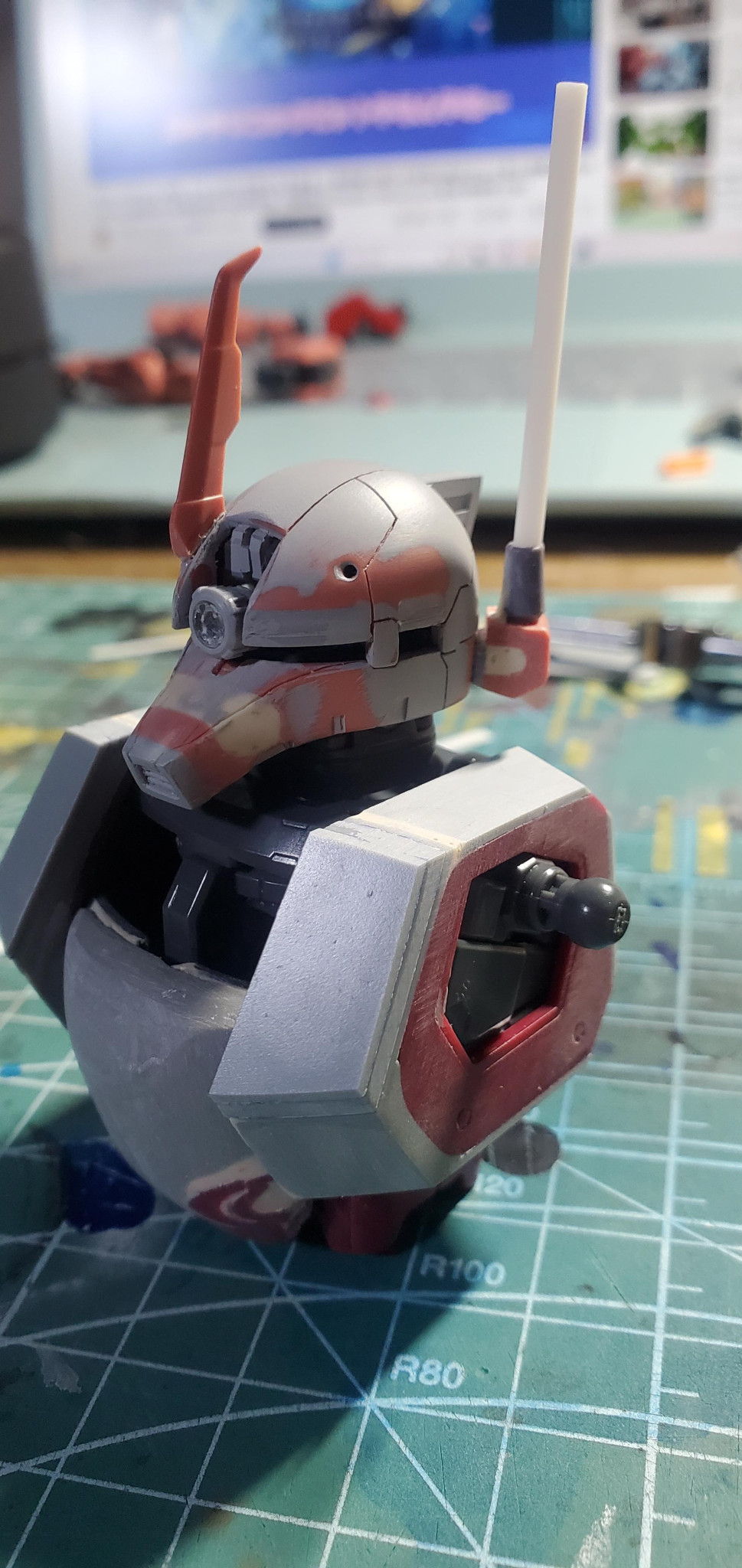 右肩のザクスナイパー特有のパッドは写真のように作ったあとでかすぎると感じ作り直し。