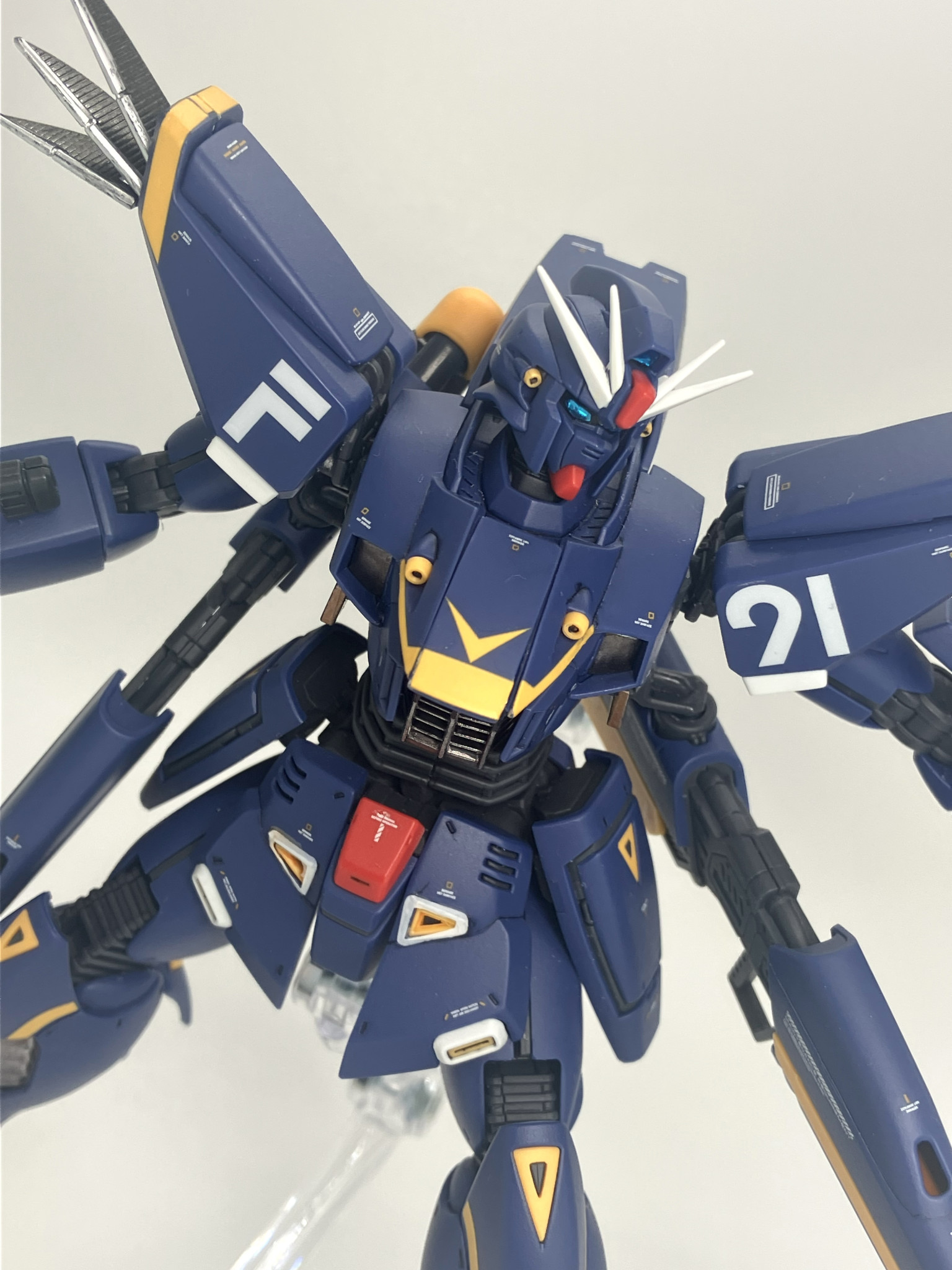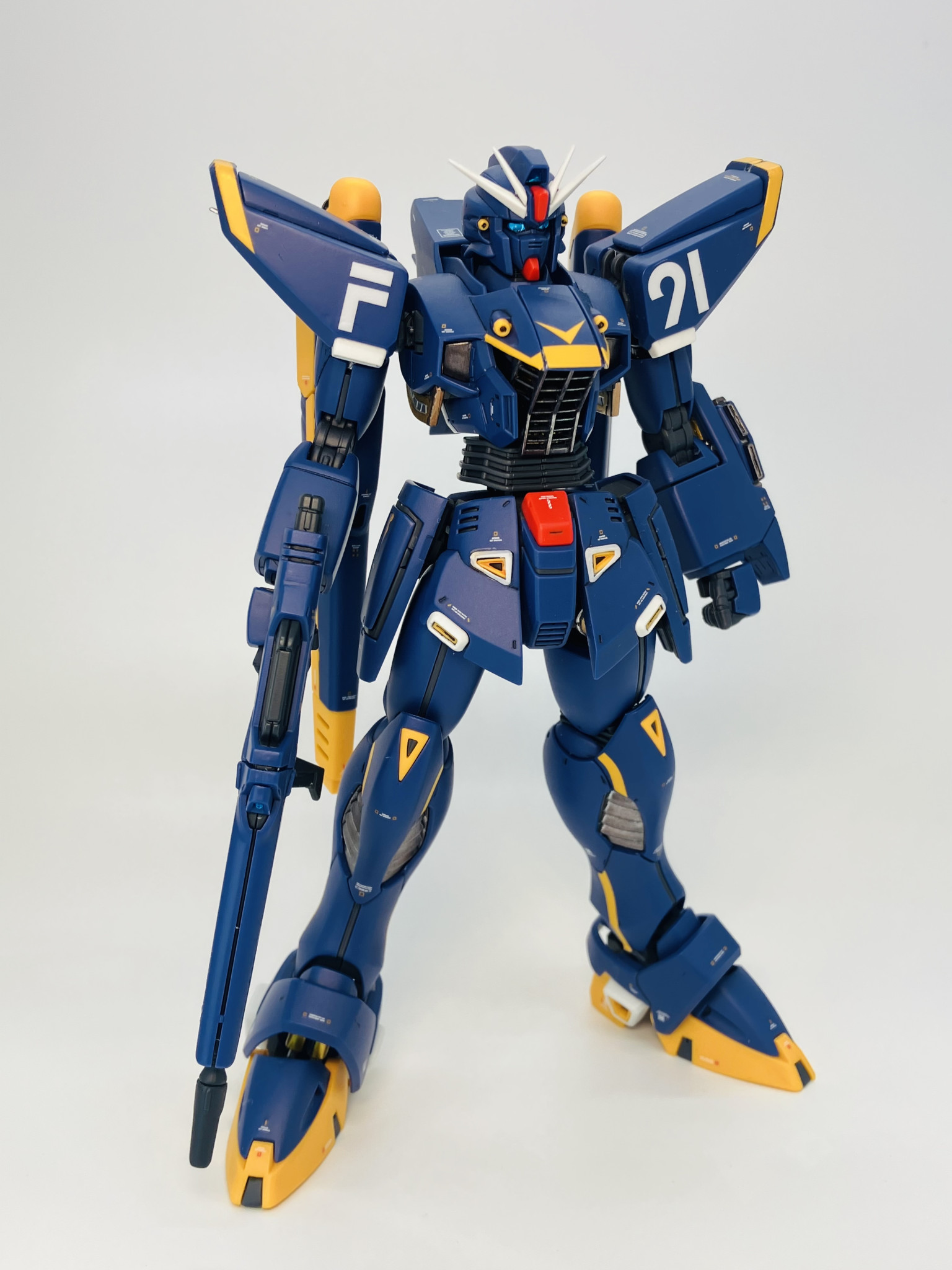 白くヒロイックなF91がパーソナルカラーに包まれてティターンズカラーのようなスタイリッシュなアレンジに😉