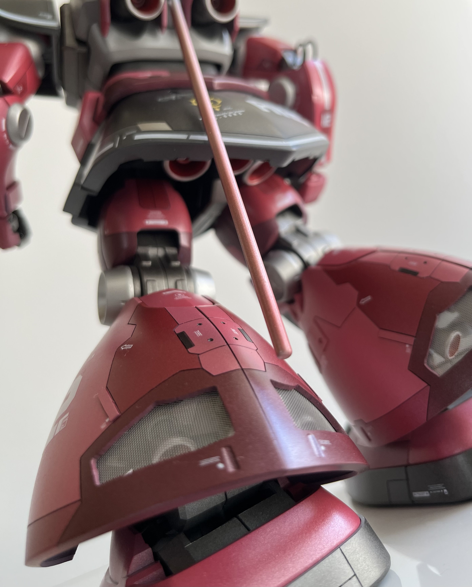 ドムはバーニアがたくさんあるのですが全然見えないので脚部の背面に金属メッシュを仕込んでバーニアを見えるようにしてみました。