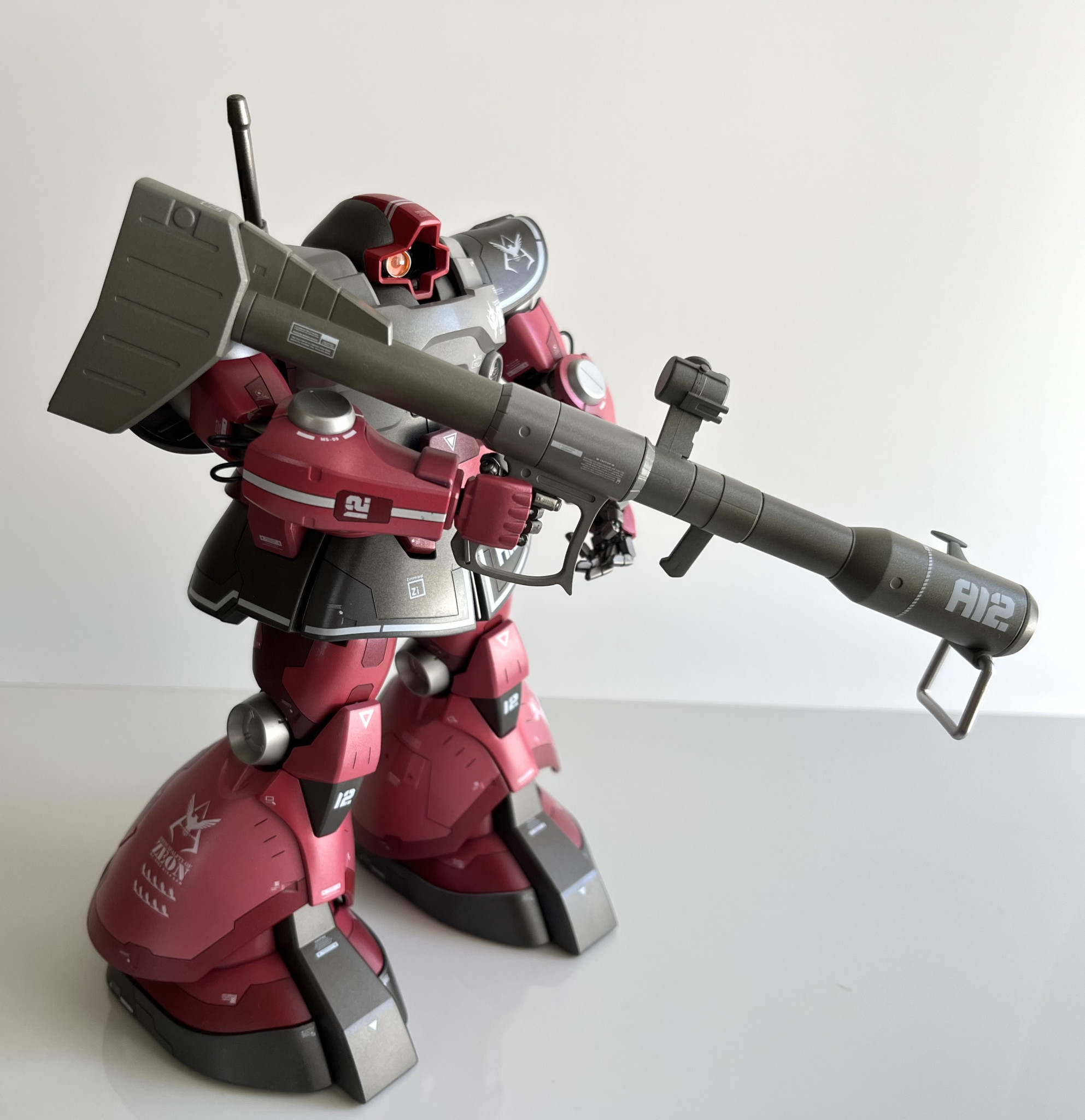 ガンプラ7体目。MGのリックドムをシャア専用機に塗装しました。今回は初めてケーブルを使ってみましたが、結構お手軽にディテールが加えられるので満足です!
