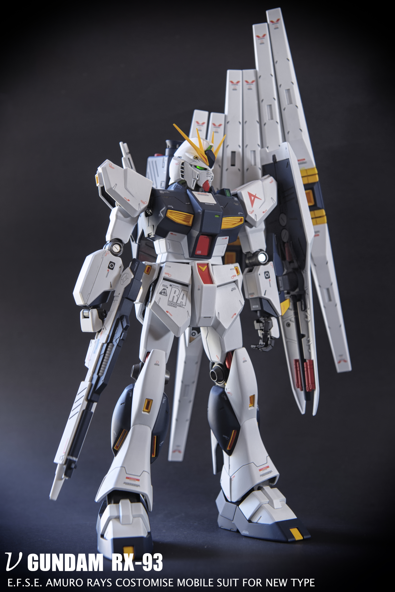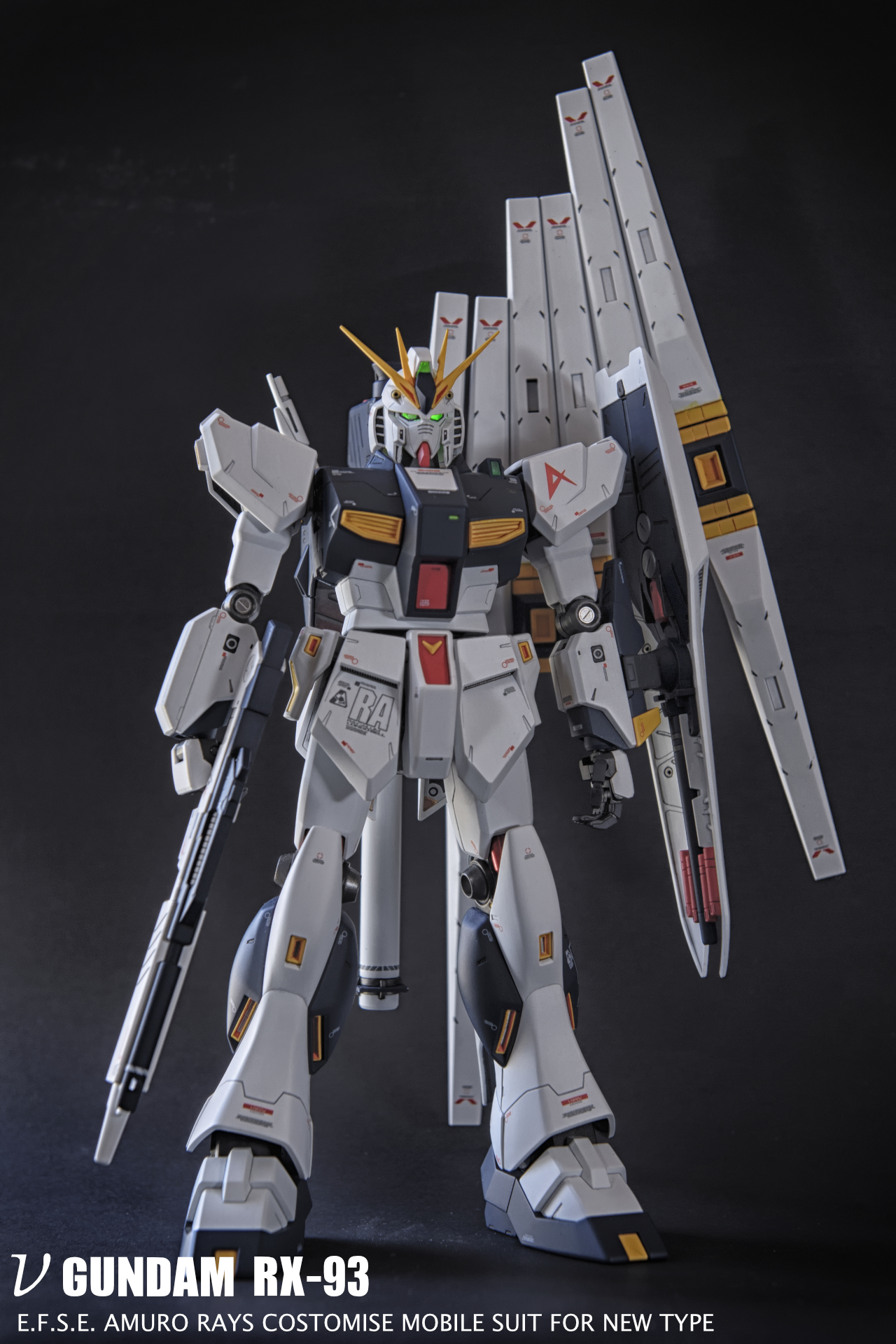 このNuガンダムは20年以上前に購入し、長い間積んでいました。この模型を組み立てるのに数ヶ月かかりましたが、大幅な改造はしていません。ただ、この模型は古いため、内部の骨格のプラスチックが劣化していて、力の入れ方を間違えると折れたり粉々になったりします。手首や太ももの関節が折れてしまいました……。そのため、ずっと修理しながらの作業でとても神経を使いました!完成できてとても嬉しいです😃!全て筆塗りで、スジ彫りを深くし、内部構造には台湾製のメタリックカラーの水性・油性塗料(とても良いです)を使い、LEDライトとエッチングパーツも加えました!今はあまりポーズを取らせられませんが、Nuガンダムにはしっかり立っていてもらいます!