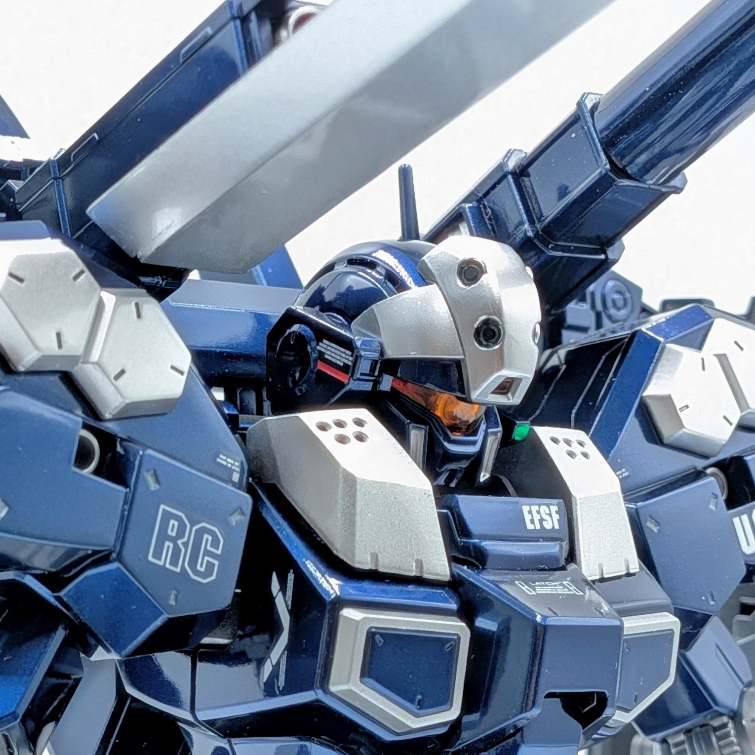 ジェスタは私も大好きなMSのひとつですが、装備も塗装もかっこよすぎでシビレます。このメタリック感は、プリズムブルーブラックというのですか。ペン塗りしか出来ない私には難しそうですが、ホントに似合いますね。自立出来るバランスもすごいです。これで、ベースジャバーに乗ってMAライクな姿も見たいぐらいです。いいものをありがとうございました!