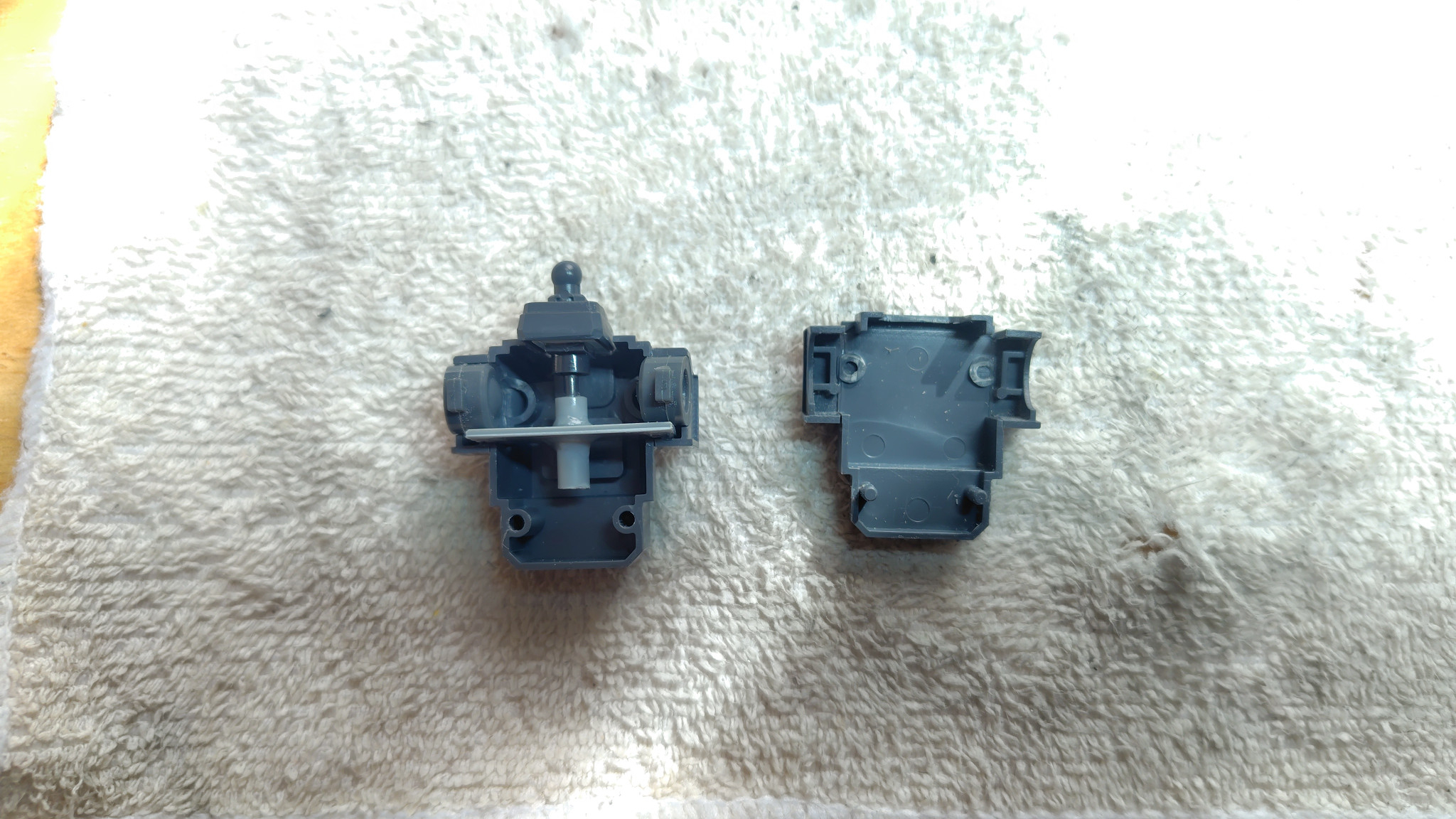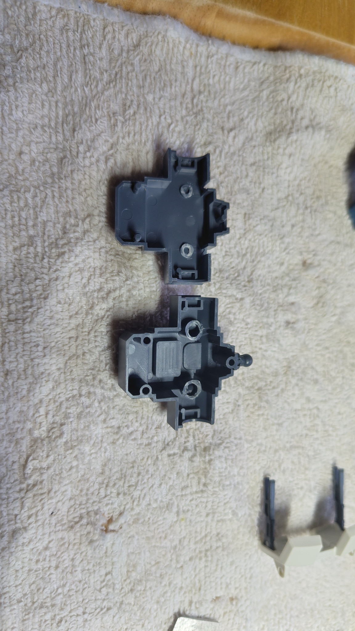 胸部内部フレームです。左右ダボ軸部分を2mm詰めます。付けたあとポリキャップが干渉するので、削っておきます。
