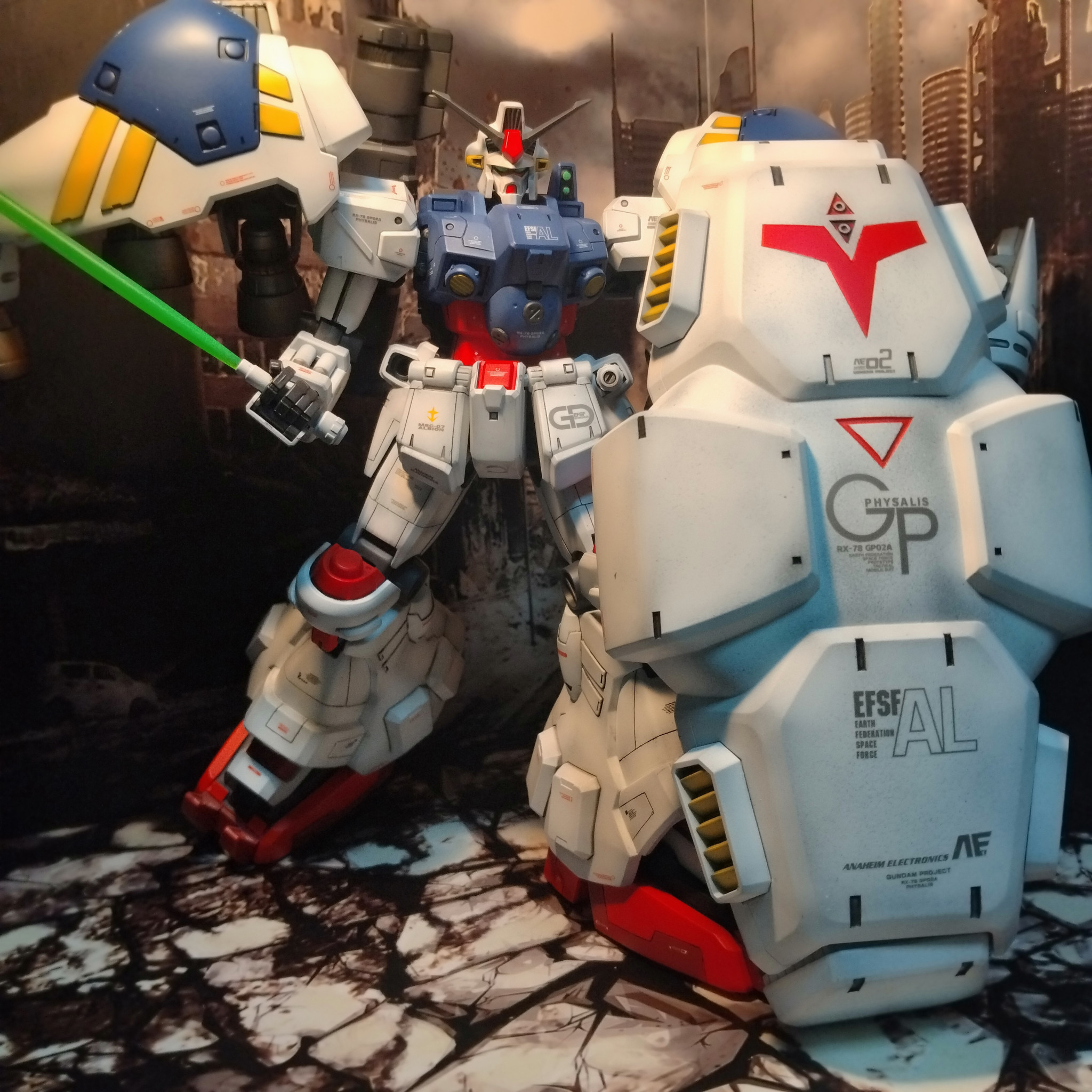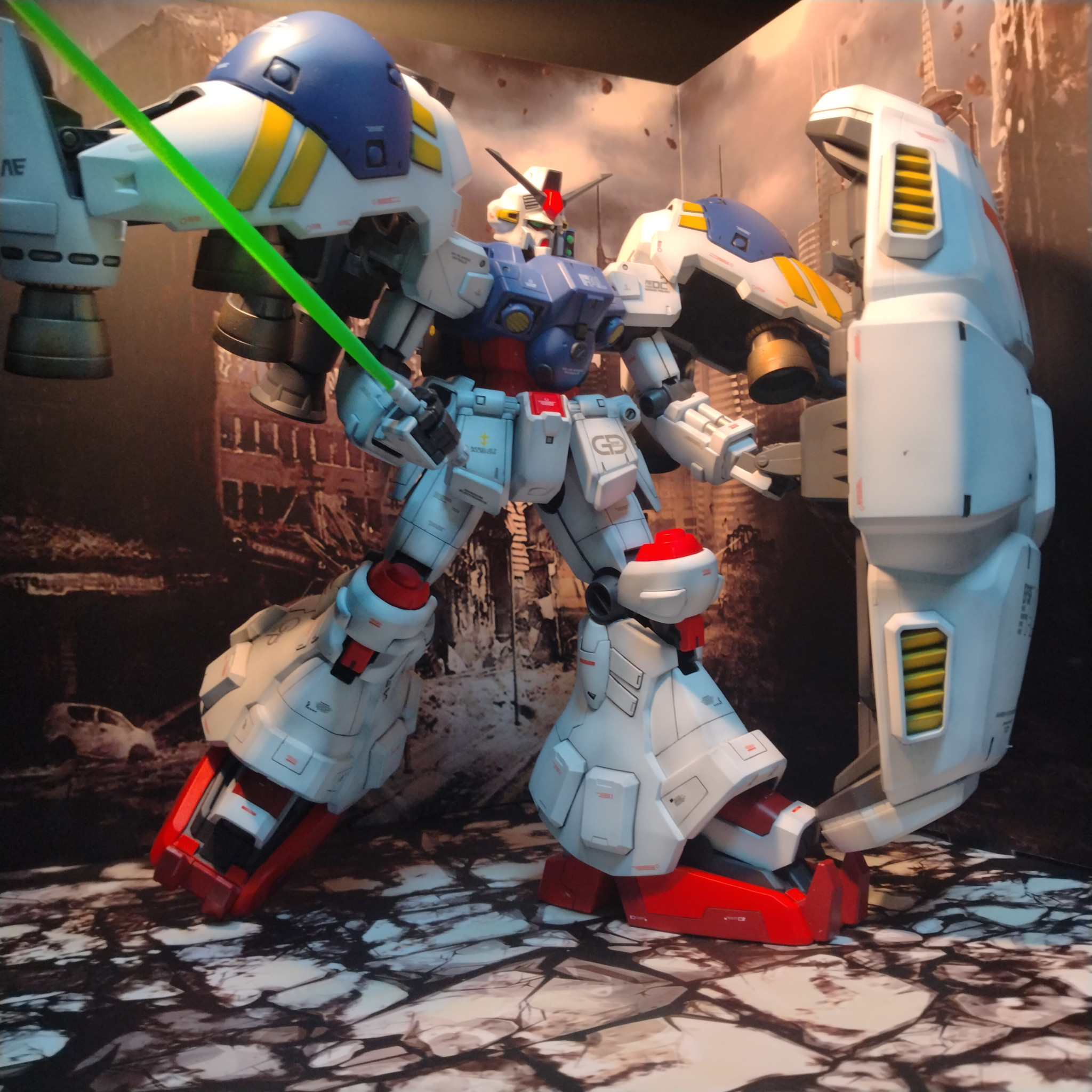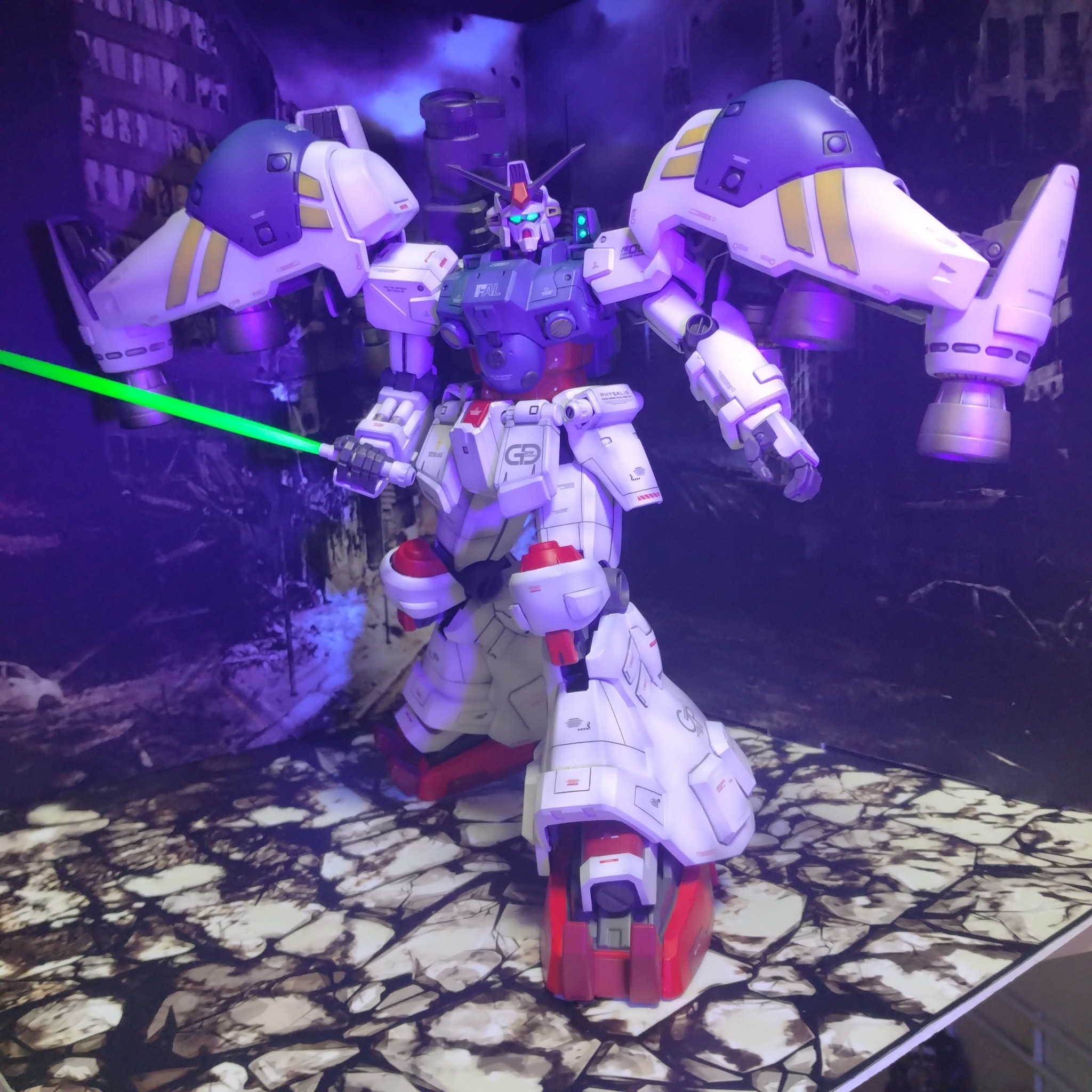 デジラマ背景でMGジェガンです!😀スジ彫り追加して一応カラー…