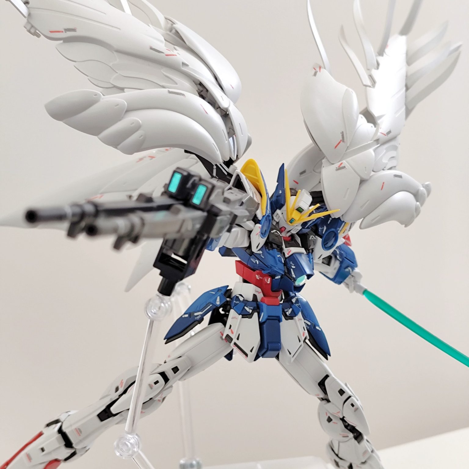 ビームサーベル装備です。ウイングゼロのキットはいつもですが、やはり翼が綺麗ですね。翼のボリュームがスゴいですが、保持力は強いです。