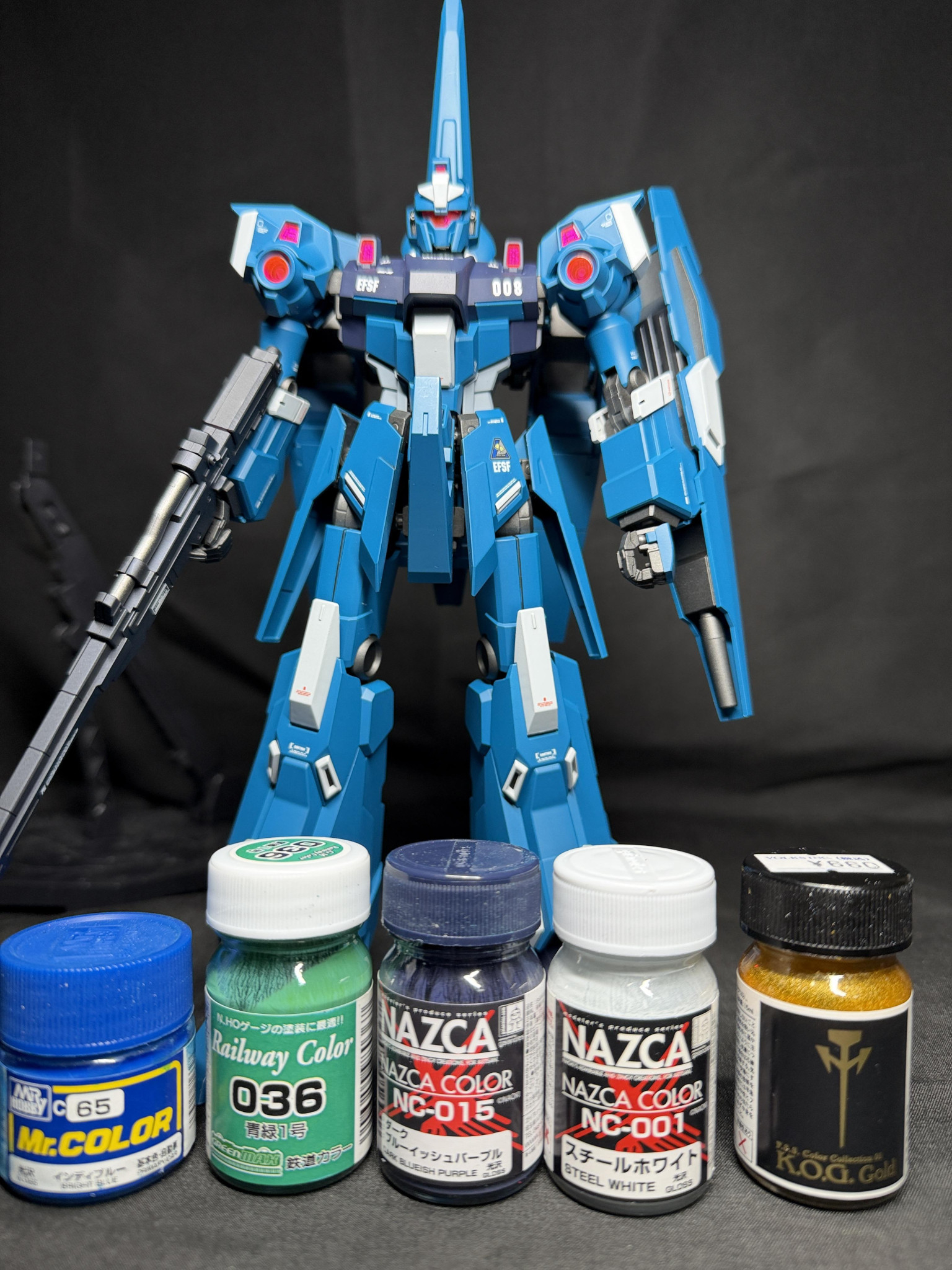 外装:(青)グレサフ→インディーブルー7+青緑3、(紺)グレサフ→ダークブルーイッシュパープル、(白)グレサフ→スチールホワイト、(金)黒サフ→koggold
