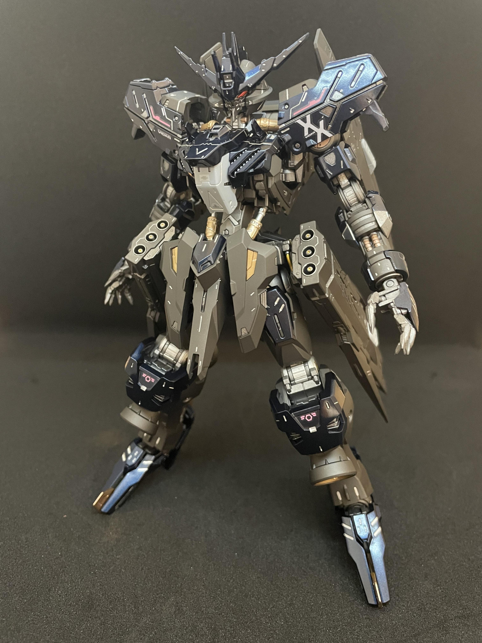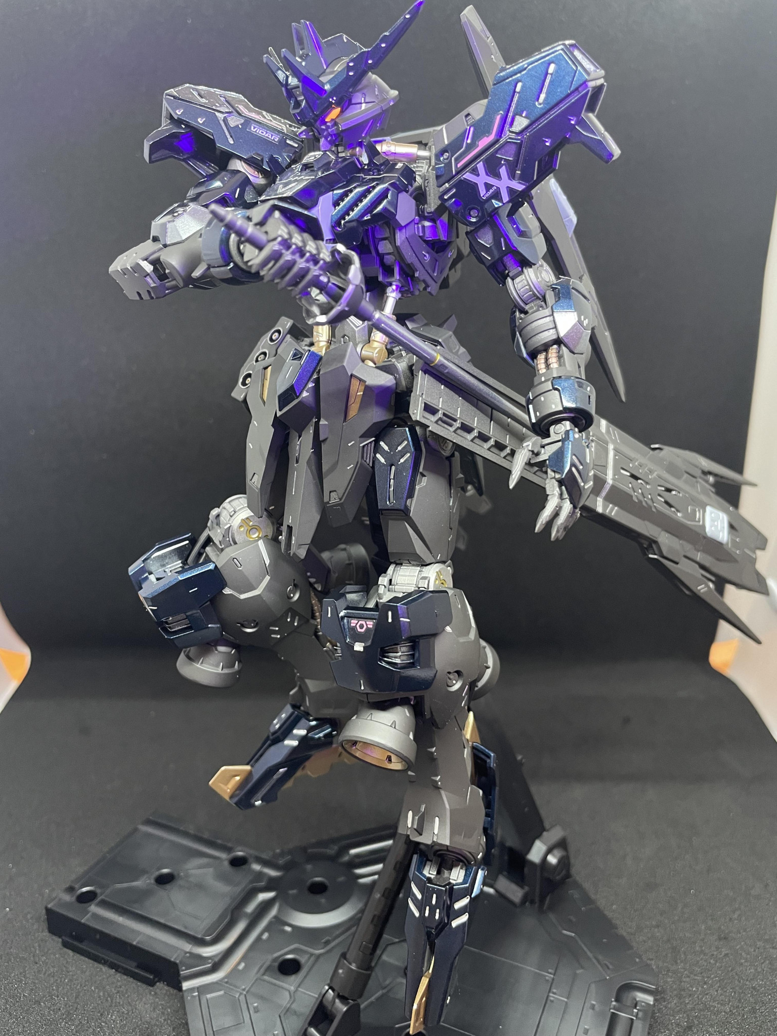 黒いヴィダールを作ろうと思ったんですが、プリズムブルーブラックと新しくグラファイトブラックを使ってみたかったので光沢、半光沢、艶消しを使い分けながら塗装しました。
