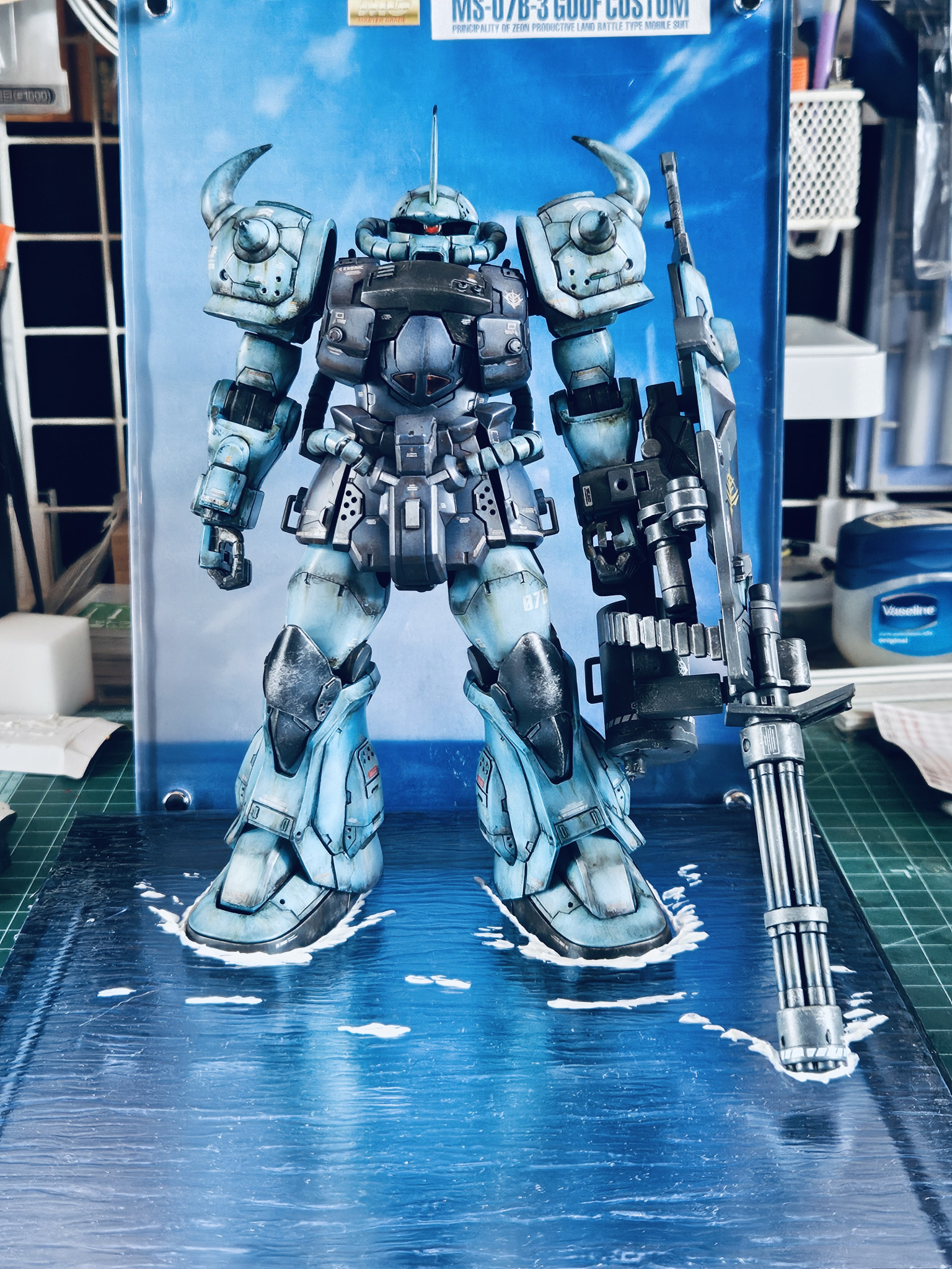 コメント失礼します。とっても男気あるグフカスタムで、かっこいいです😁ディテールや新規モールド追加やウェザリング等、細やかな所まで丁寧に制作されていますね😊グフカスタムを制作する時には参考にさせて頂きたいです😆