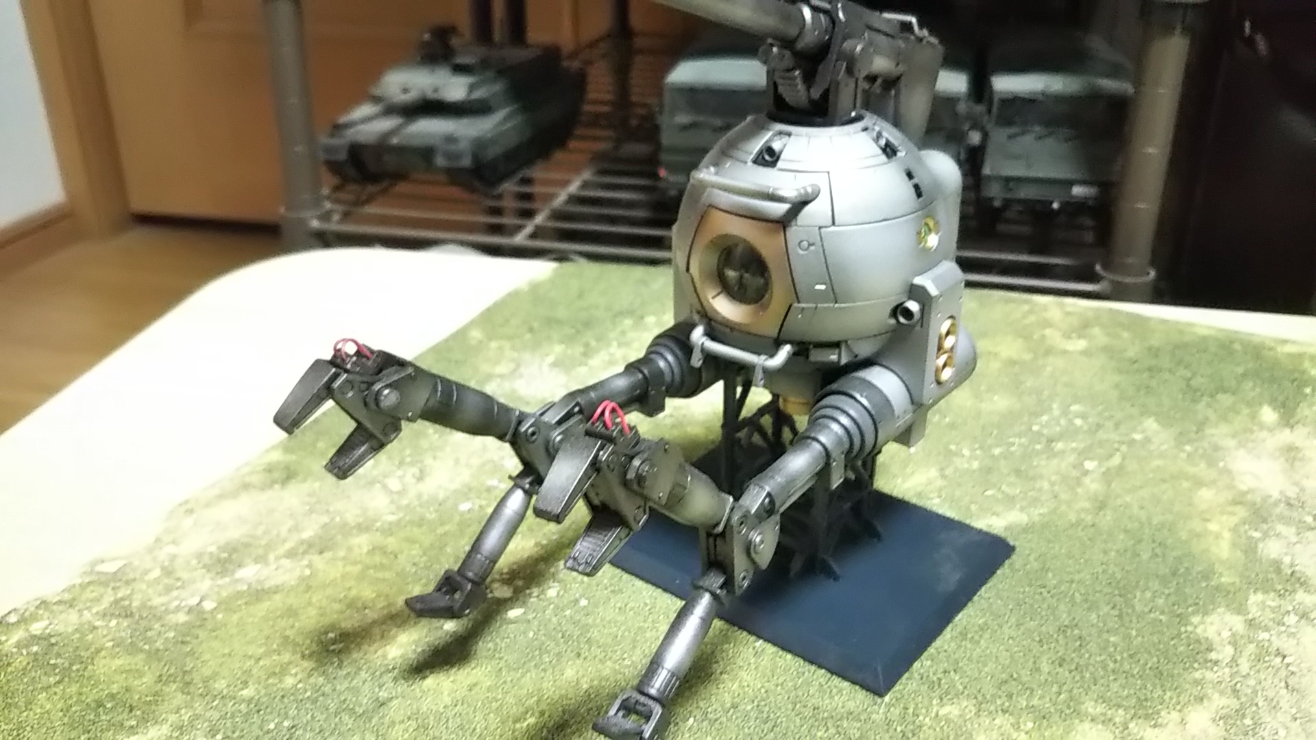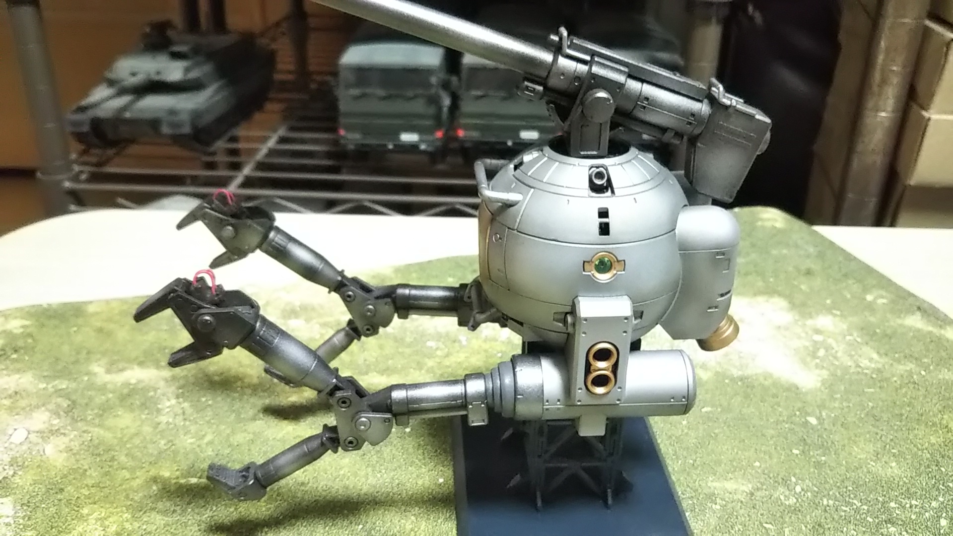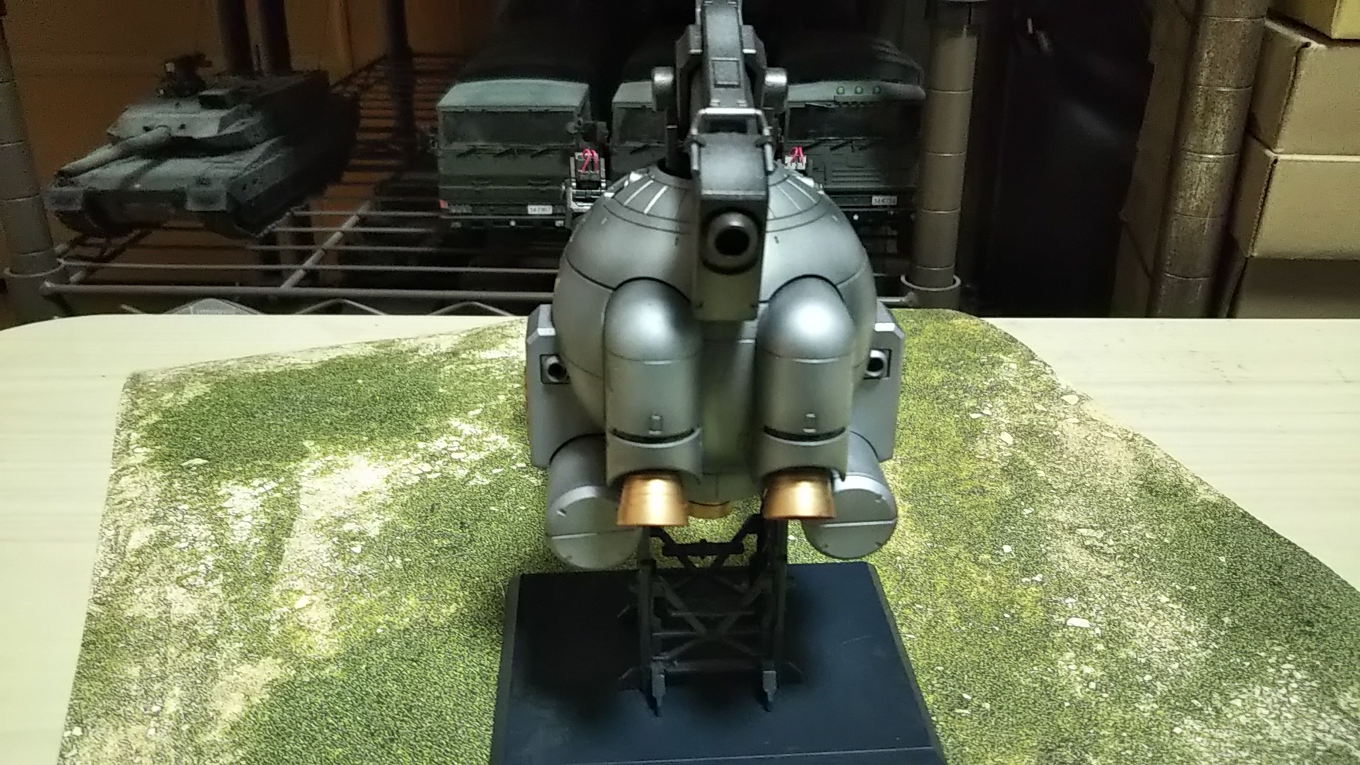 うしろ姿💦いつものスタンドですが、キットのものにつや消しラッカー吹いただけです💦(つや消しラッカー吹いただけで塗装しなくてもよくね的なこと考えた時期、ありました💦)
