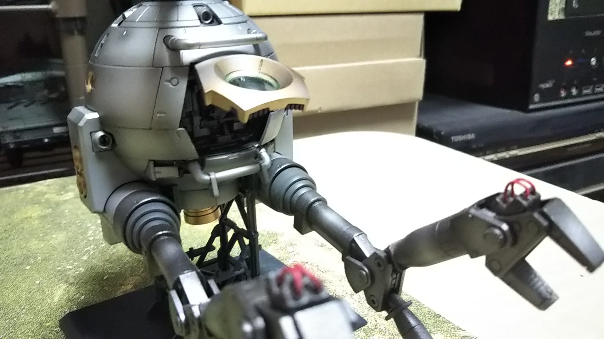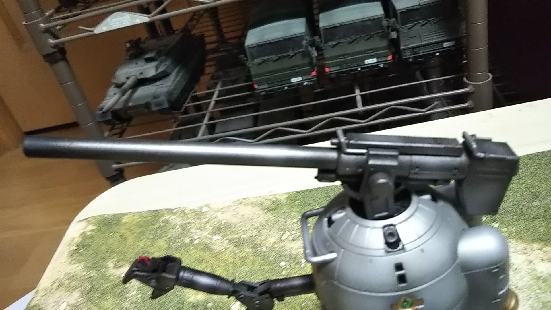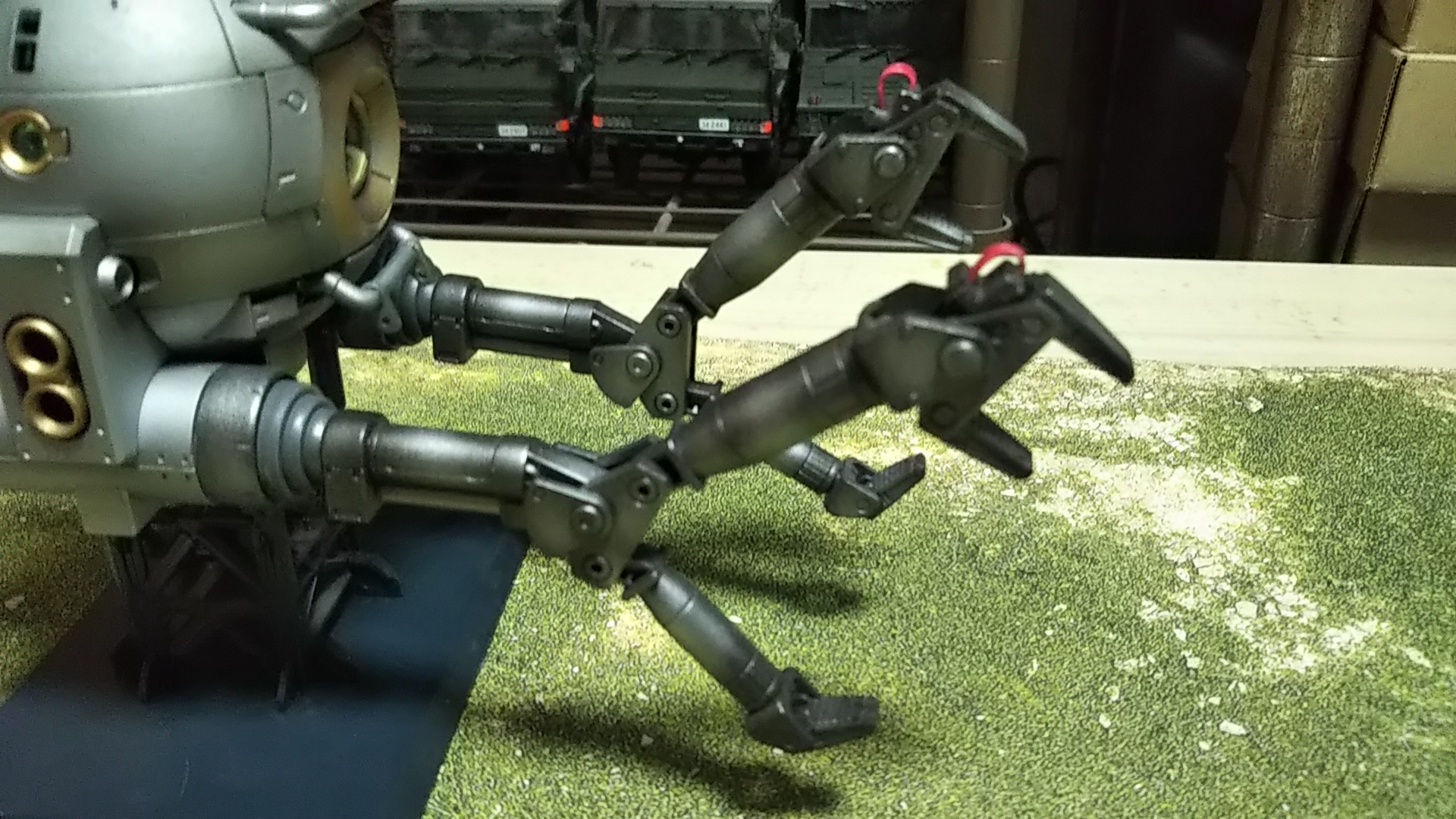 うしろ姿💦いつものスタンドですが、キットのものにつや消しラッカー吹いただけです💦(つや消しラッカー吹いただけで塗装しなくてもよくね的なこと考えた時期、ありました💦)