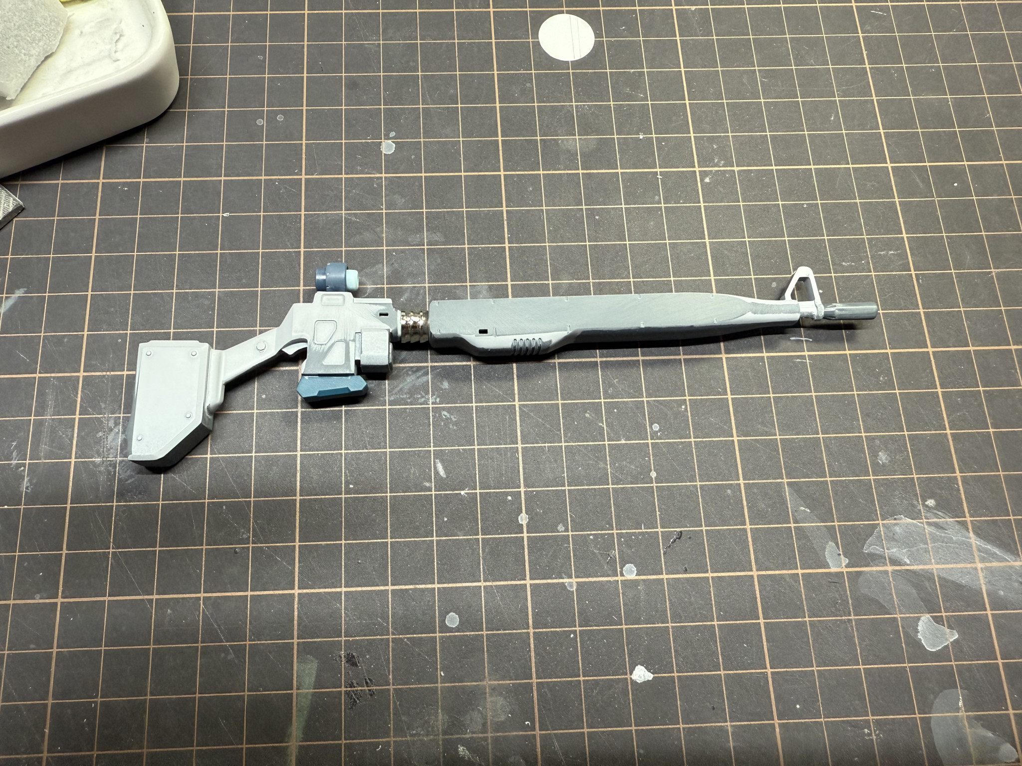 スナイパーライフルは途中で切って、メタルパーツ組み込んだり、先端にマズル入れたり、ジャンクパーツ接着させて作ってます。