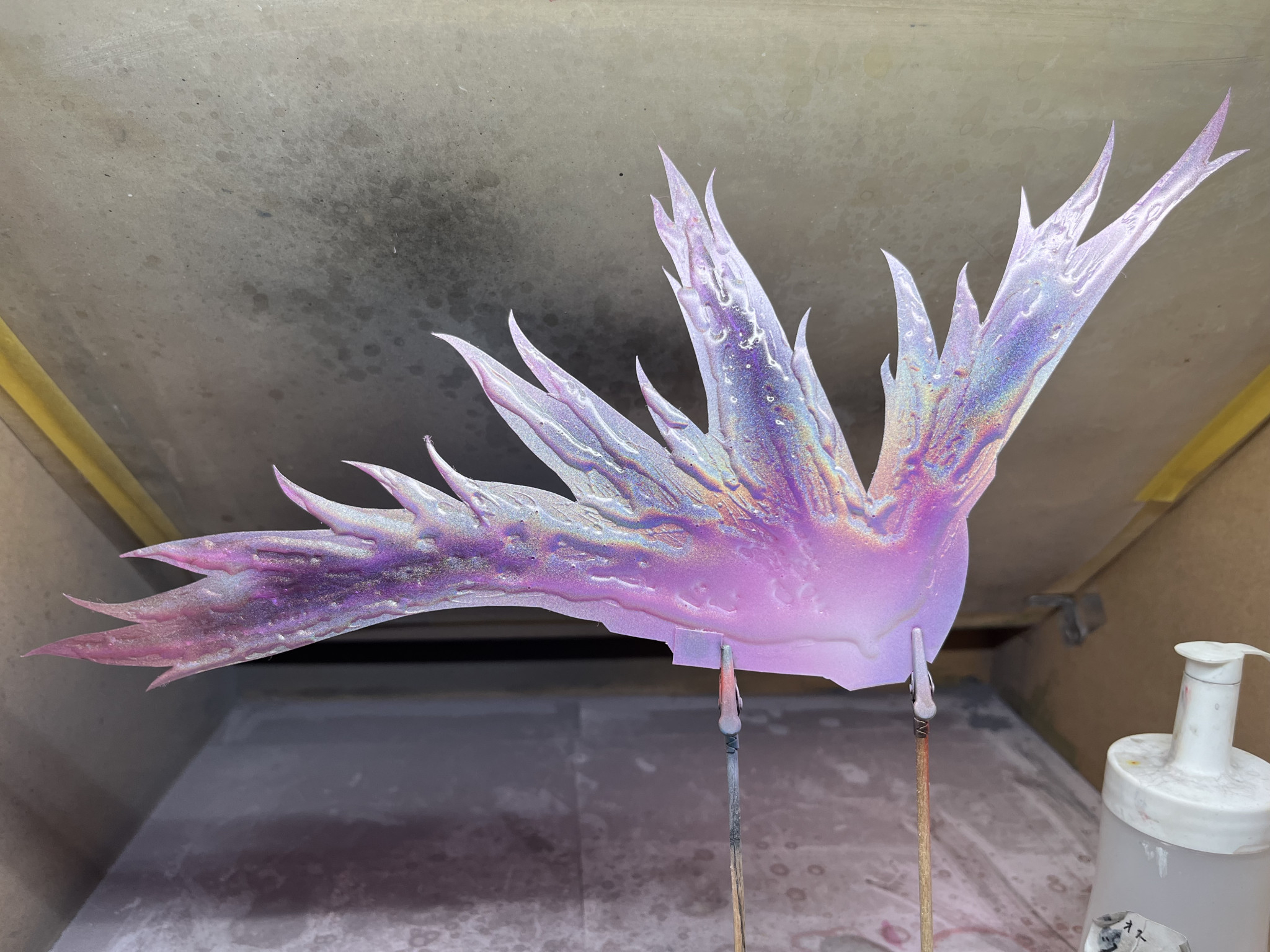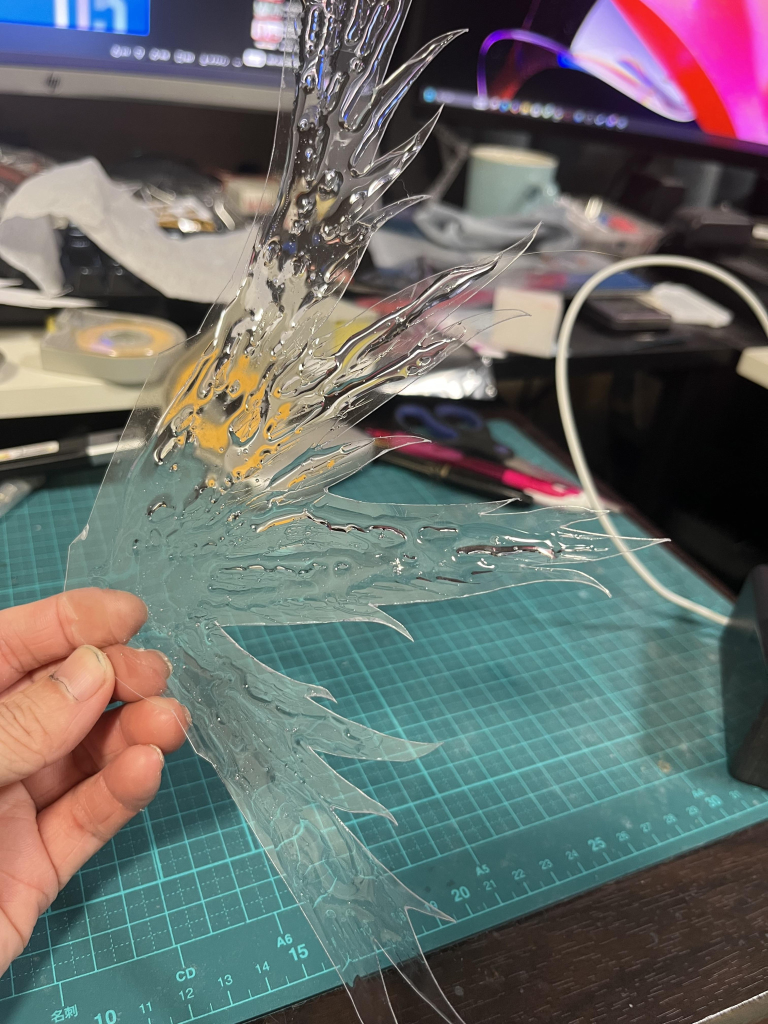 今回初めての試みとして新規モールドの筋彫りと光の翼を自作しています