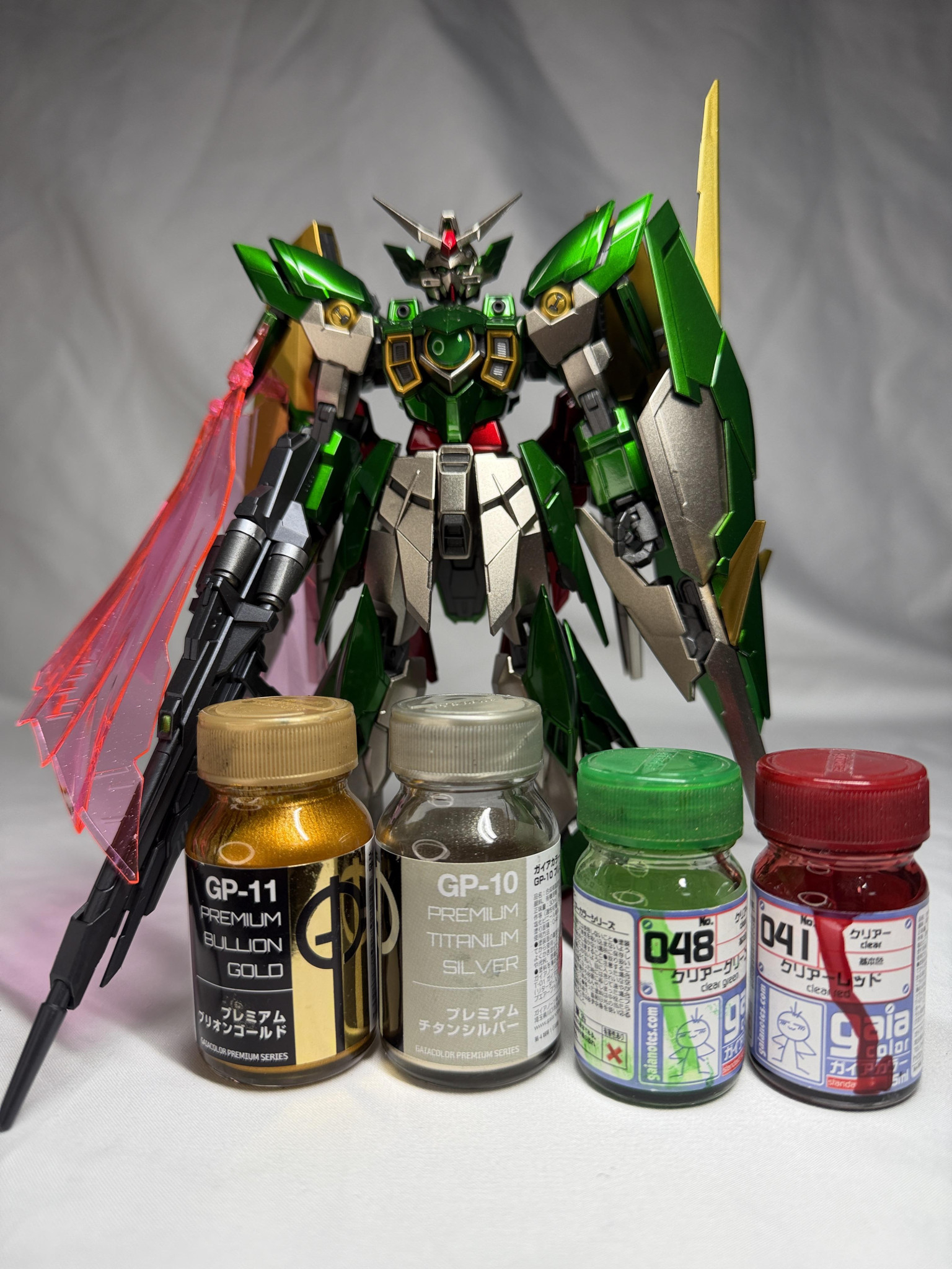 外装:(緑)黒サフ→ブリオンゴールド→クリアグリーン、(赤)黒サフ→ブリオンゴールド→クリアレッド、(ベージュ)黒サフ→チタンシルバー、(金)黒サフ→ブリオンゴールド