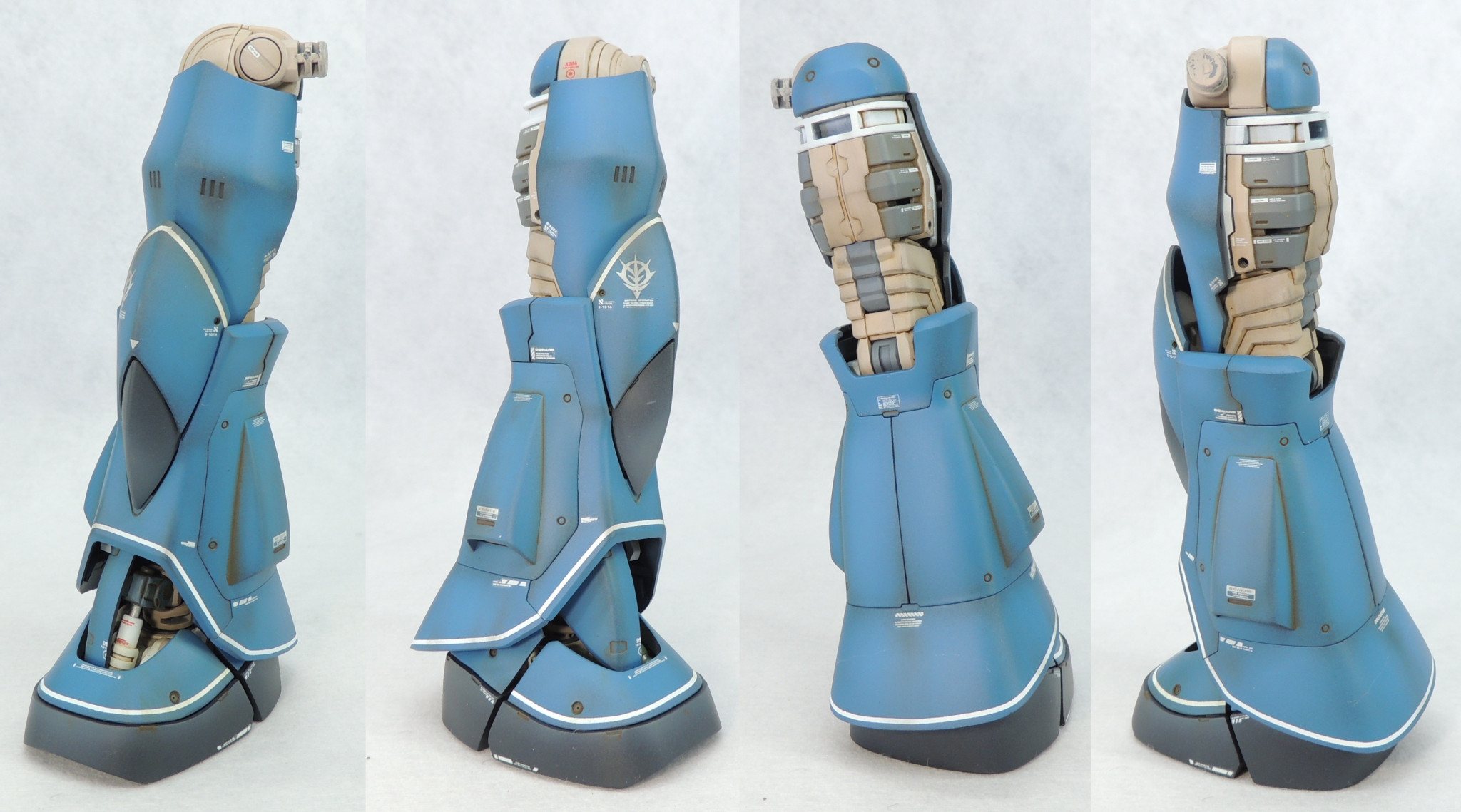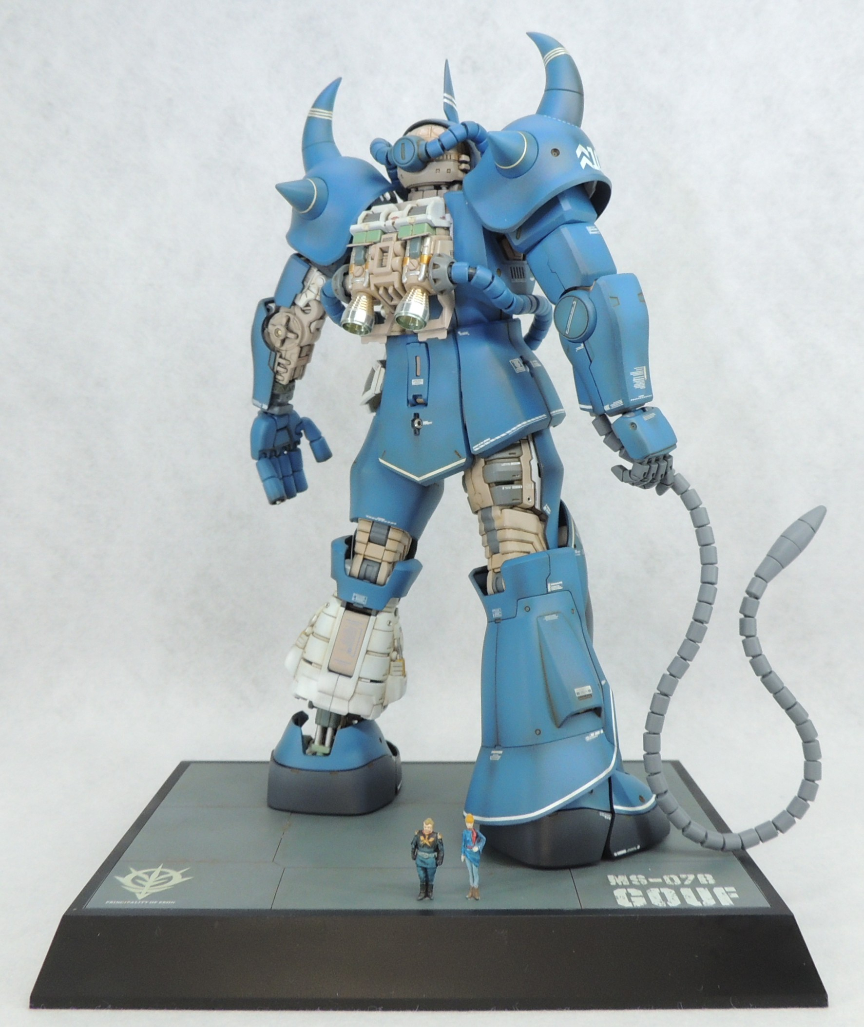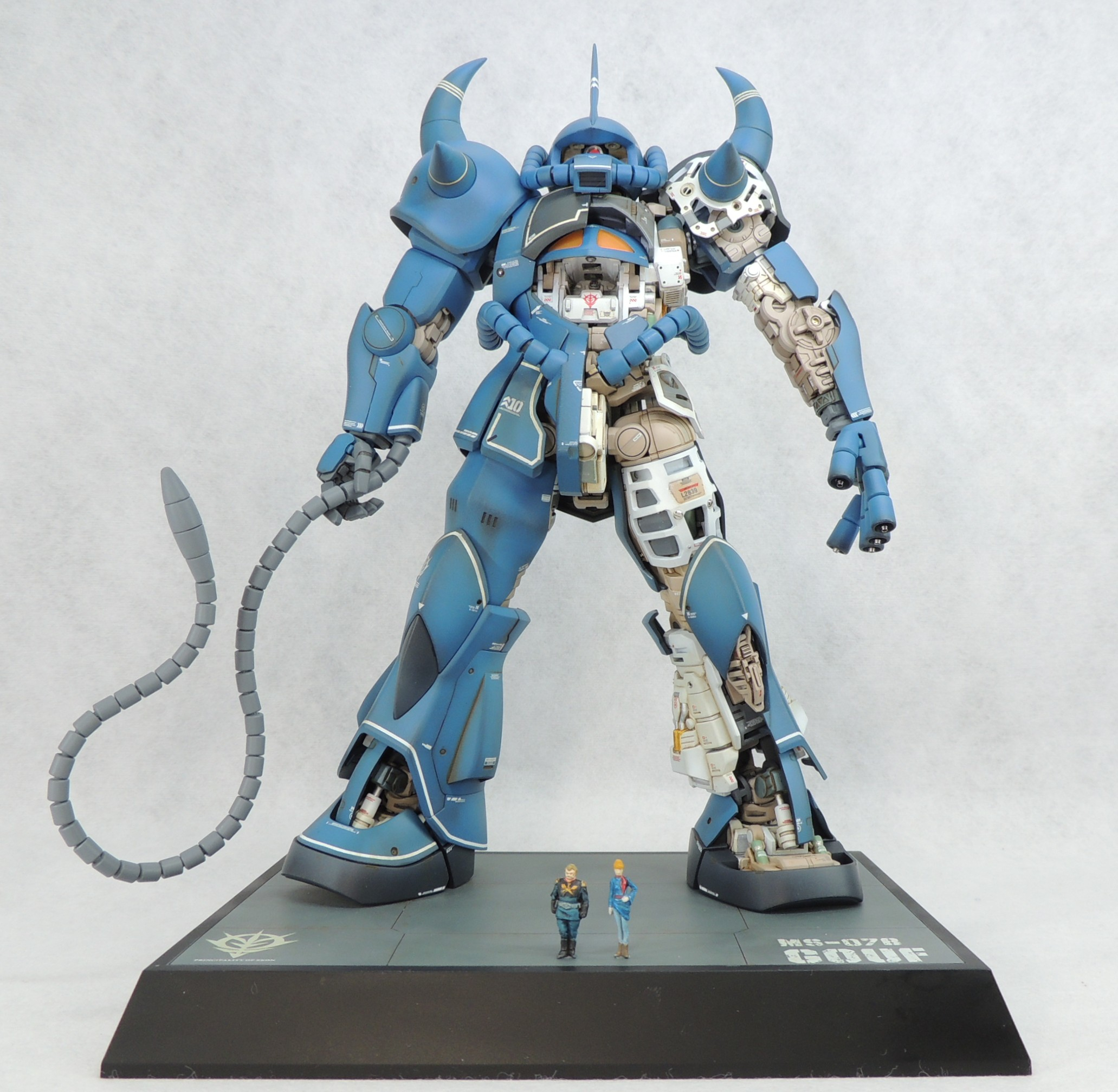 書籍「マスターグレード ガンプラがもっと上手く作れるようになる本」に刺激を受け、「モデルグラフィックス」誌のグフ特集や「HOW TO BUILD GUNDAM」に掲載のカットモデルの作例、大河原先生の設定画等を参考に製作しました。