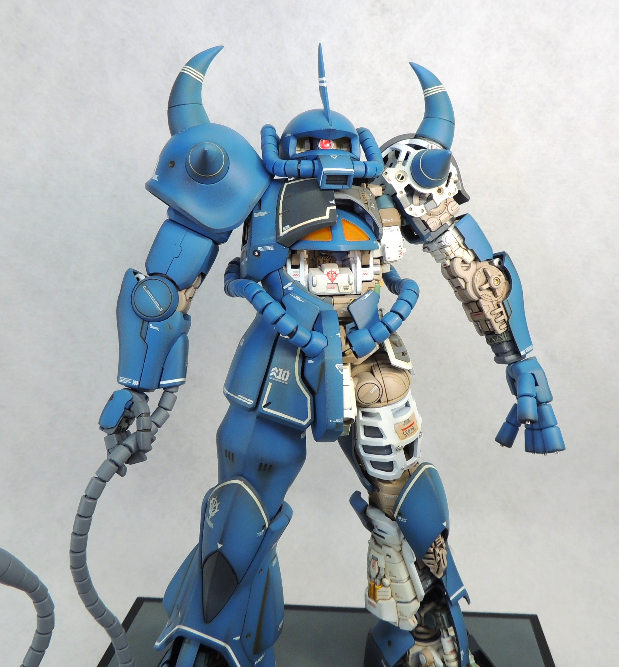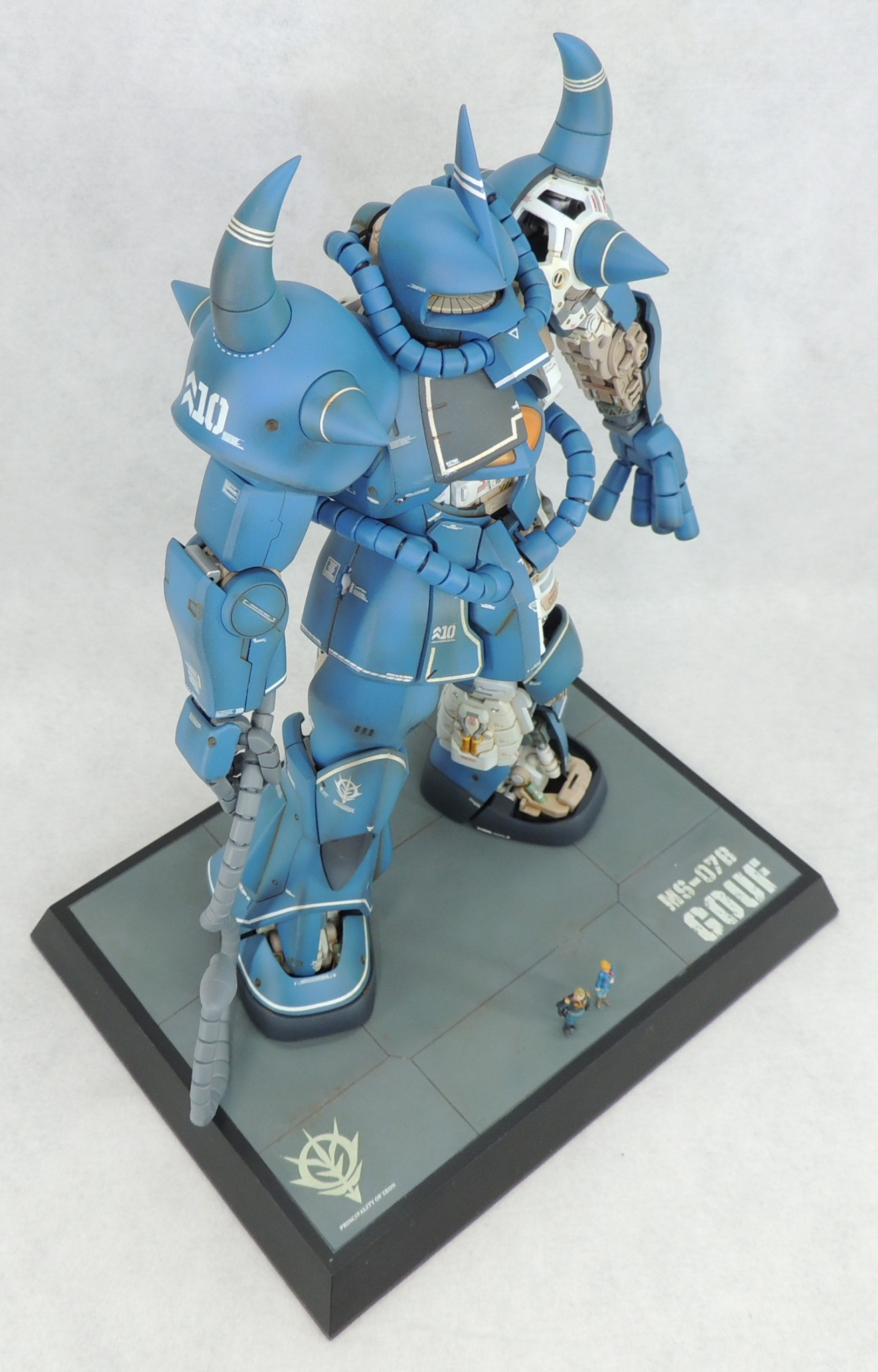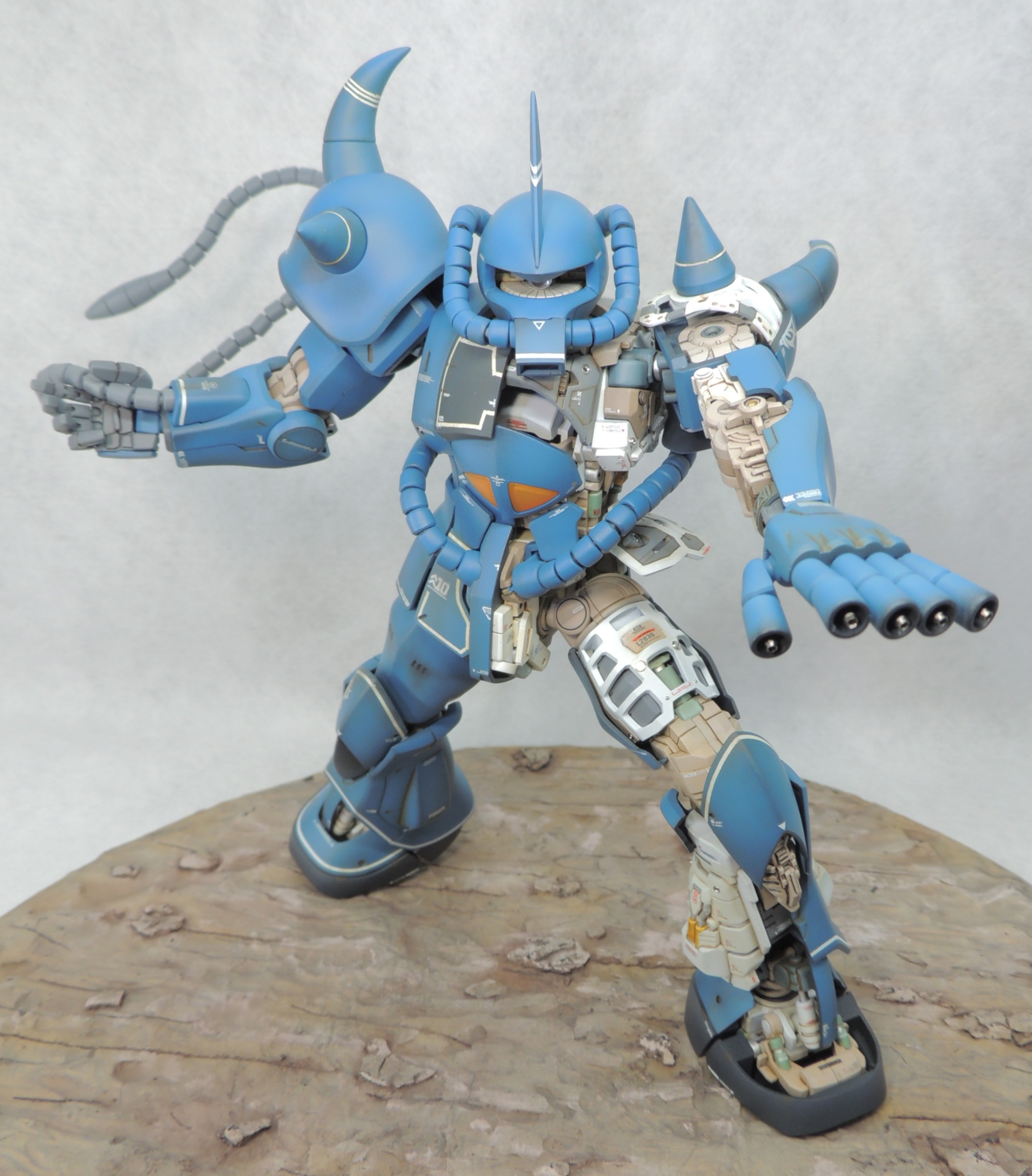書籍「マスターグレード ガンプラがもっと上手く作れるようになる本」に刺激を受け、「モデルグラフィックス」誌のグフ特集や「HOW TO BUILD GUNDAM」に掲載のカットモデルの作例、大河原先生の設定画等を参考に製作しました。