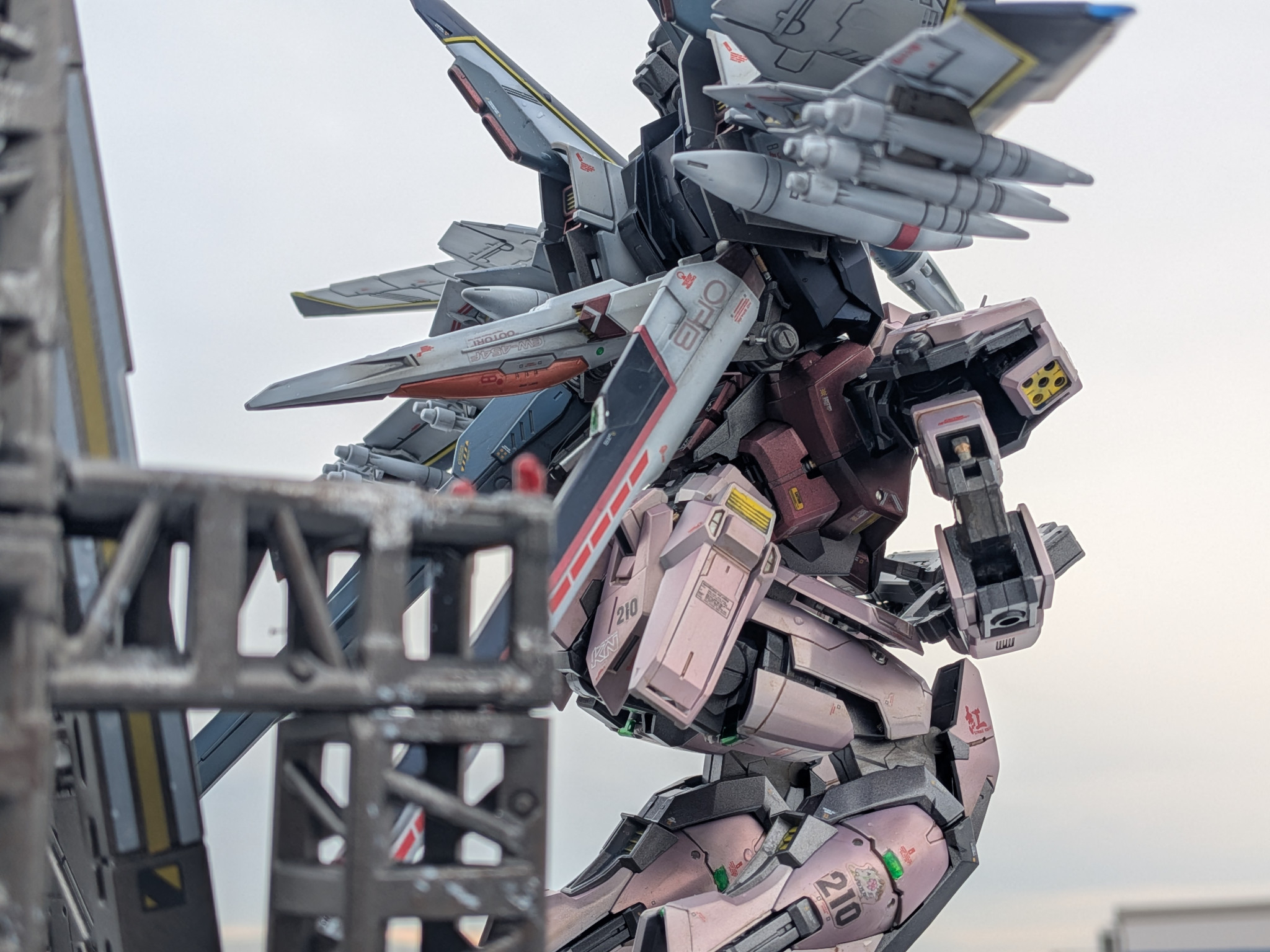 どうせポーズ固定になるなら、キットのままの可動範囲では出来ない動きを作ってしまいたくなって、思いついたのはこのポーズ。
