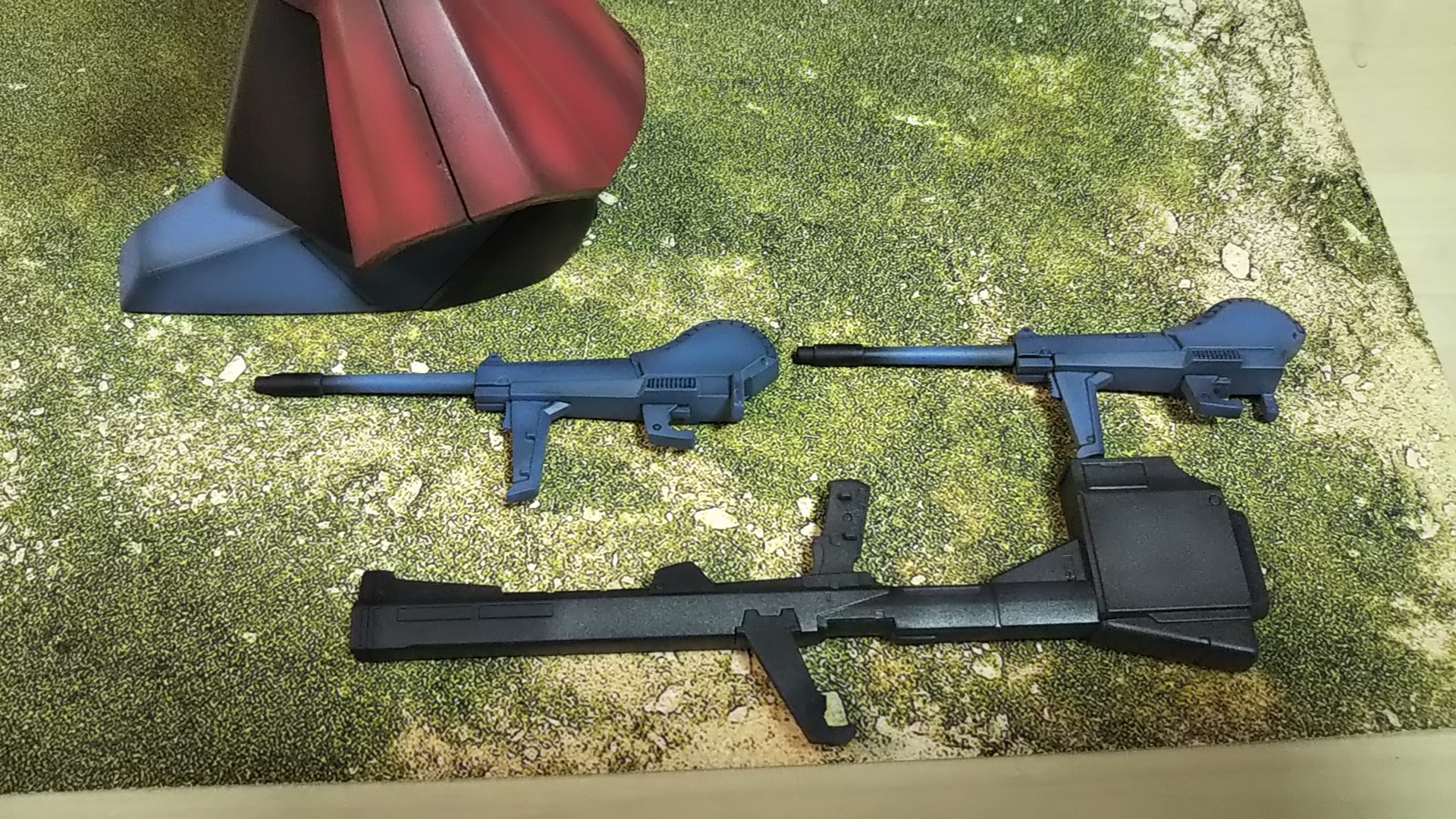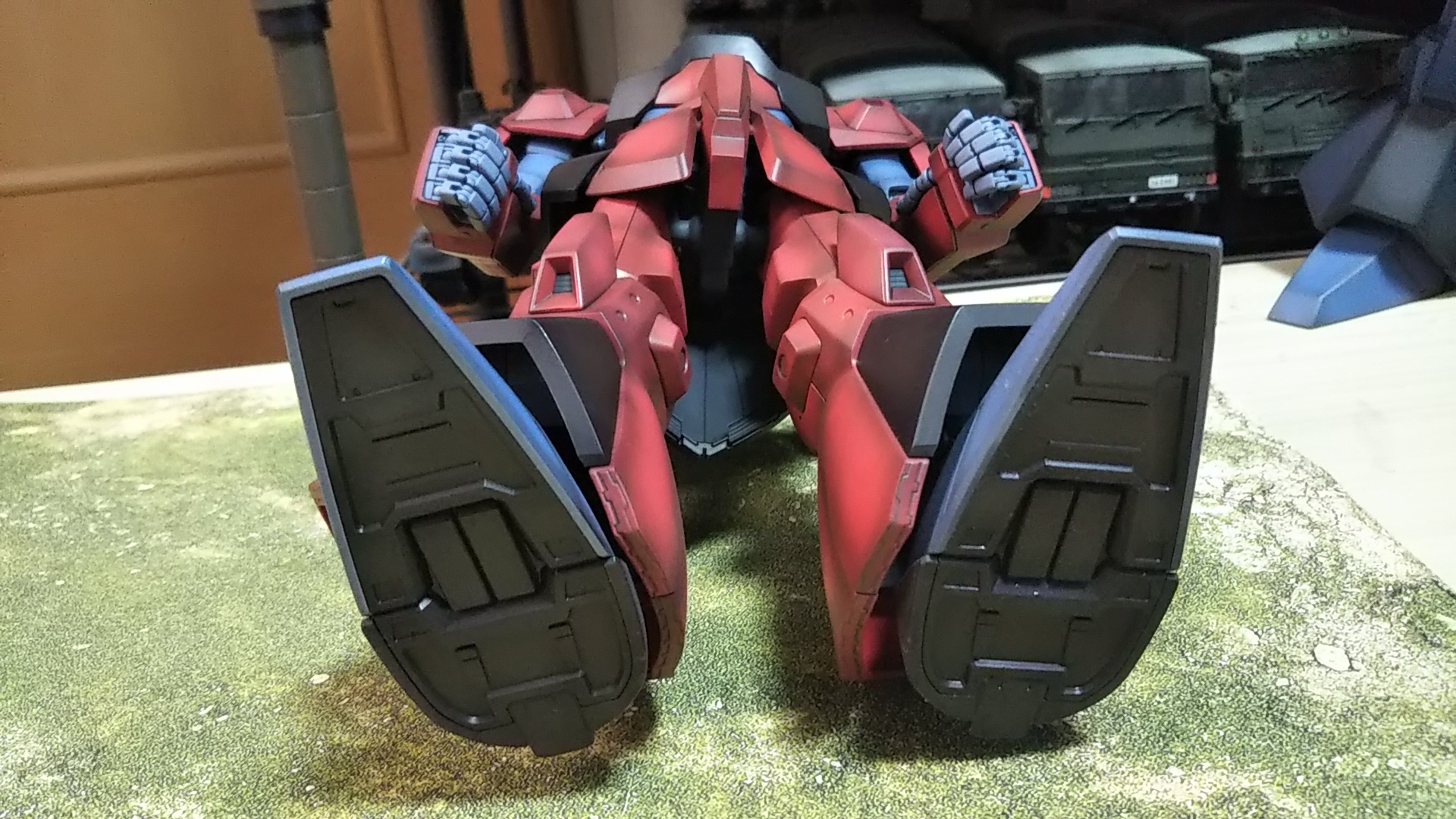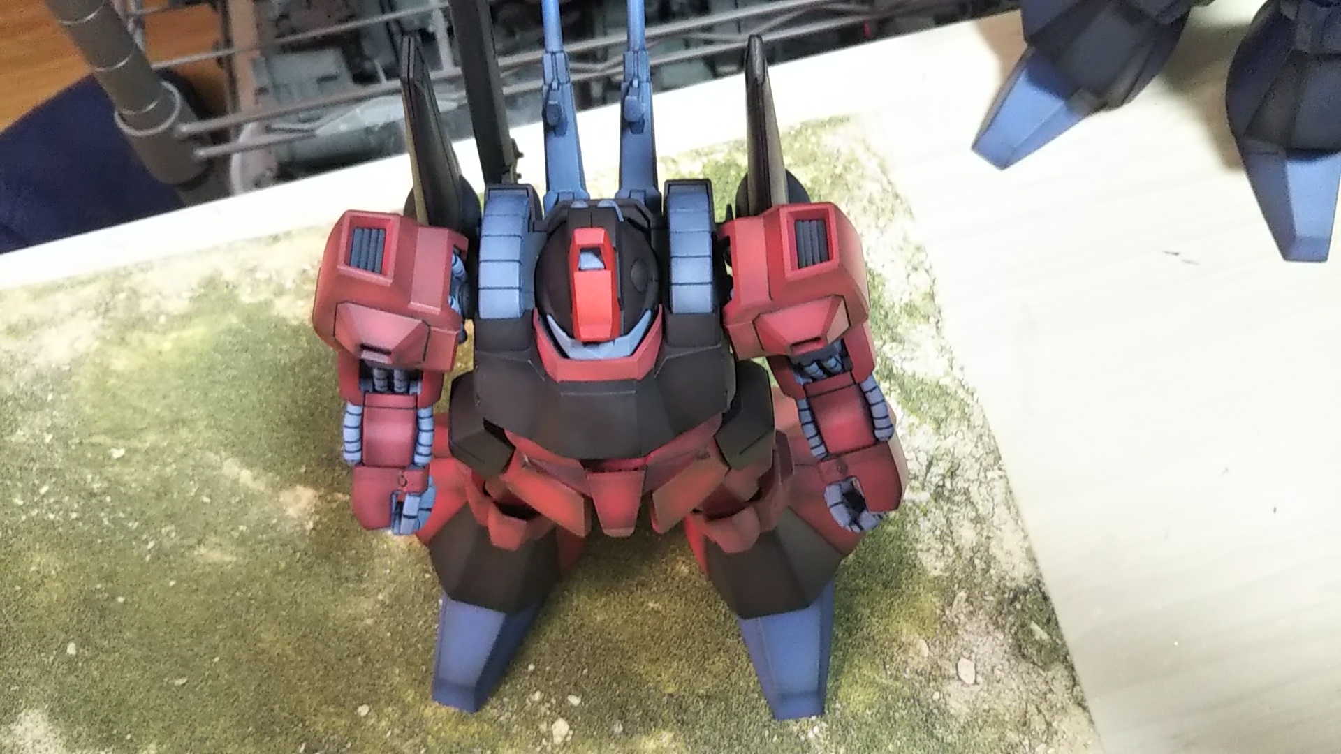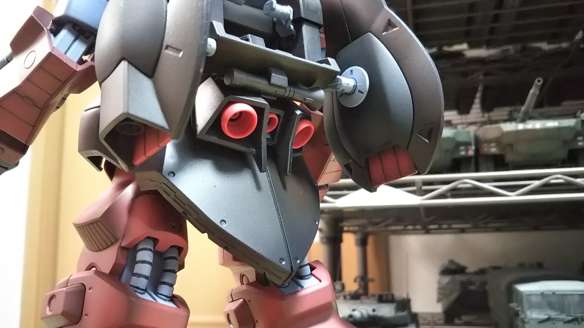 正面💦今回再塗装に当たってシャア専用機ということを意識してハイライトに若干ピンク要素を入れております、あと黒立ち上げを強めにしております💦