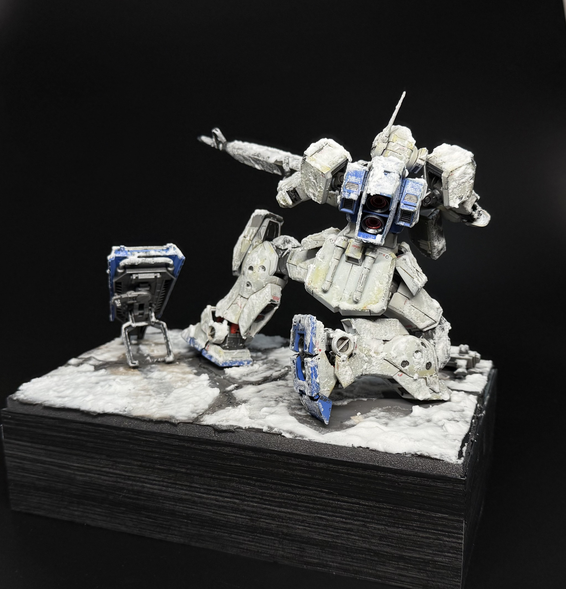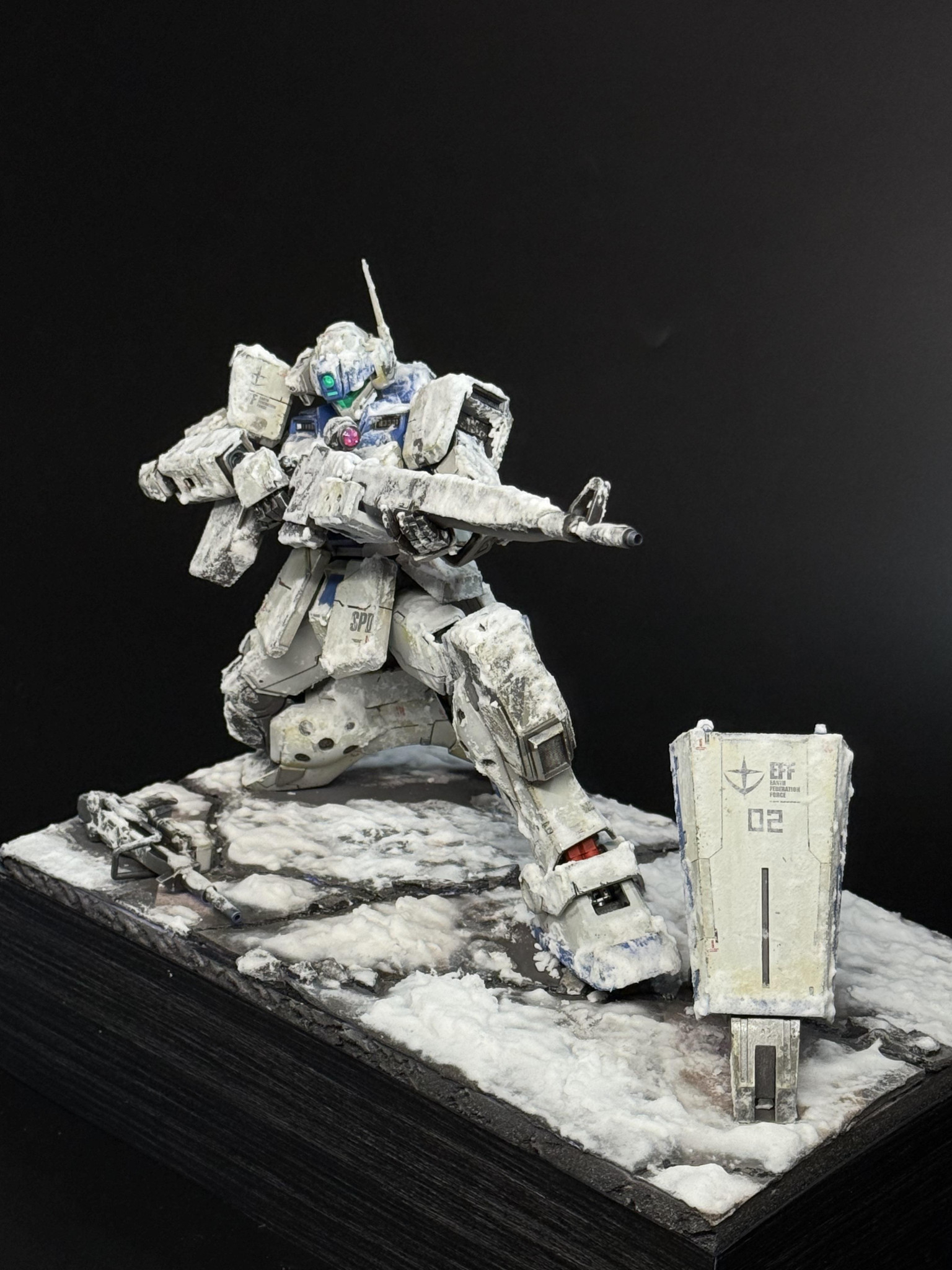 JACK MG 2025.12/30更新 その一瞬を待つ 96 55 いいねしたモデラー(55) 2 1 作品を共有 ご覧頂きありがとうございます。前回作ったMGジムスナイパーⅡ(WD隊仕様)をウェザリングし、ジオラマを作りました。 雪の降る市街地戦。相手が動き出すその一瞬を待つ。そんな脳内妄想を表現してみました。大学生の頃から思い描いていたジオラマを自分の手で再現できて感無量です。寄りスナイプモード背面ショットウェザリング前ウェザリング後台座はスチレンボードの上に石粉粘土でヒビ割れた道路を作り、先ず汚し。そこから重曹と水溶きボンドで作った雪塗料を、脳内妄想に従って塗布しました。雪塗布後。 ジムスナイパーⅡ MG 全塗装 ウェザリング ジオラマ 大学生の頃からの脳内妄想が遂に完成して感無量です コメント コメントをして応援しよう コメントにはログインが必要です つぐお 1時間前 あのジムスナがこうなるとは・・・緊迫感がヒシヒシと伝わってきます。年末も年が明けてからもお忙しいと思いますが今後も素晴らしい作品をご紹介くださいね! JACK 19分前 ありがとうございます😭 メチャクチャ嬉しいです‼️ジオラマ初挑戦でしたので、苦労しましたが、その分満足度も高いです😂 つぐお様、本年もありがとうございました。 ゆるふわモデラーではありますが、新年も宜しくお願い申し上げます🙇 JACK 医学部在学中にガノタ友人の影響を受け、ガンプラにハマりました。普段は救急医をしつつ、暇を探してちょこちょこガンプラ制作しております。 ガンプラ指導医が目標です‼️ ガンプラ制作を心から楽しんでます。 宜しくお願いします🔰 好きなシリーズ:ガンダムUC、08小隊 9 MG ジムスナイパーⅡ(WD隊仕様) 自分の大好きな連邦機体の1つ。ジムスナイパーⅡ(WD)を全力… 11 HGUC バーザム(A.O.Z RE-BOOT ver.) ご覧頂きありがとうございます🙇 今回はHGUCバーザム(A.… 12 HGUC ケンプファー 見て頂きありがとうございます。HGUC ケンプファーを一部加… 8 HG クスィーガンダム Ξガンダム製作しました‼️ 今回は ①放熱板の工作、②レッド… JACKさんのページ この作品をお薦め作品に設定する Please login to update your profile! Please login to update your profile! Please login to update your profile! Please login to update your profile!