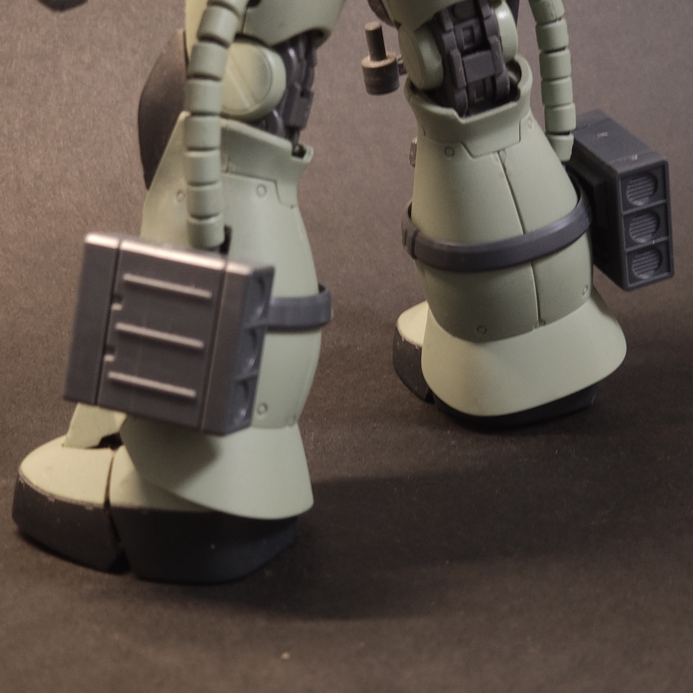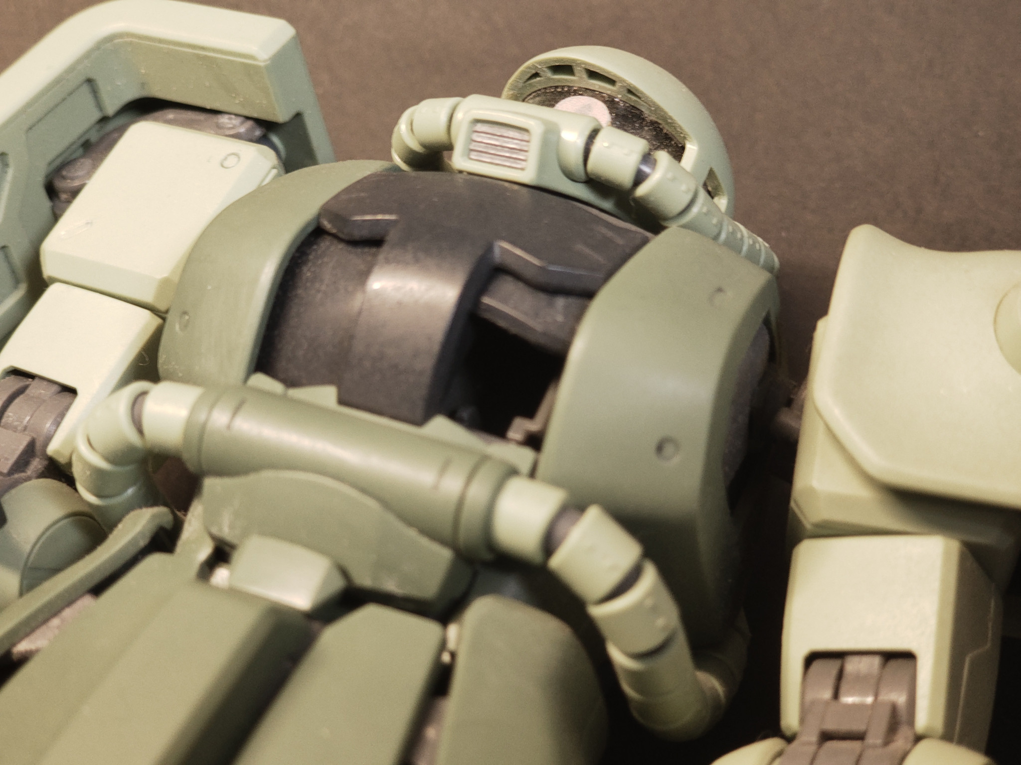 ミサイルポッドは確か後から作って、激落ちくん処理してなくて、ゲート処理も適当でした。外そうと思ったんですが(確か股関節側から通す)、回せど回せど股関節外れなくて折れそうでギブしました。