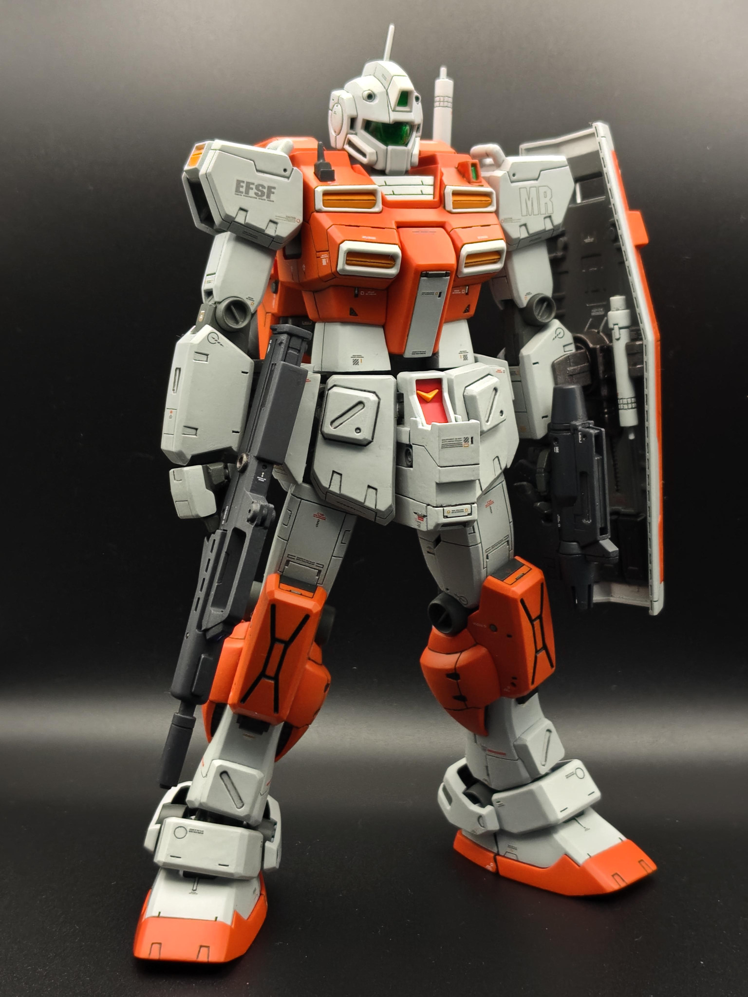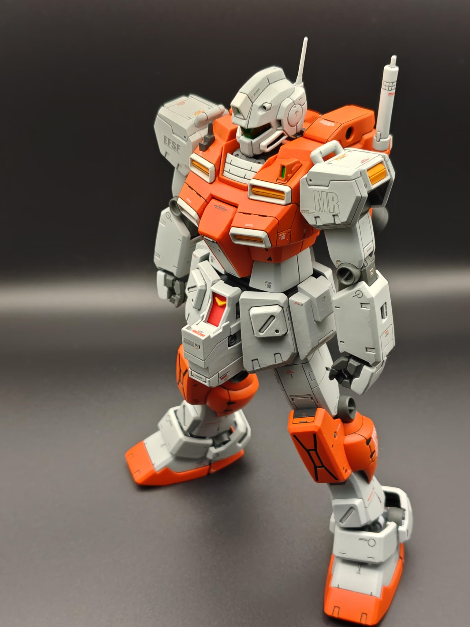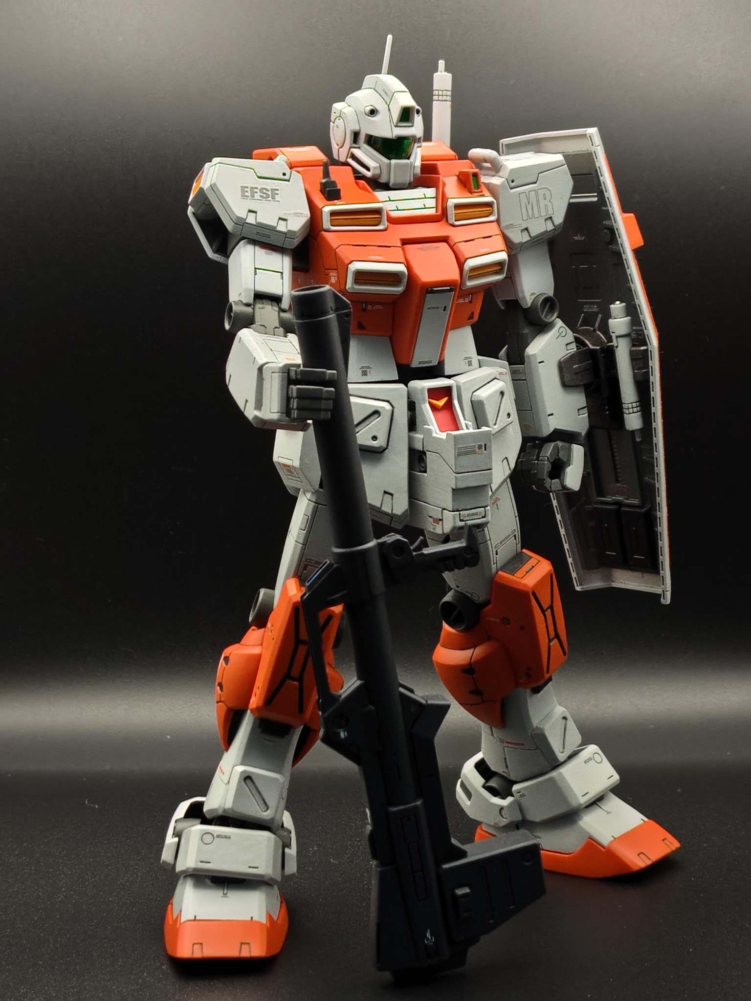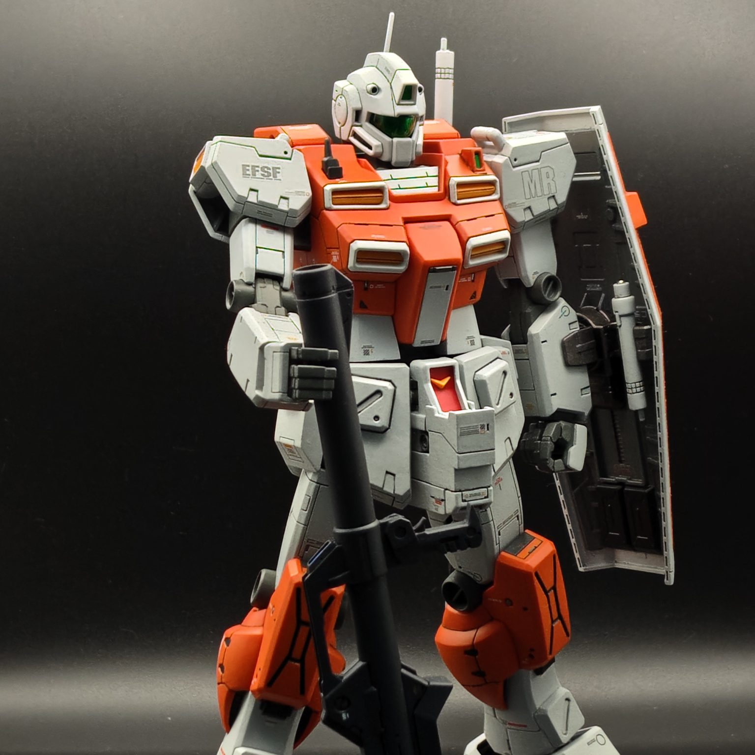新年おめでとうございます😆💕✨渋い色合いのオレンジ&グレーの機体がめちゃくちゃカッコいいです😆胸部と腰周りに施されたディテールアップにより力強さが増してめっちゃ強そうです。パワード・ジムは、やはりこうでないと😘本年もお互いにガンプラを楽しみましょう😄