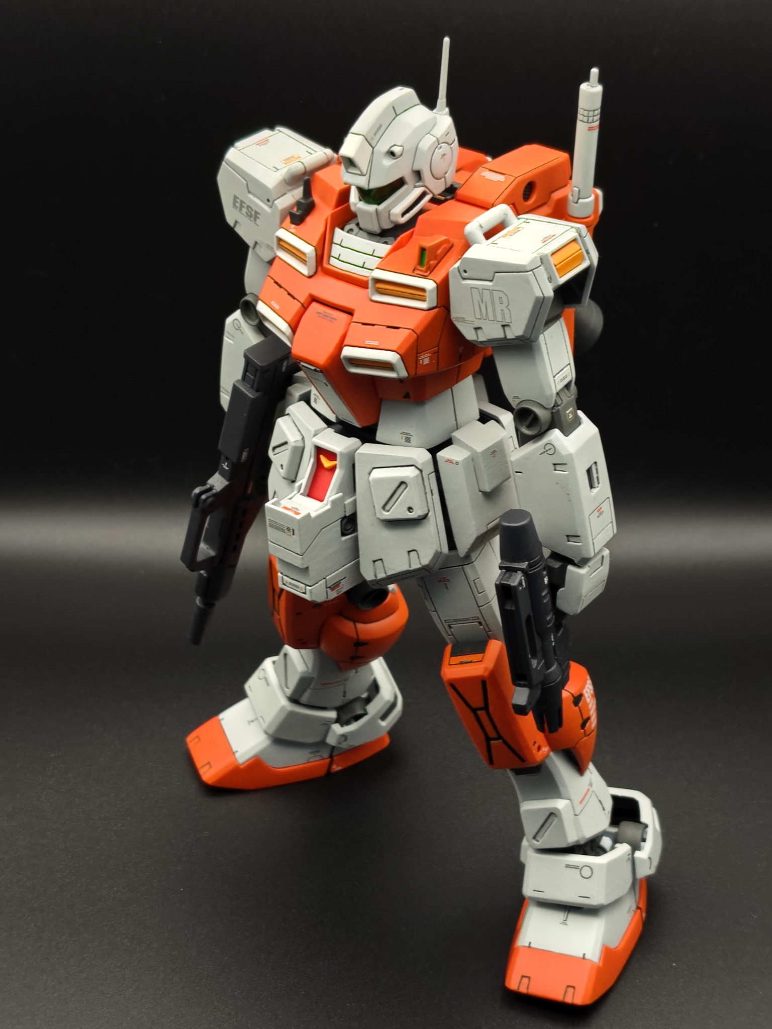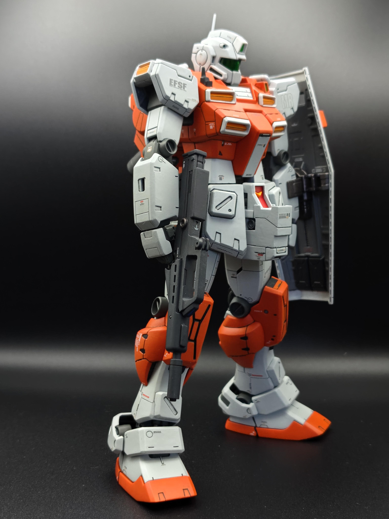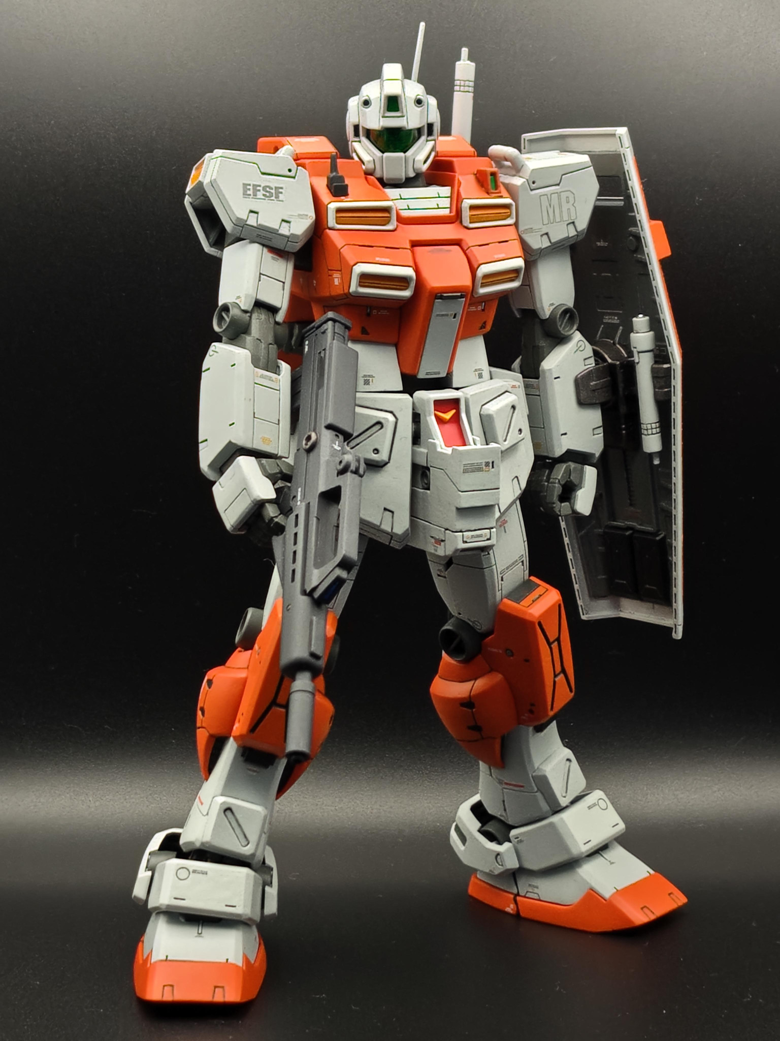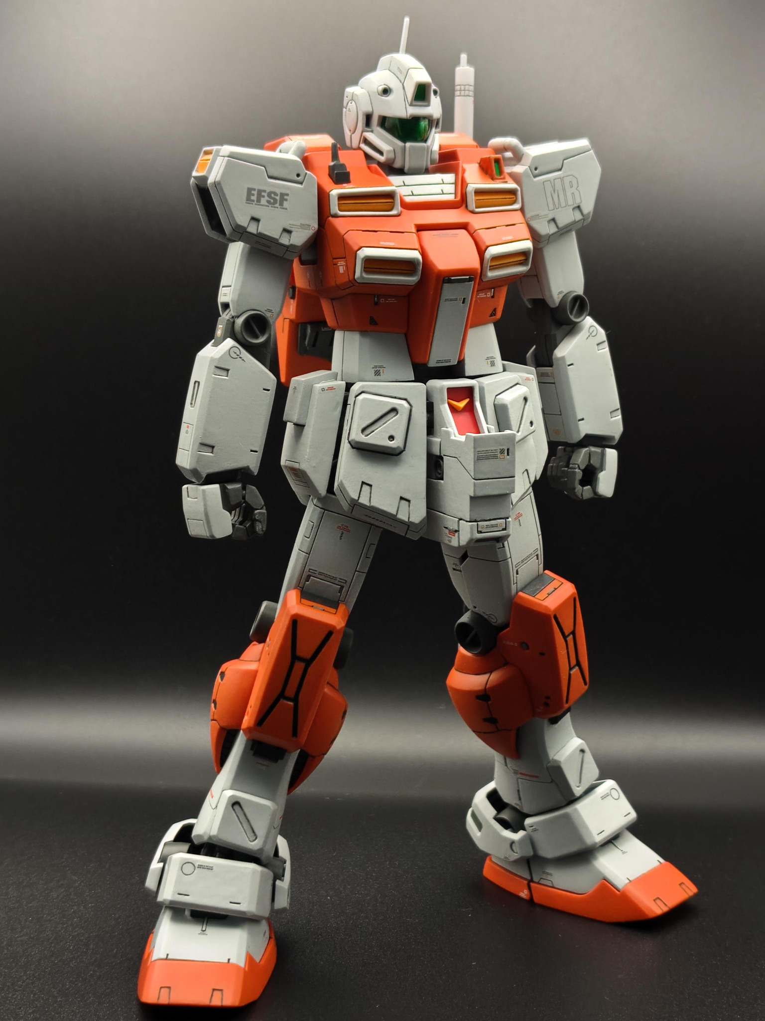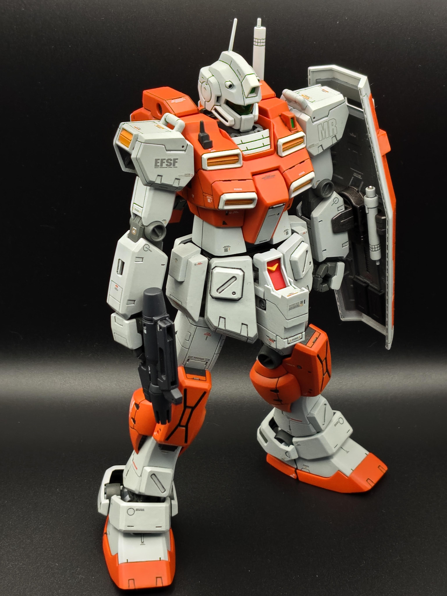 新年おめでとうございます😆💕✨渋い色合いのオレンジ&グレーの機体がめちゃくちゃカッコいいです😆胸部と腰周りに施されたディテールアップにより力強さが増してめっちゃ強そうです。パワード・ジムは、やはりこうでないと😘本年もお互いにガンプラを楽しみましょう😄