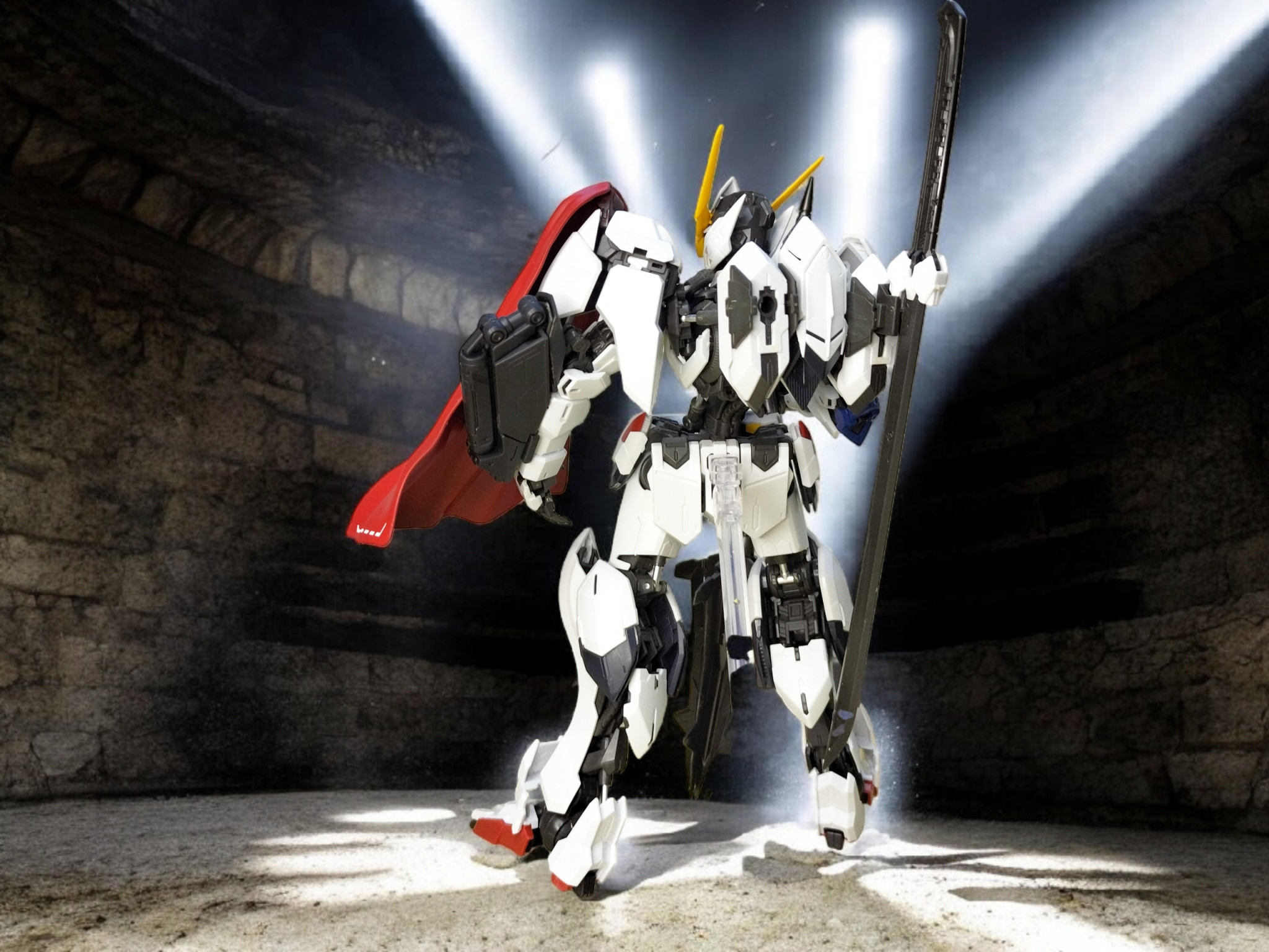 メタルビルド・バルバトスの赤マントが好みに刺さり過ぎて、MGでオマージュしてみました。マントは30MMのマルチクロスを塗っただけ、本体もデカール貼っただけで、墨入れ・トップコートもしていませんが、MGのパキッとした造形でそれでも格好良い!(gundam-kao8)